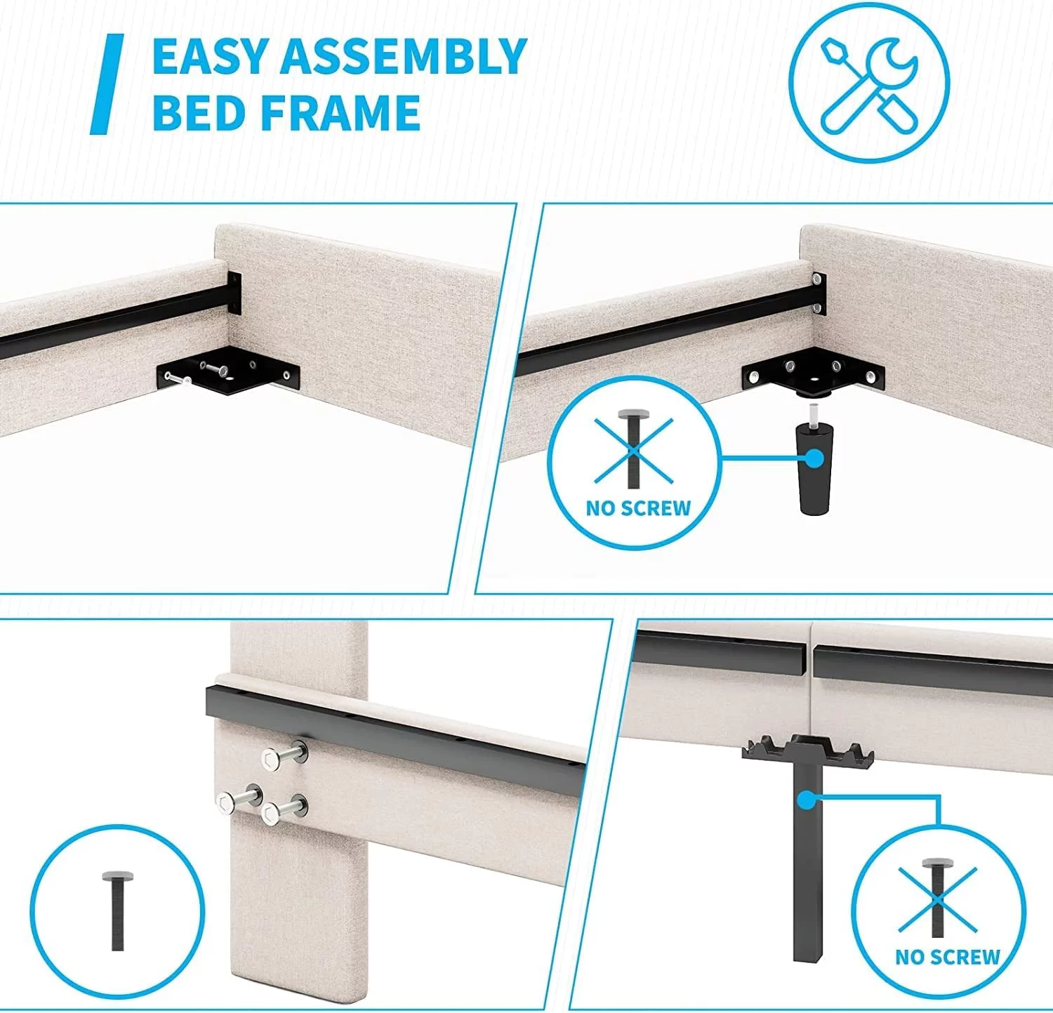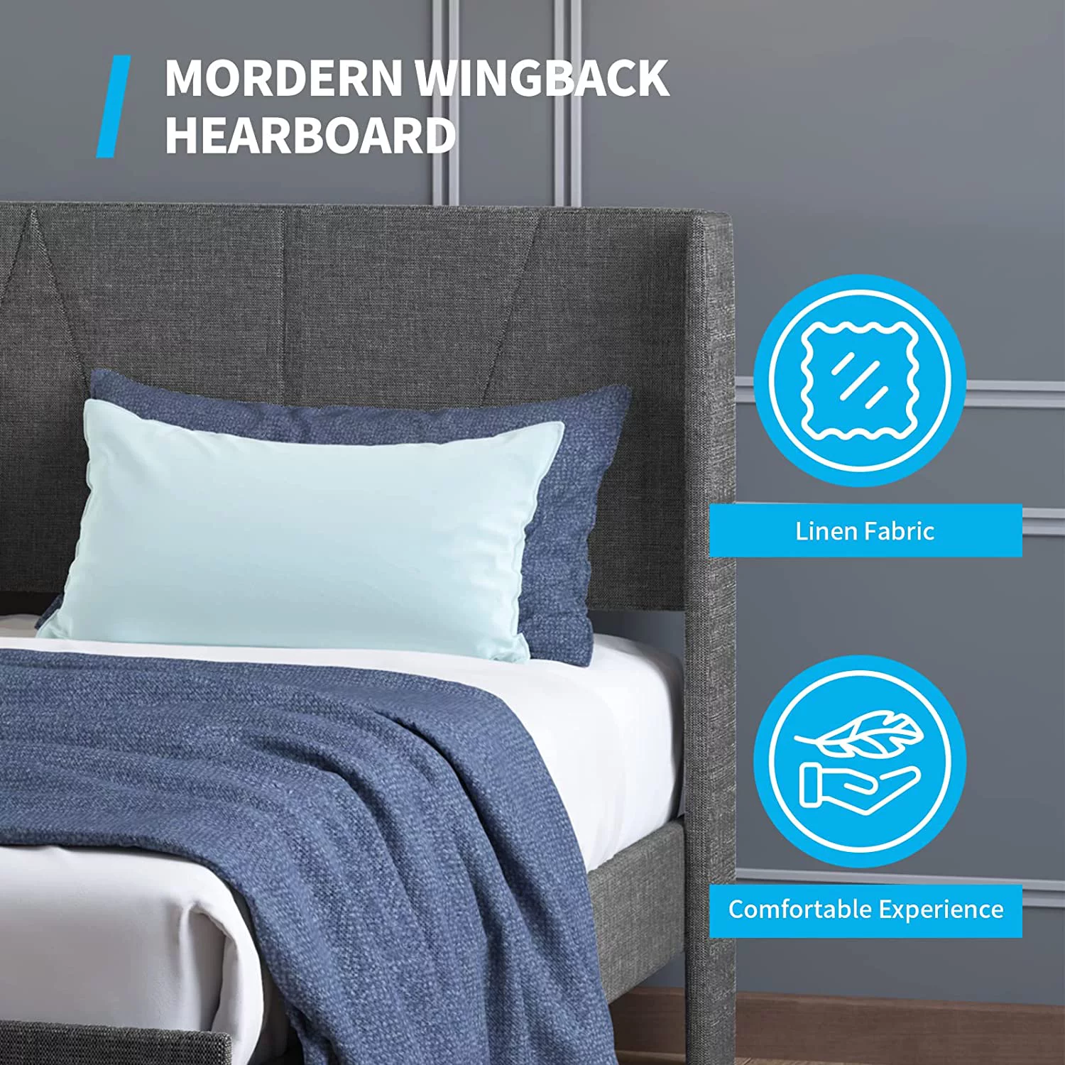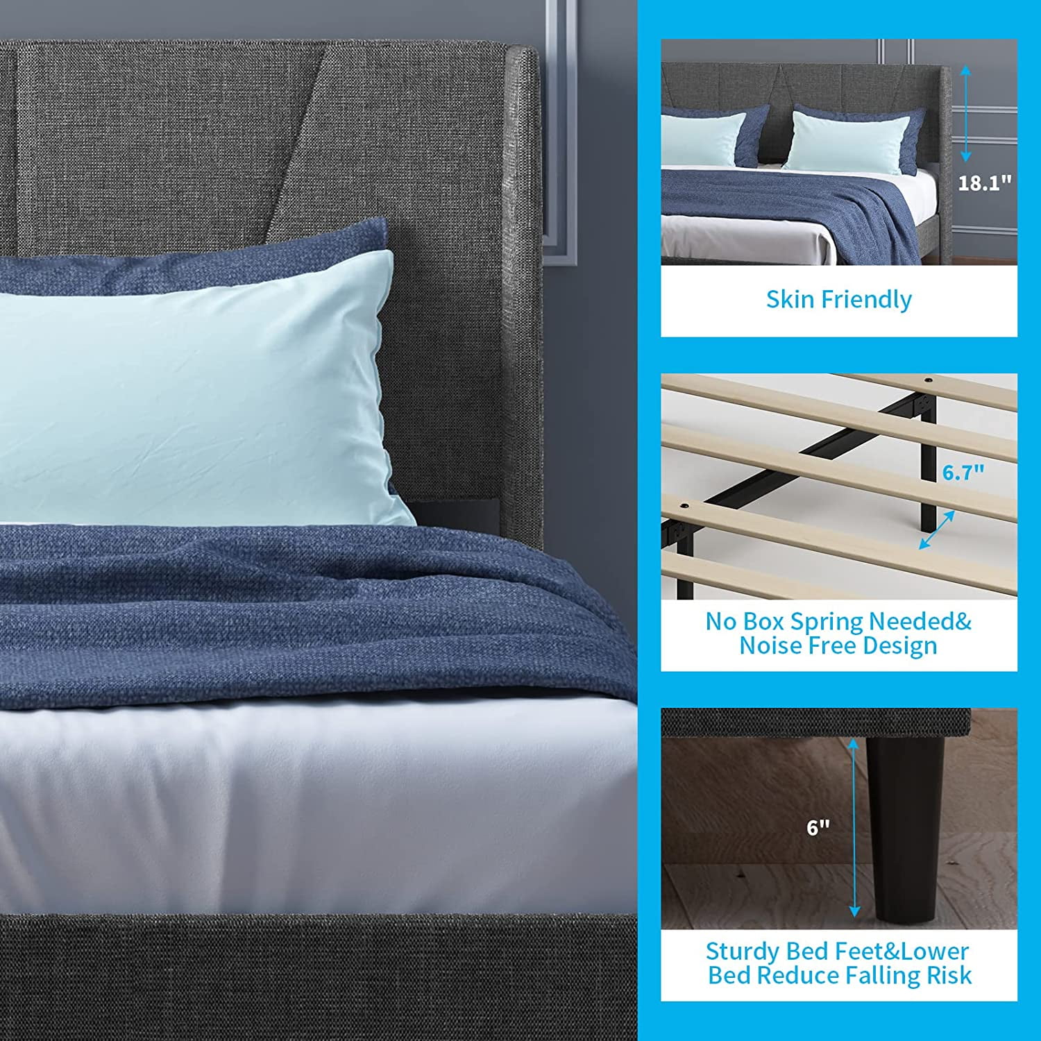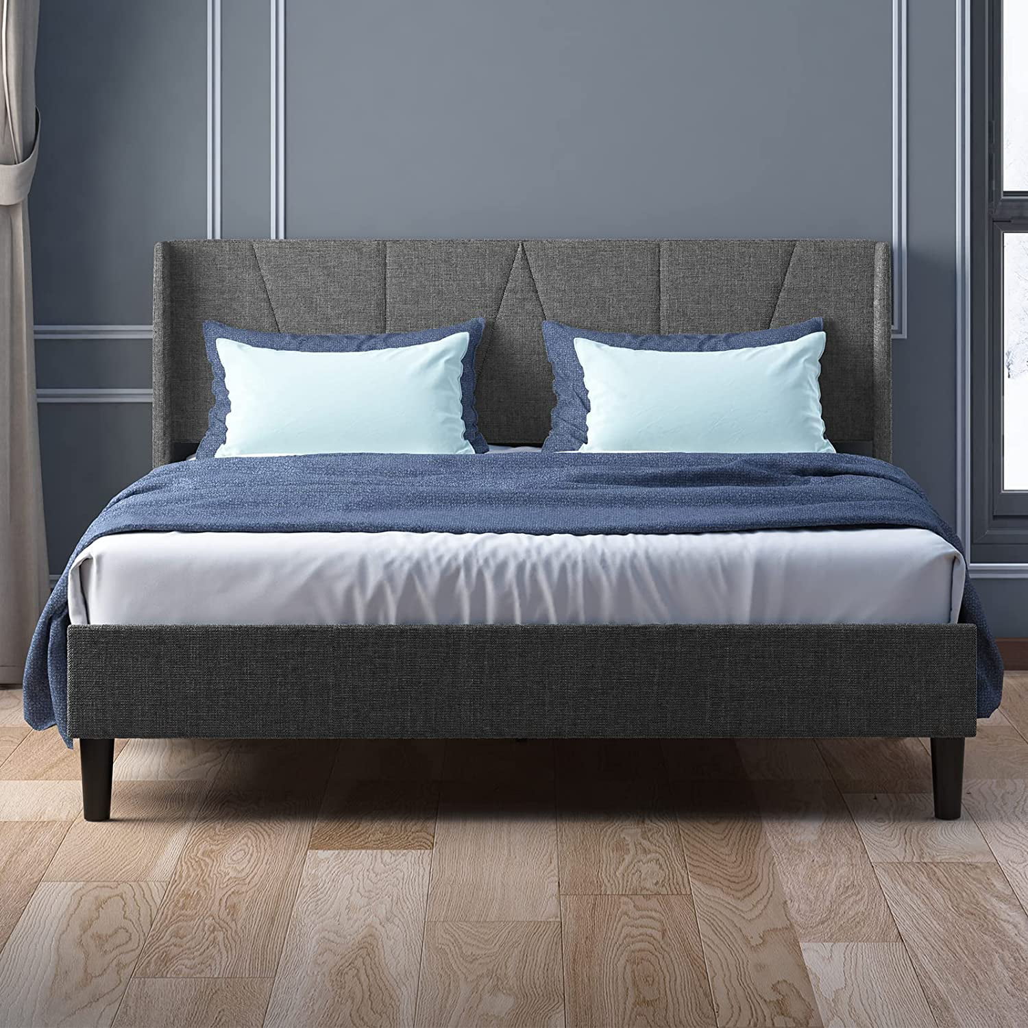 sell well Mjkone Full Upholstered Wingback Platform Bed Frame with Modern Headboard/Mattress Foundation with Wood Slat Support No Box Spring Needed/Easy Assembly Dark Grey