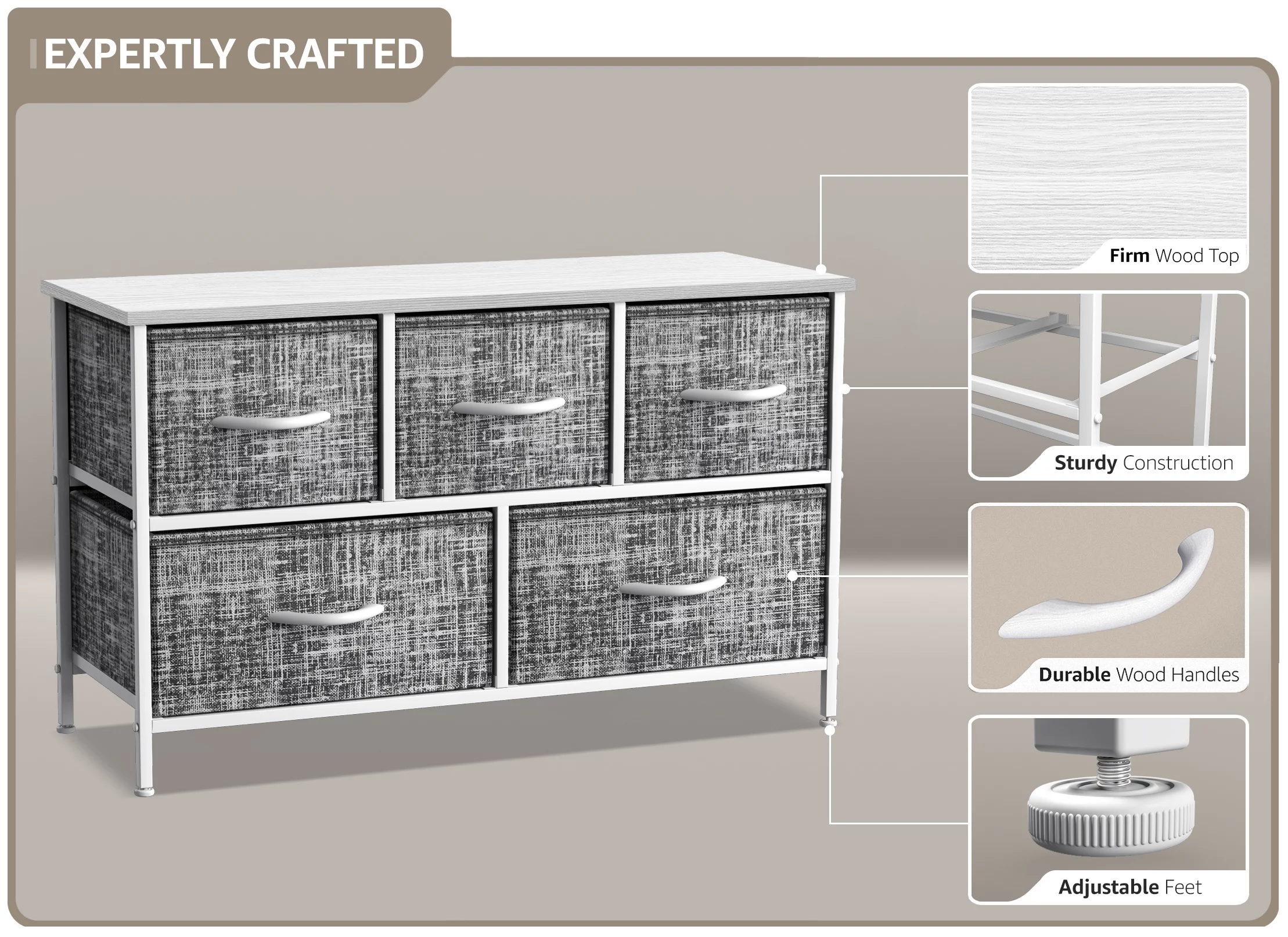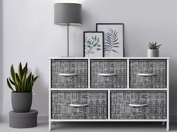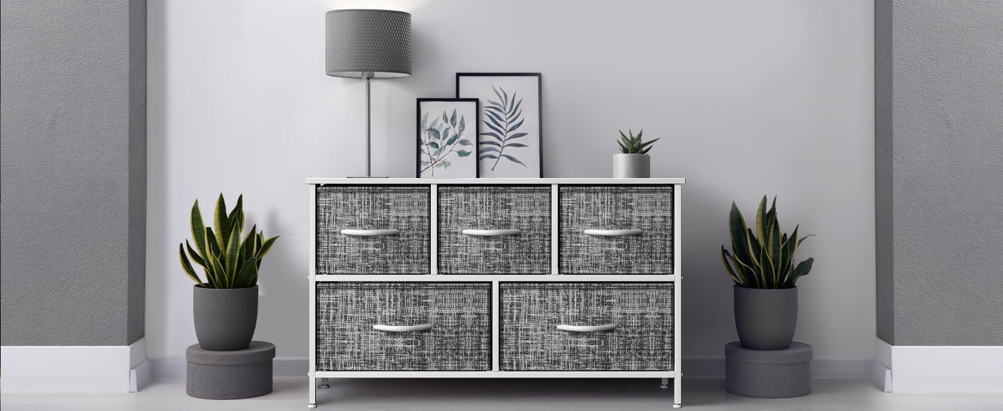 Sorbus Dresser with 5 Drawers - Furniture Storage Chest Tower Unit for Bedroom, Hallway, Closet, Office Organization - Steel Frame, Wood Top, Easy Pull Fabric Bins (Gray/White)