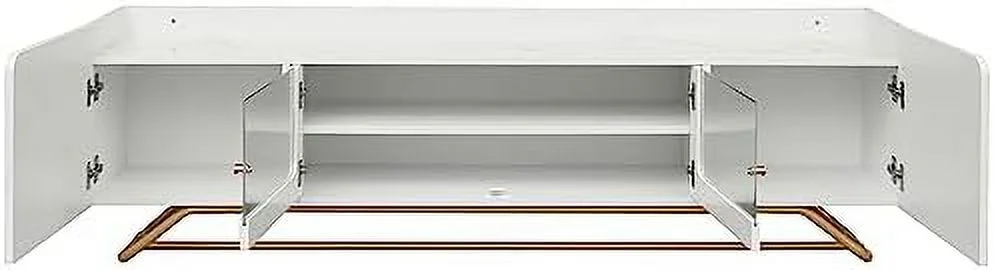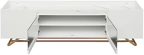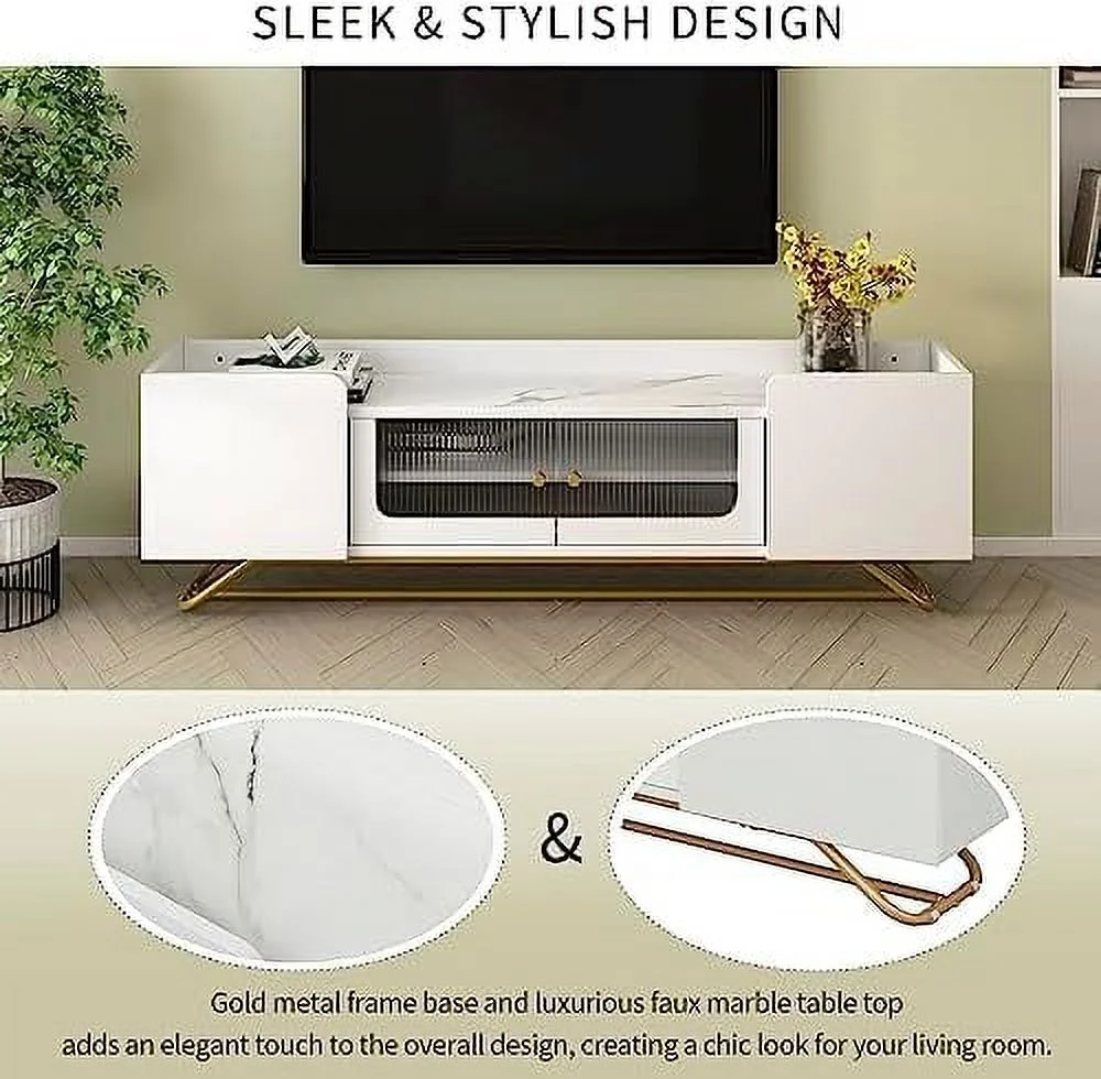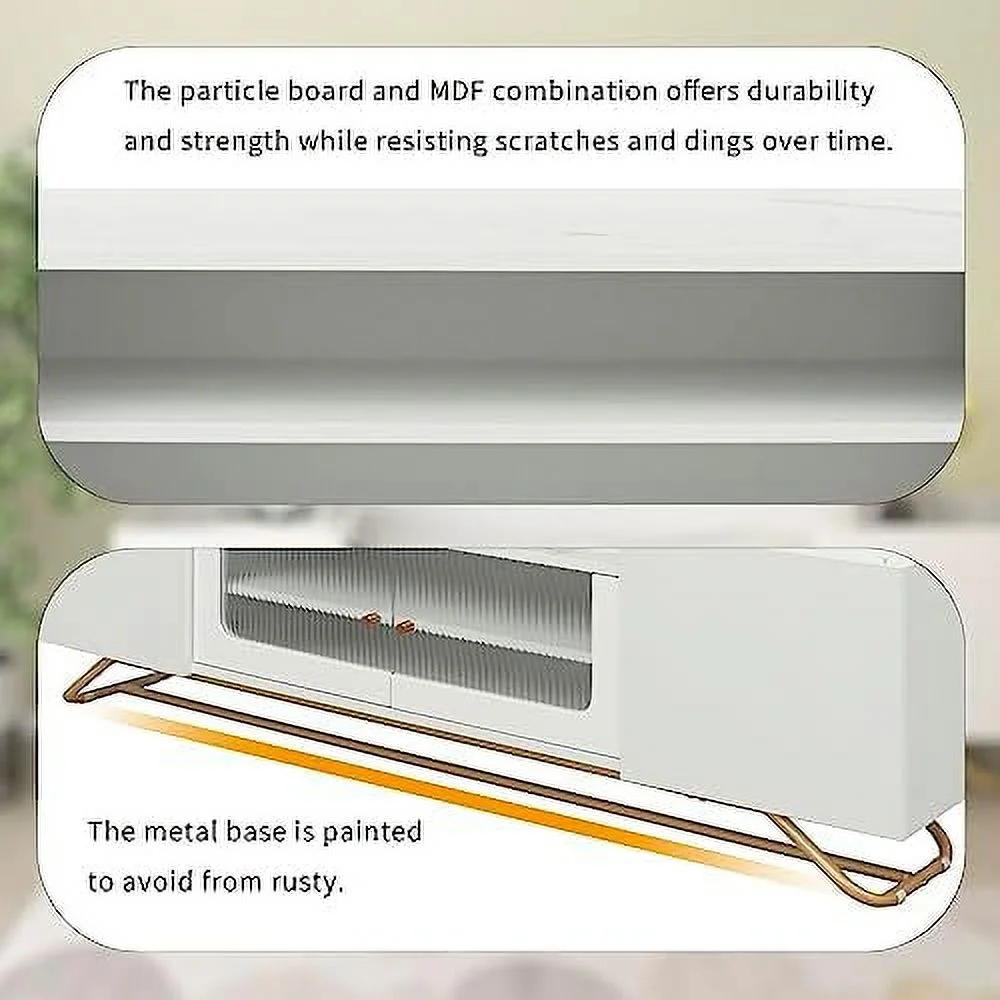 RUNFAYBIU Modern TV Stand for 75 inch TV Low Profile Console Table with Drawer Entertainment Center with 5 Champagne Legs for Living Room Bedroom(White)