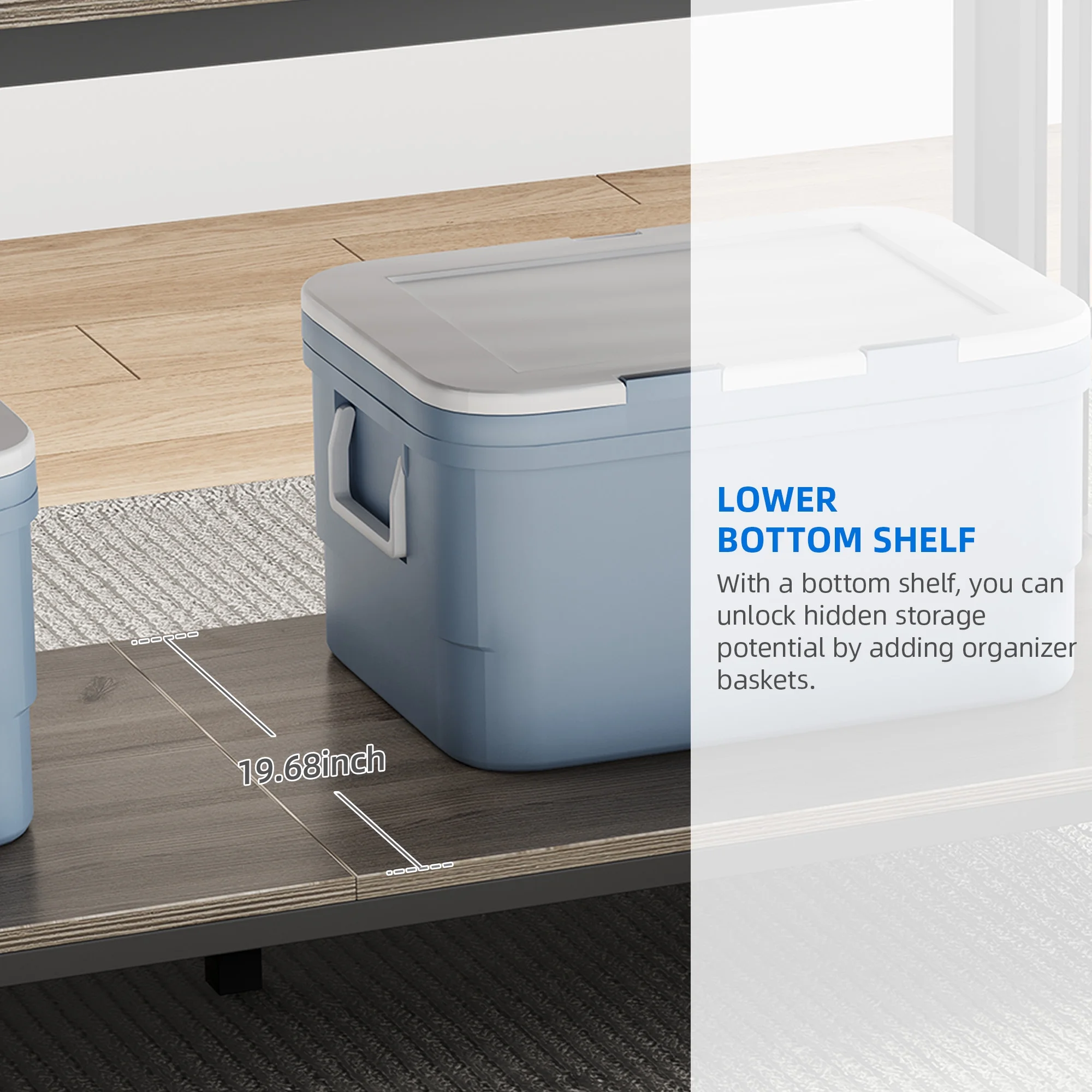 Mid Century Modern Tv Stand 4 Shelves Open Storage Metal Cords Entertainment Centre 56 inch Low Tv Unit, White Blue