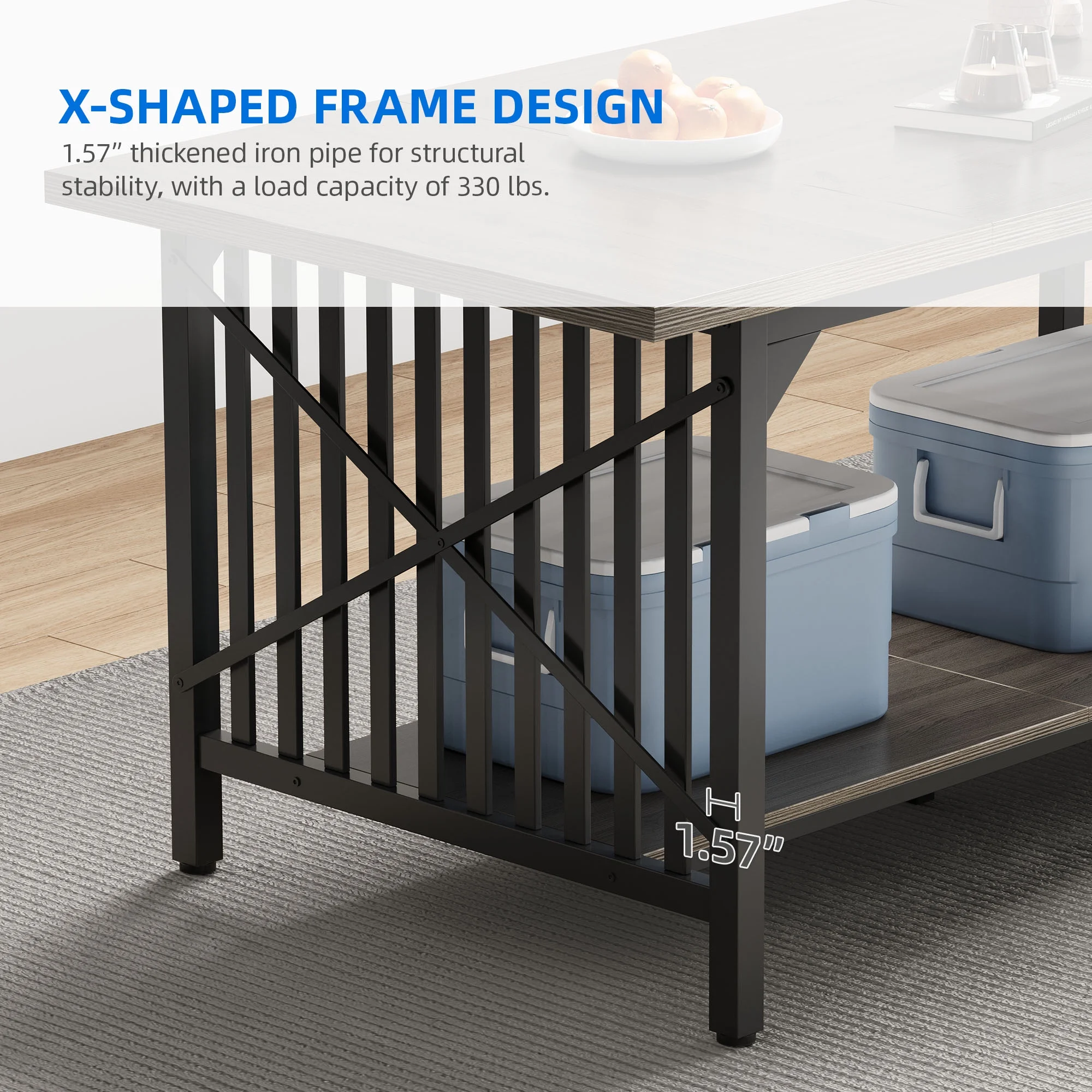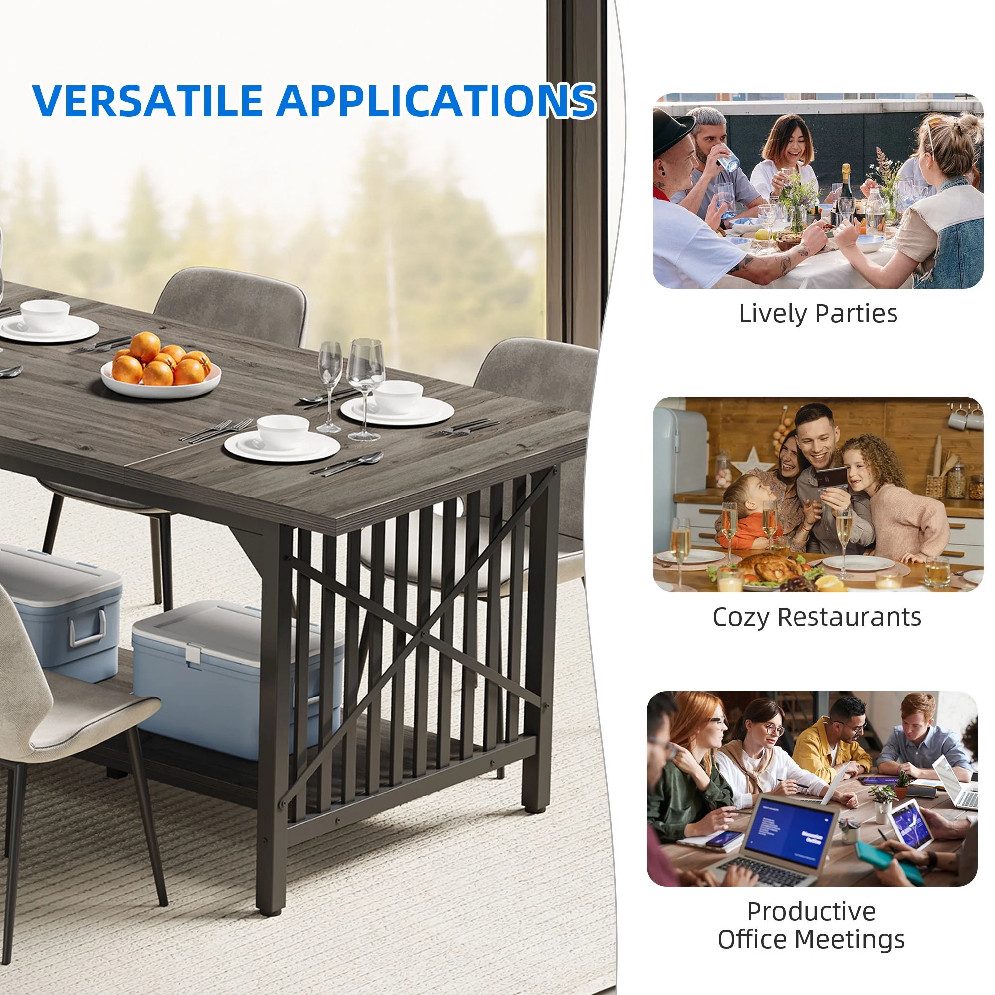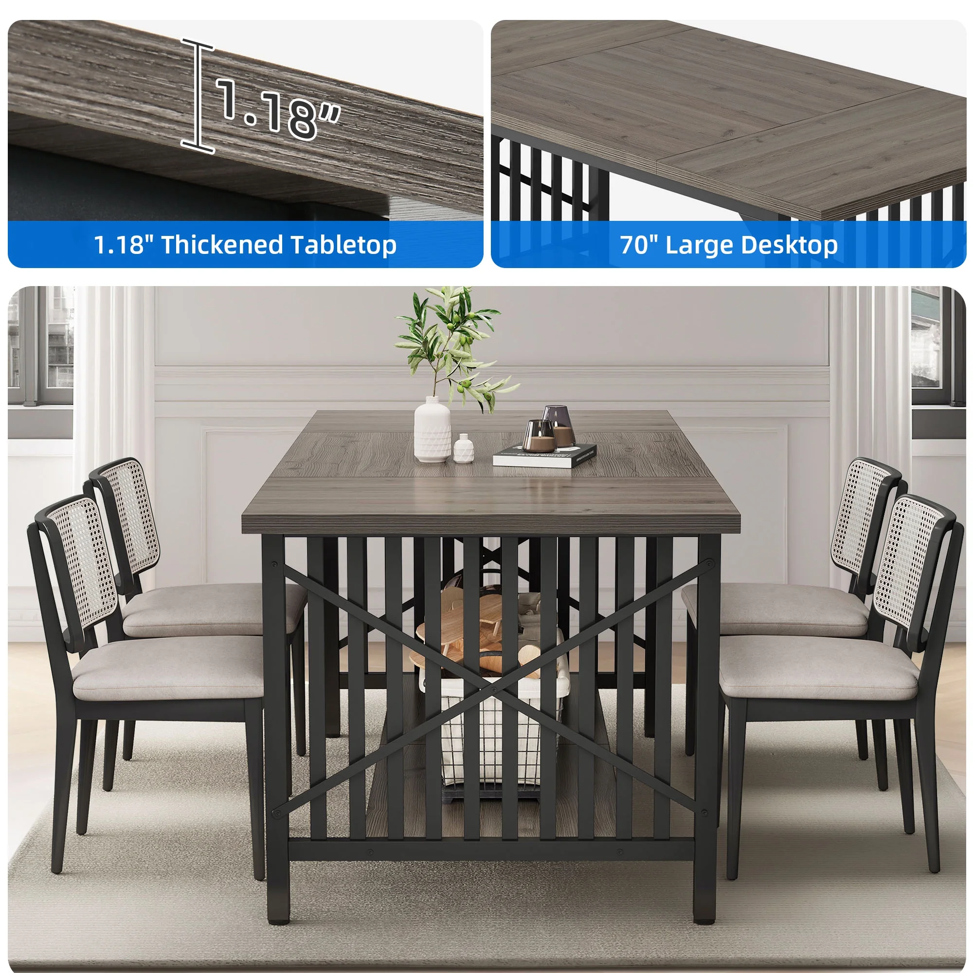 Dextrus 70" Dining Table for 6-8 People, Industrial Rectangular Wood Kitchen Table with Storage for Dining Room,Kitchen, Home & Office - Gray & Black