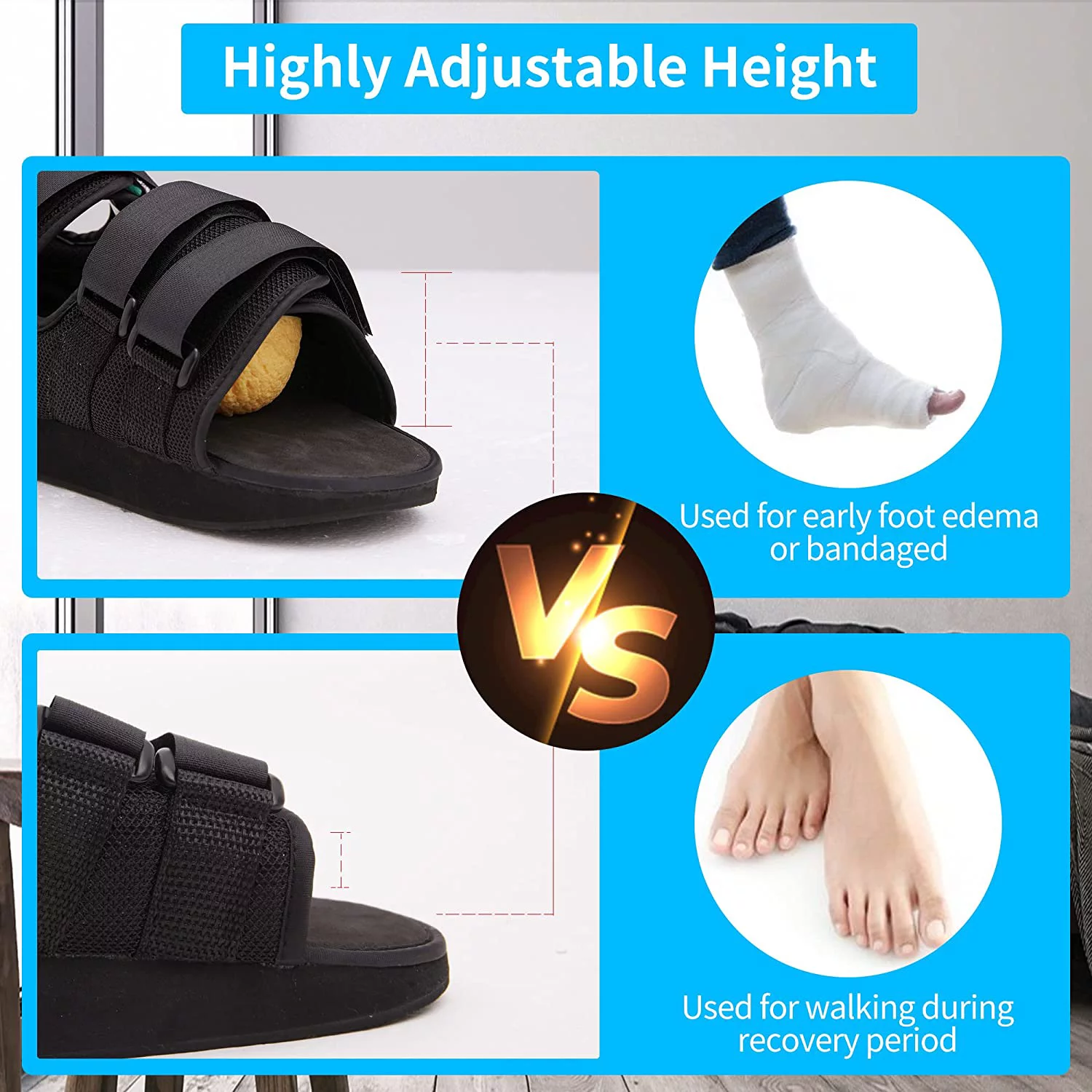 Post-op Shoes Heel Wedge Healing Shoe Lightweight Heel Relief Medical Orthopedic Foot Brace Off-loading Shoes for Ulcerations, Feet Wounds (Large)