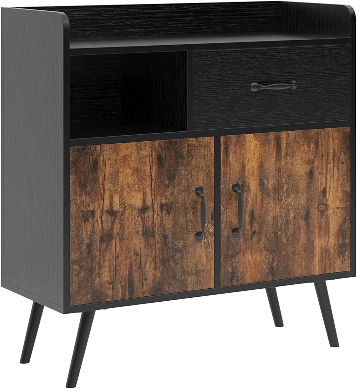 TJUNBOLIFE Cabinet with 1 Drawer 2 Doors 1 Open Shelves Free Standing Cupboard with 4 Legs Accent Side Cabinet Wooden Sideboard Organizer for Bedroom Home Office FJGS-ST13WT