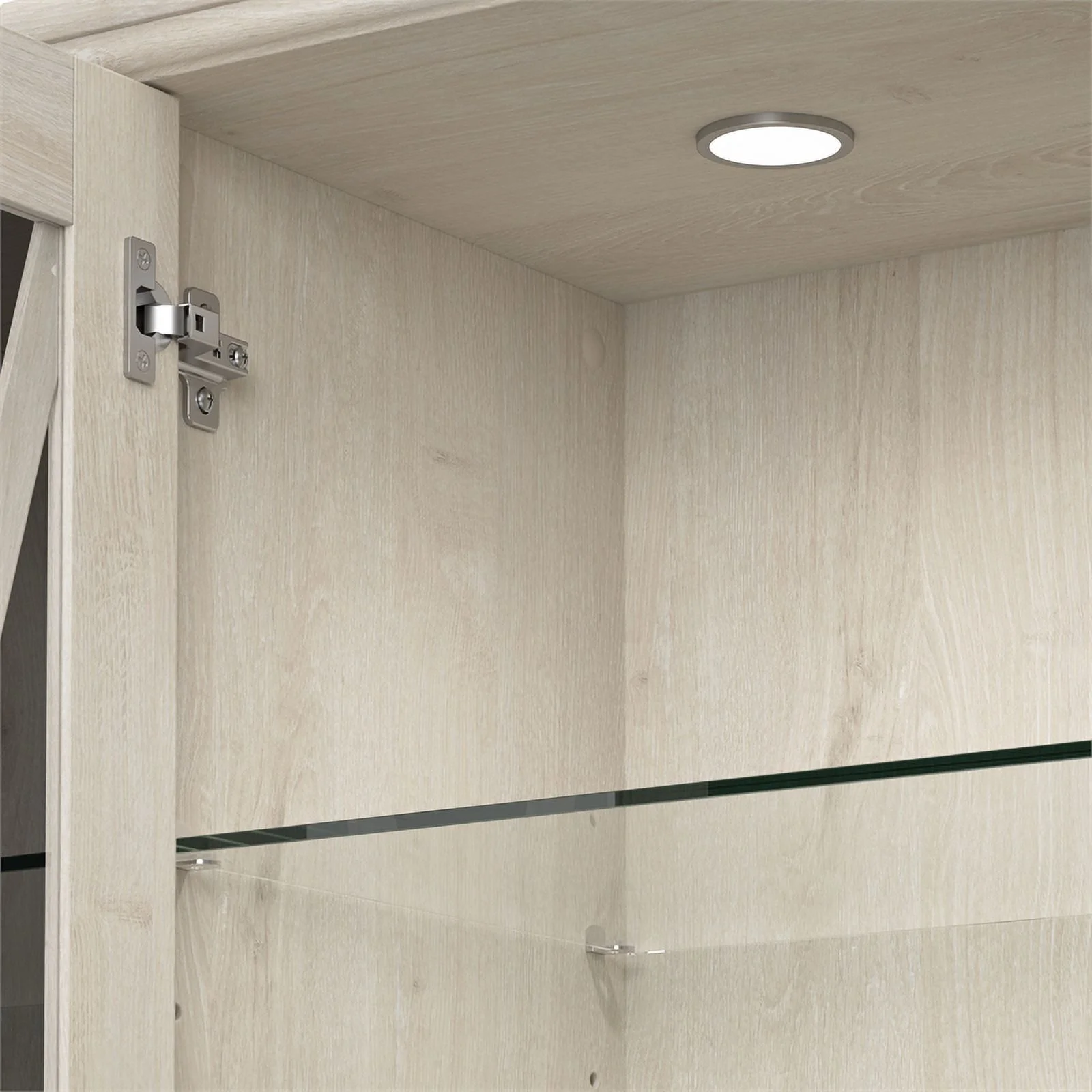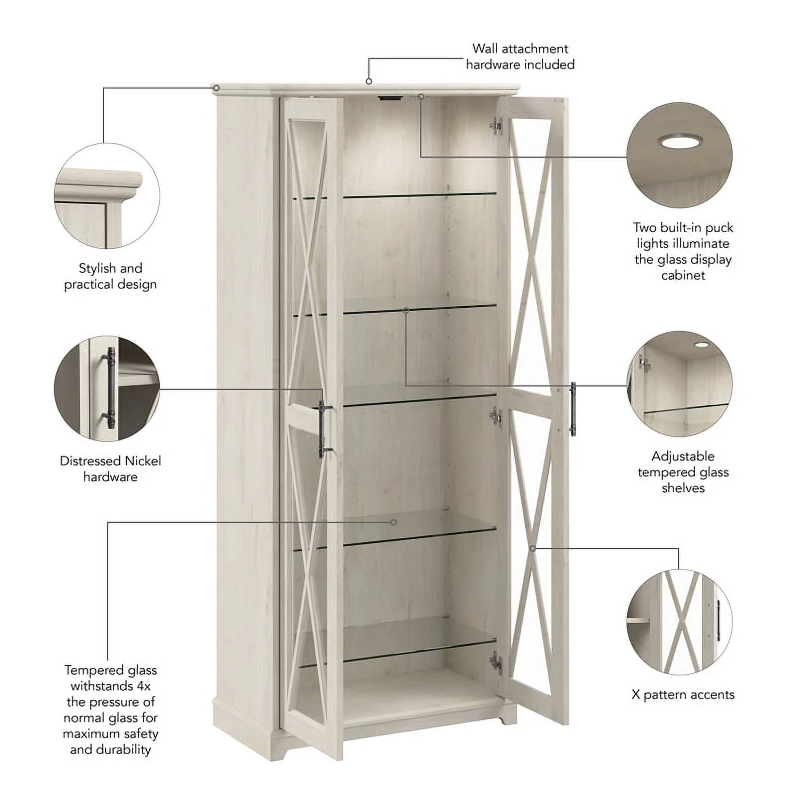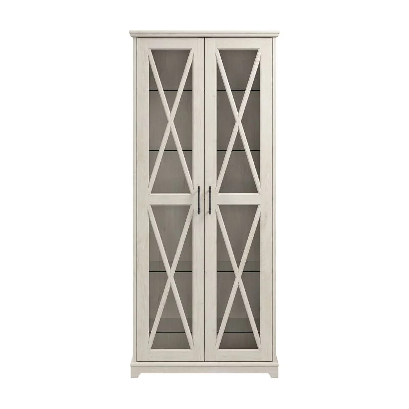 Bowery Hill Engineered Wood Curio Cabinet with Glass Doors in Linen White Oak