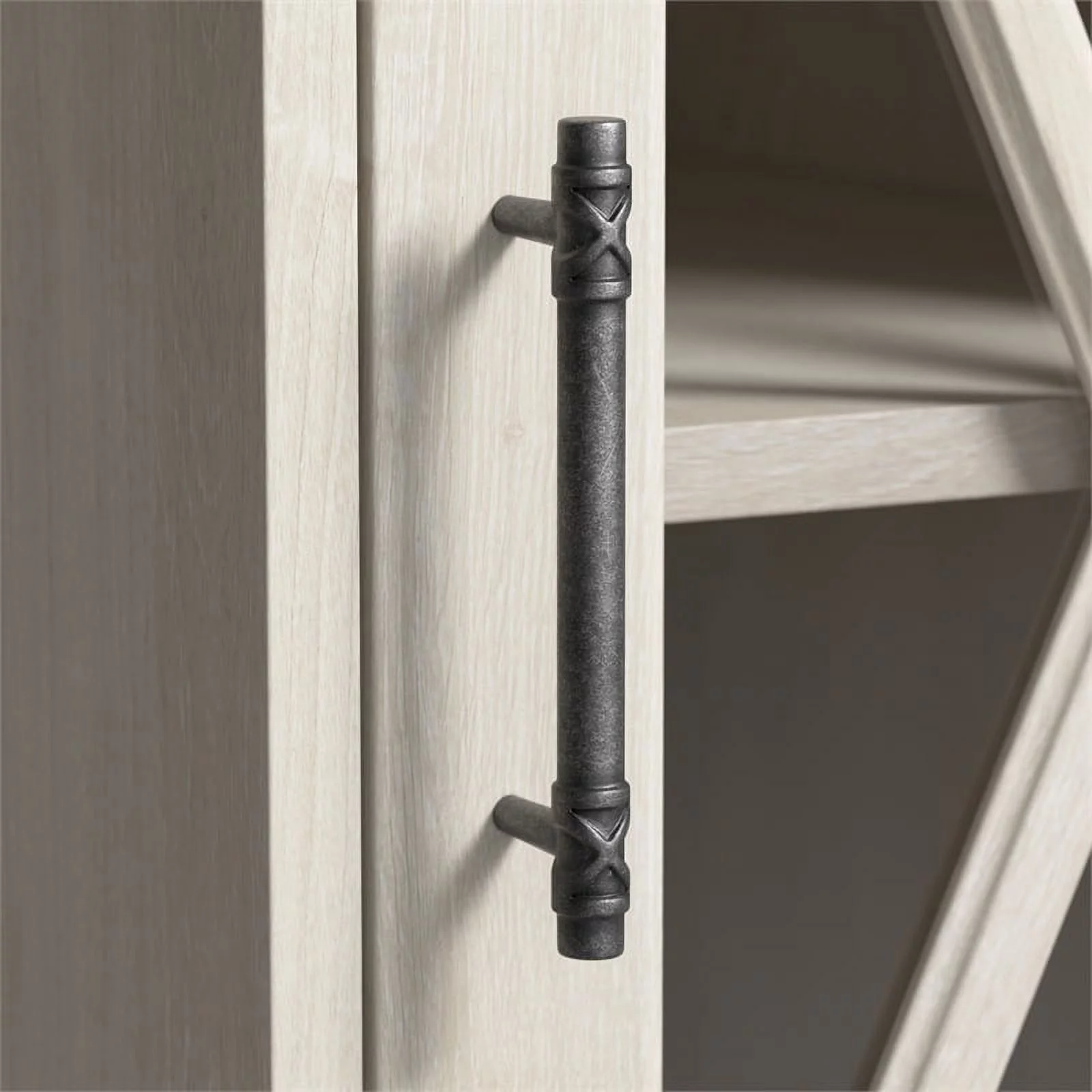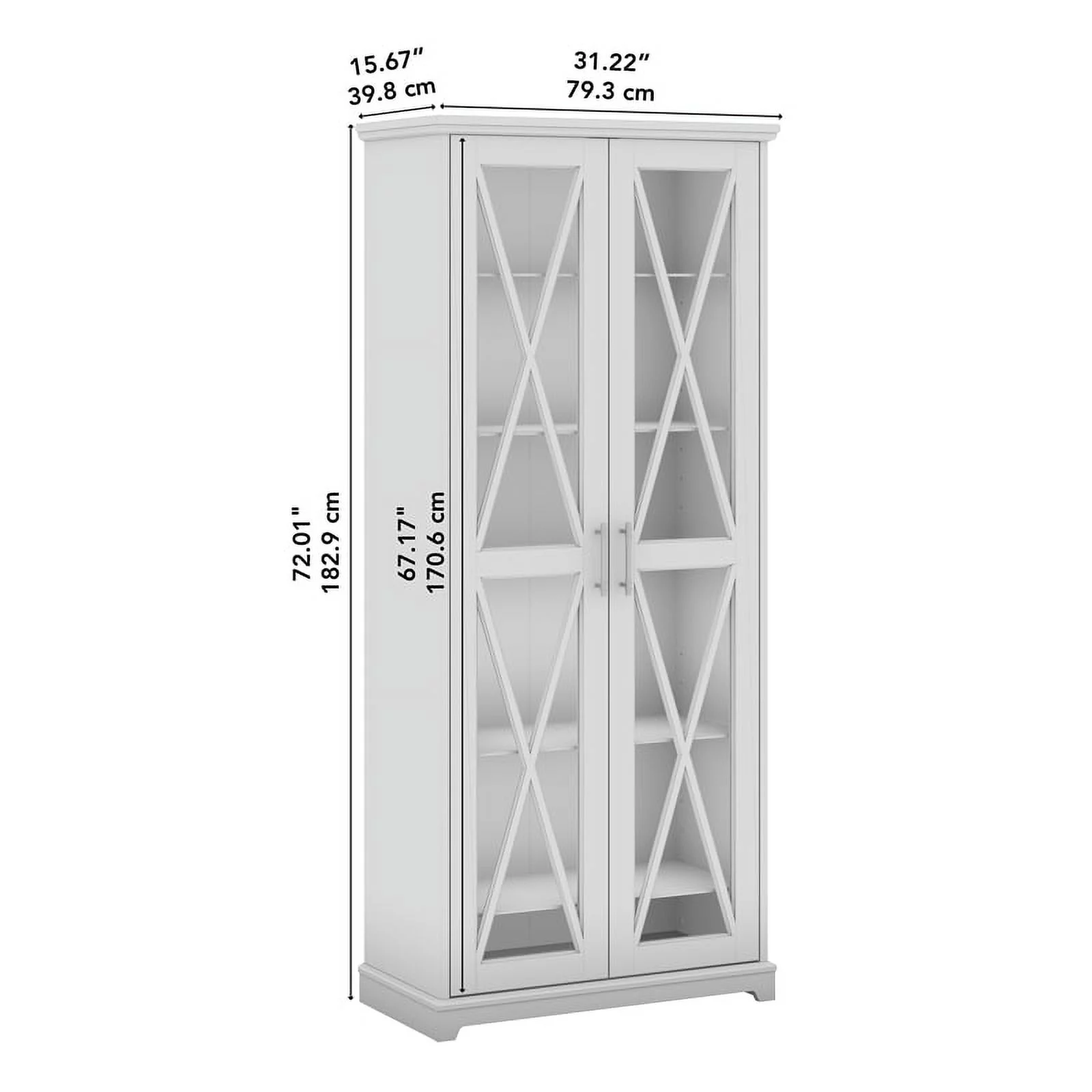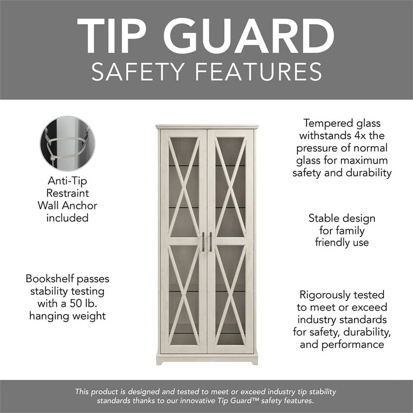 Bowery Hill Engineered Wood Curio Cabinet with Glass Doors in Linen White Oak