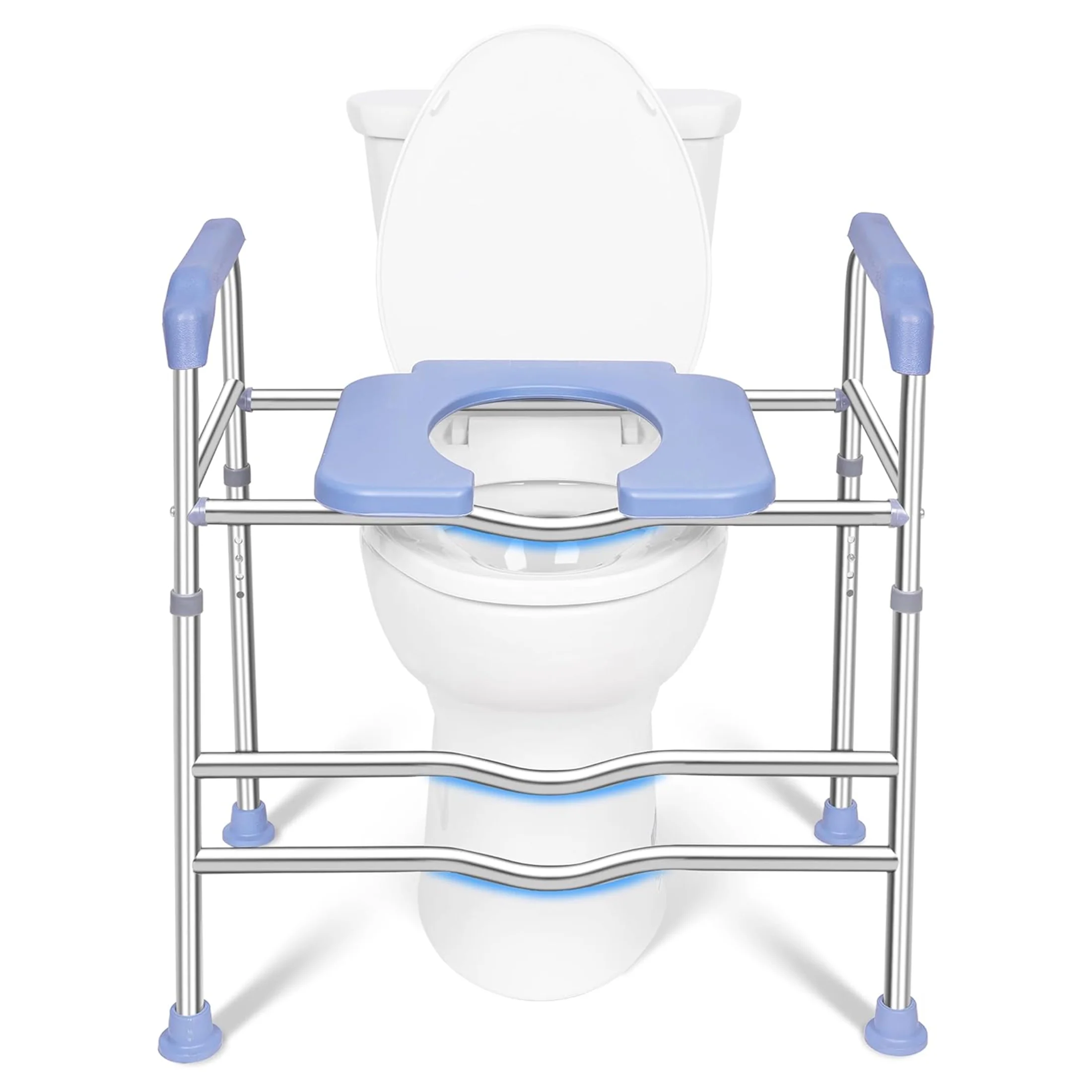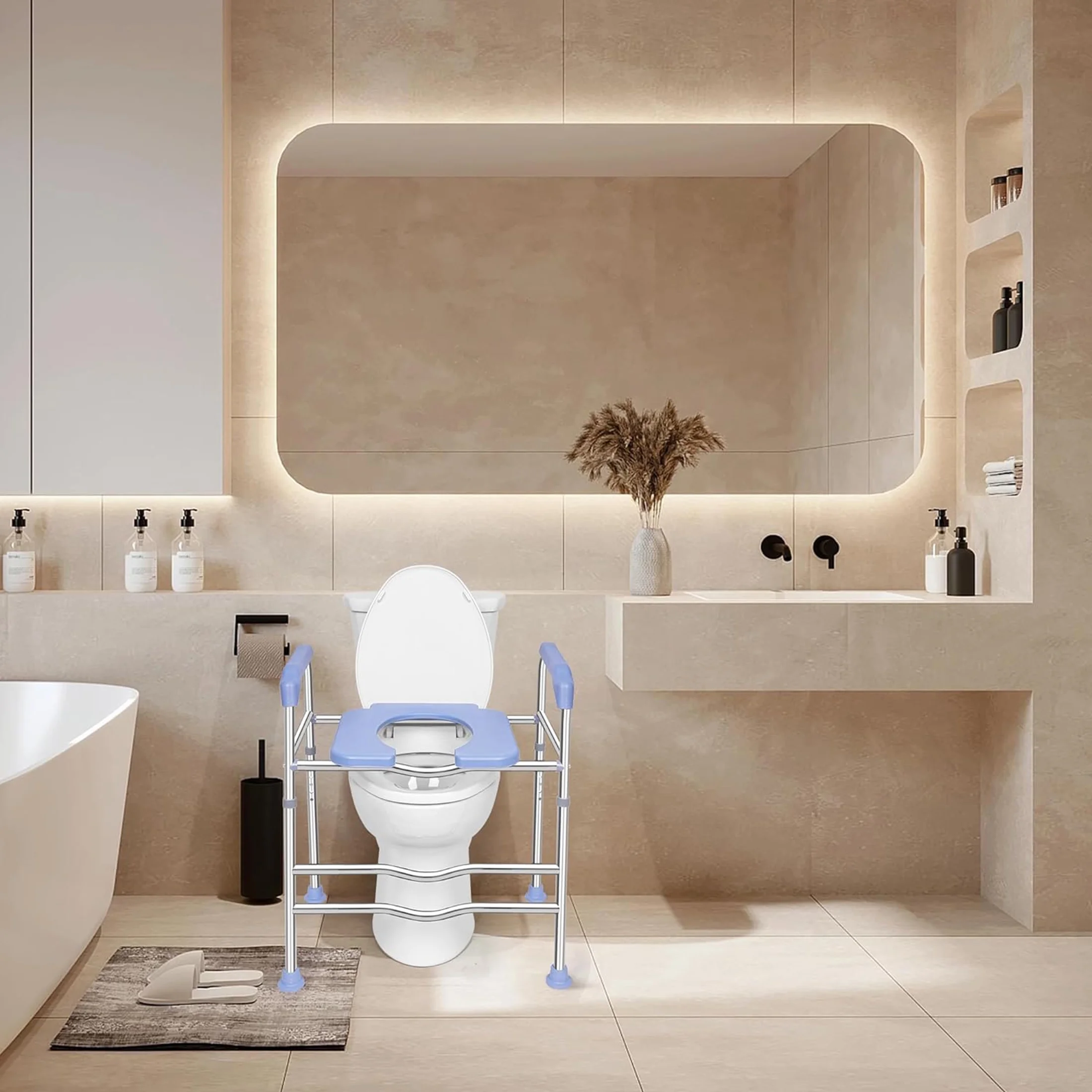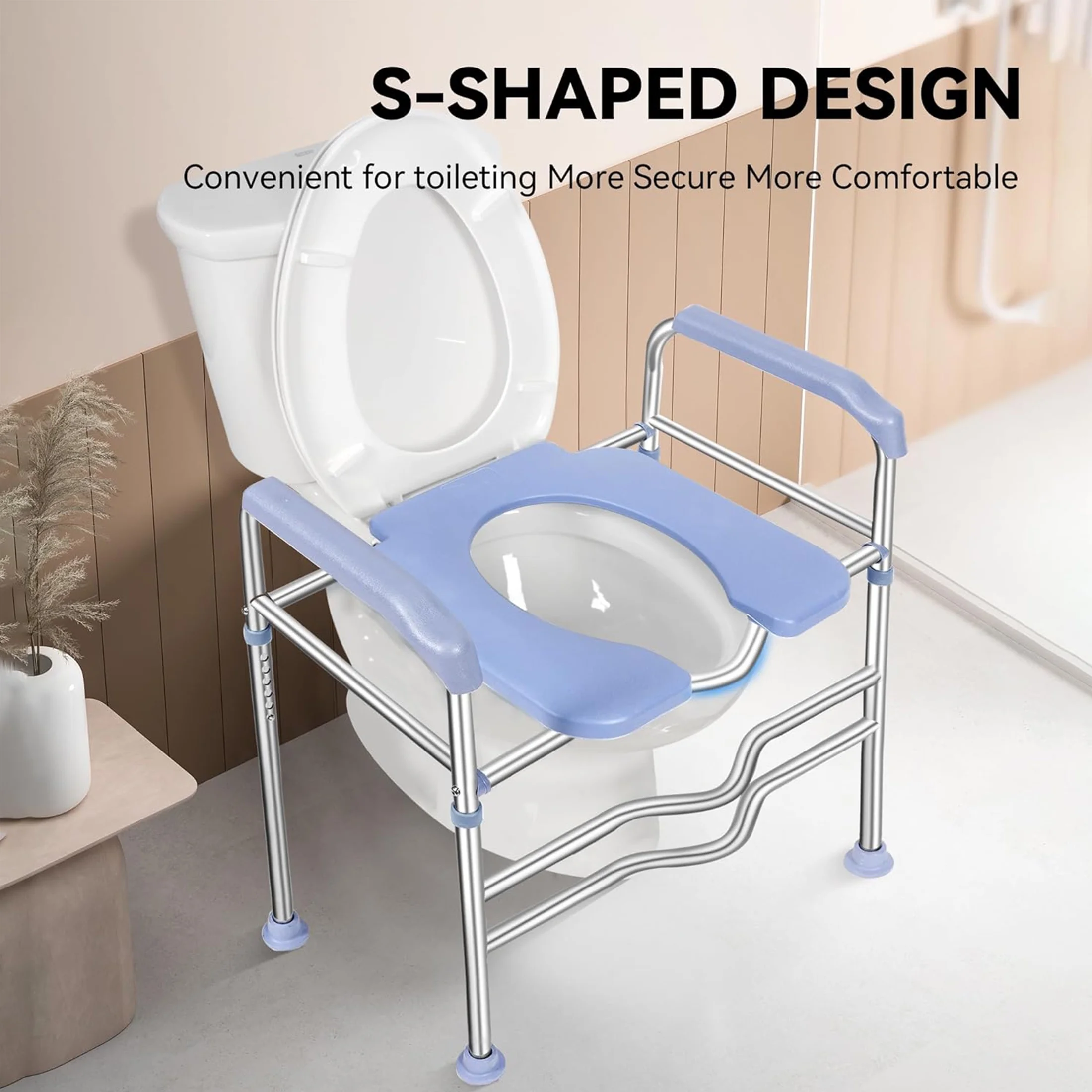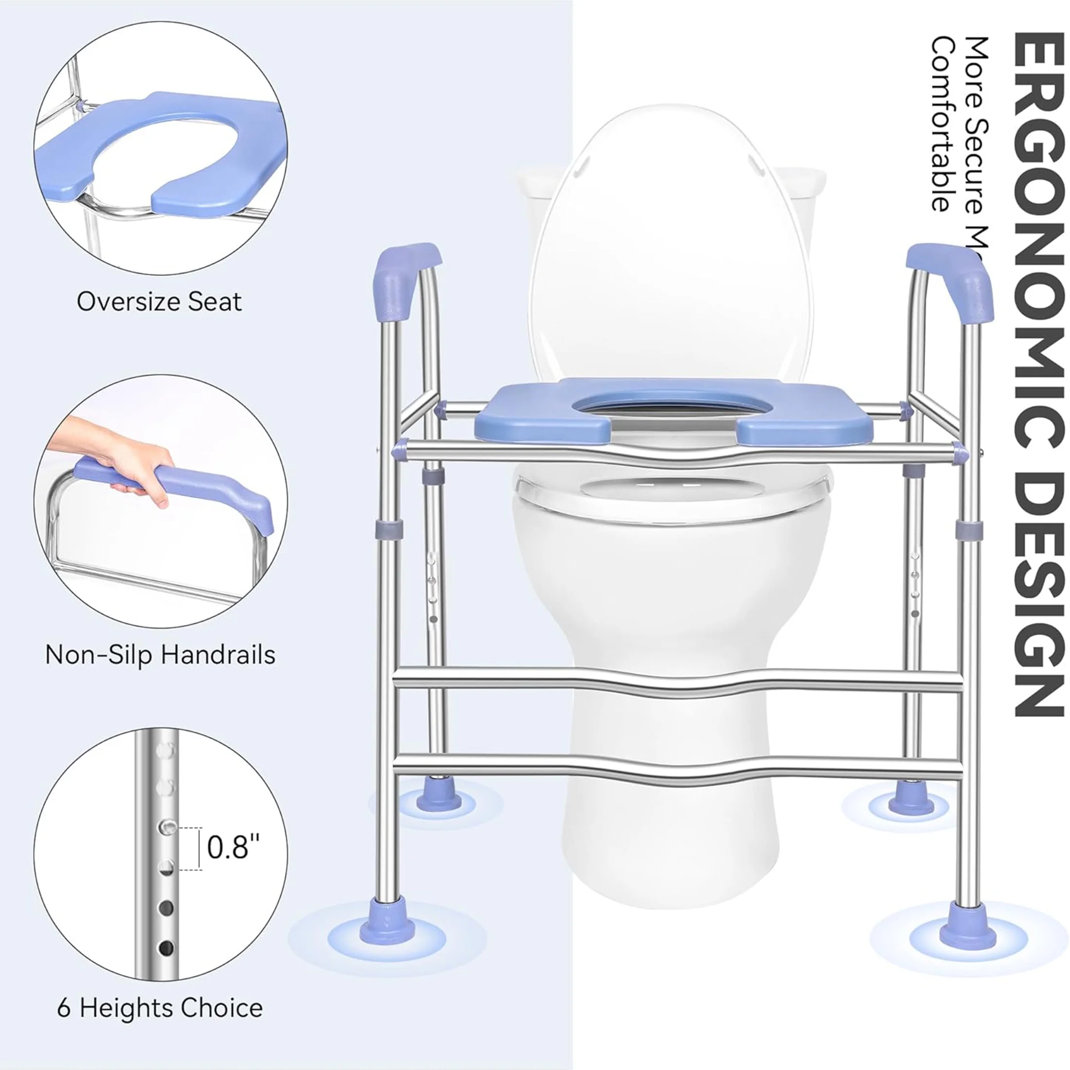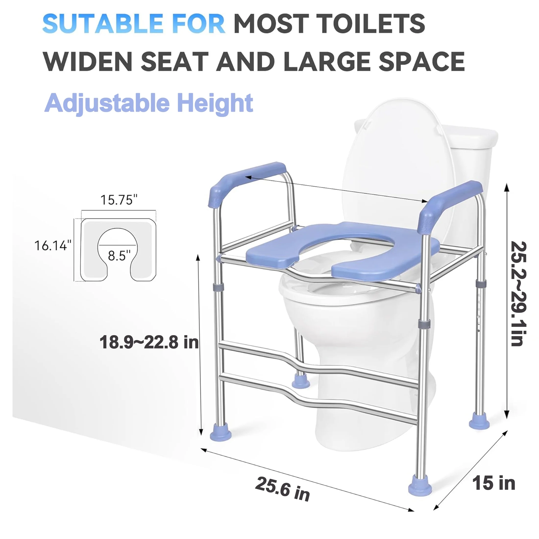 Raised Toilet Seat with Handles and Soft Seat, up to 400lbs Commode Chair for Toilet, Handicap Toilet Seat for Seniors and Pregnant, Widen to Fit All Toilets