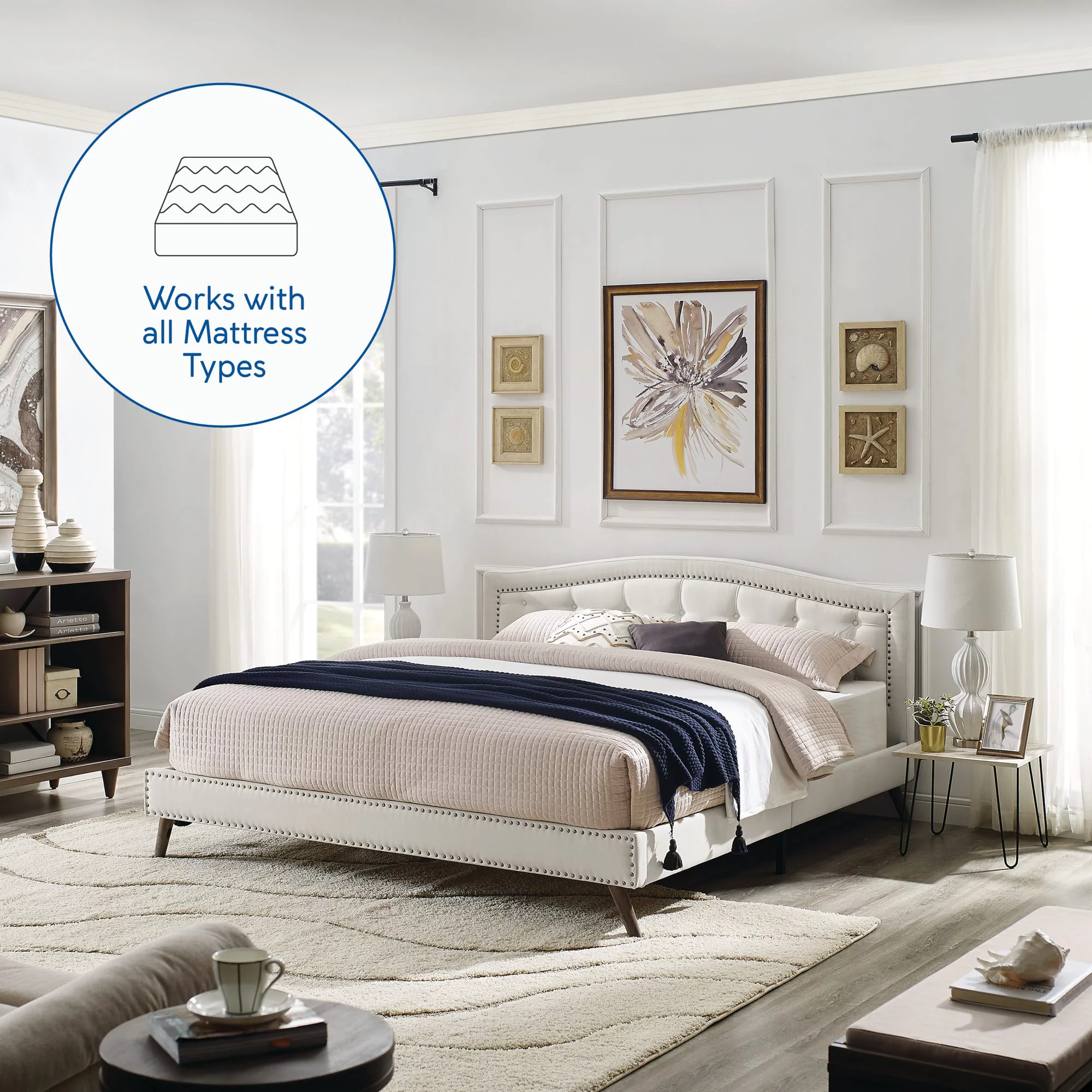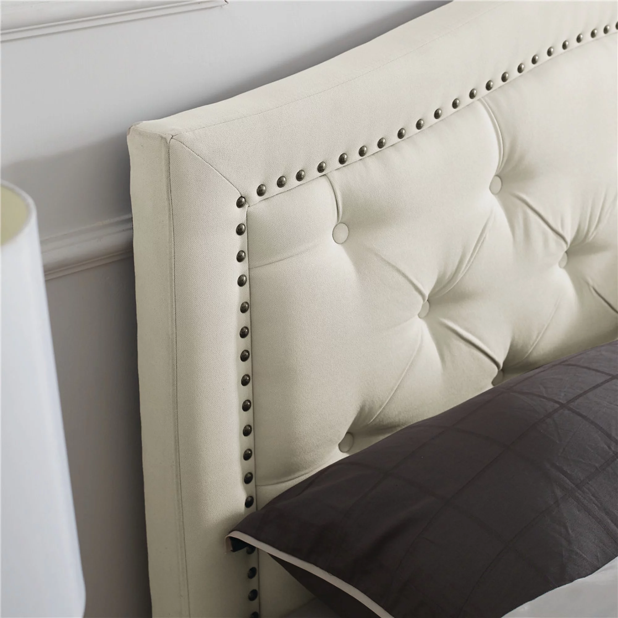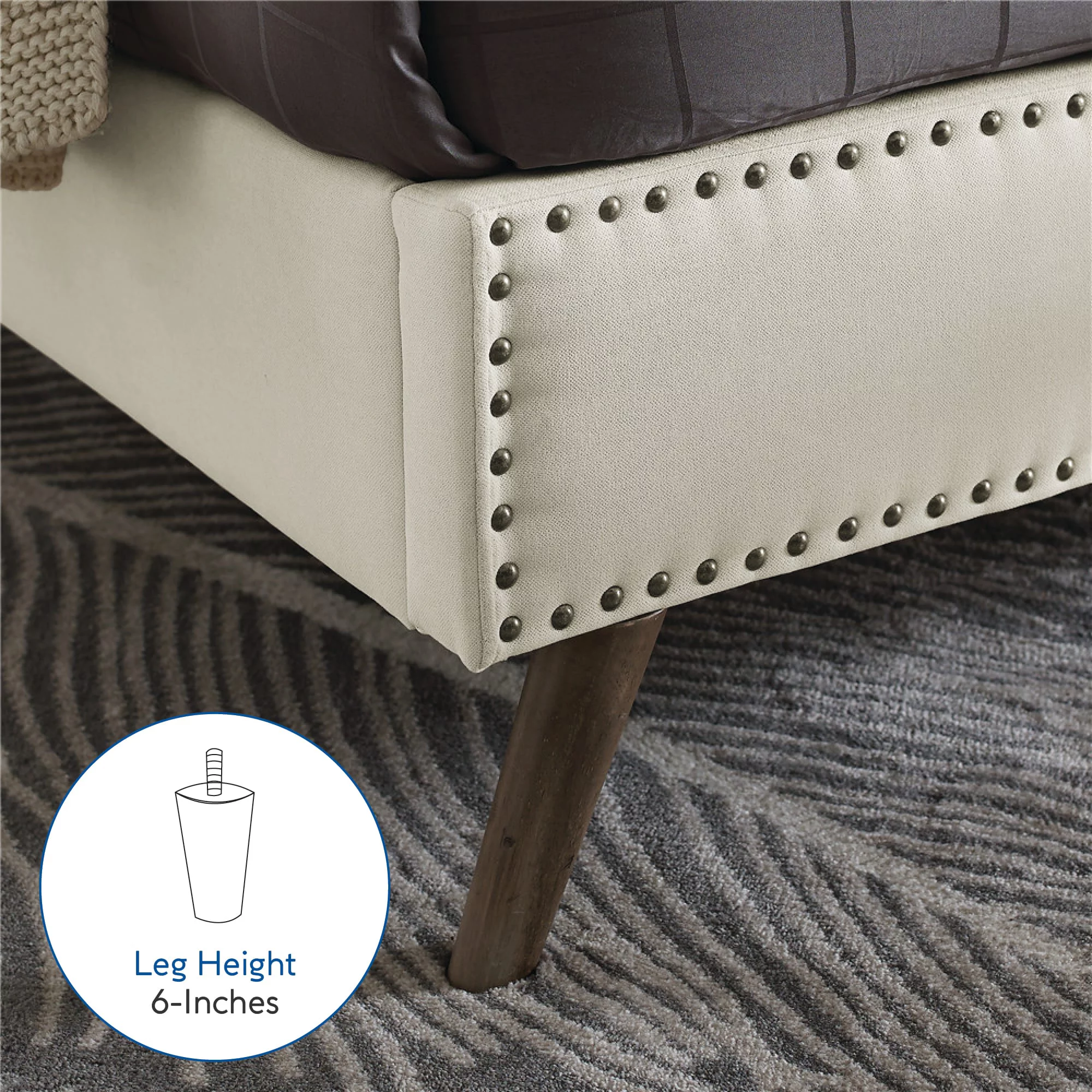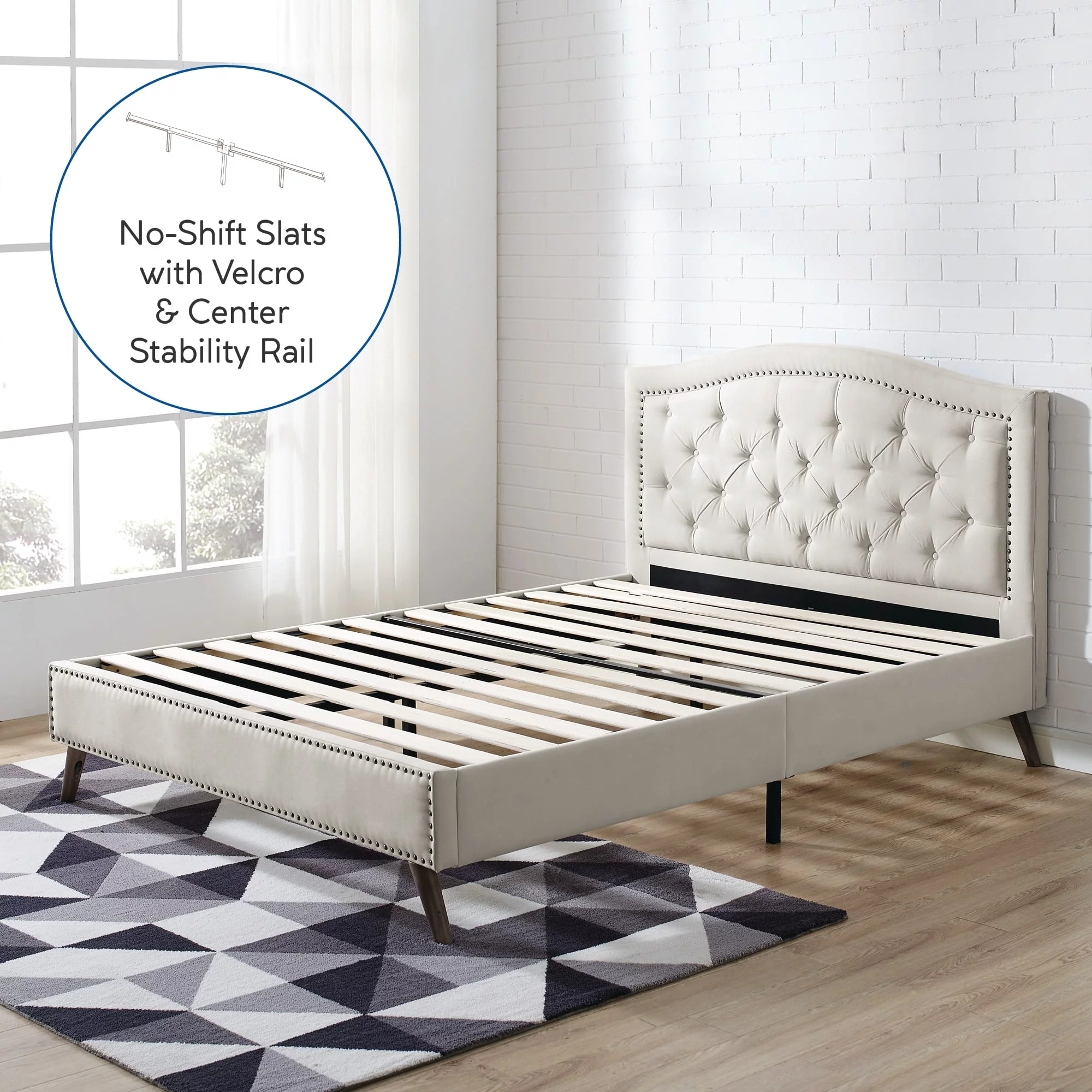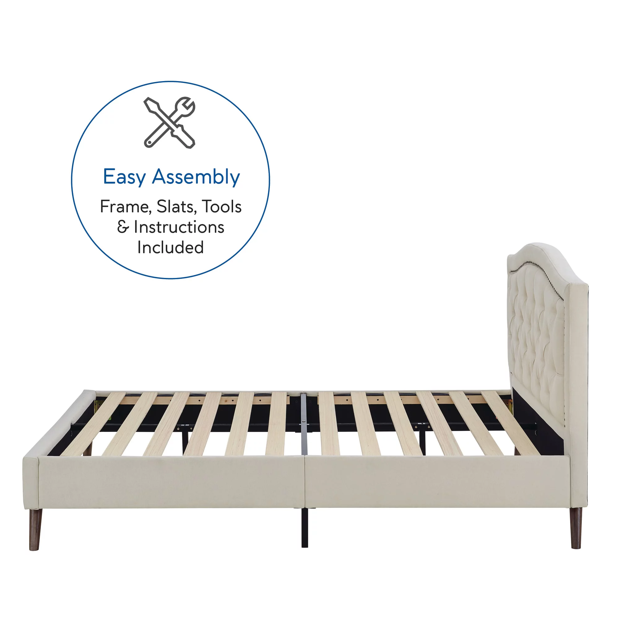 Modern Sleep Arlesa Upholstered Platform Bed Frame, Full, Shell