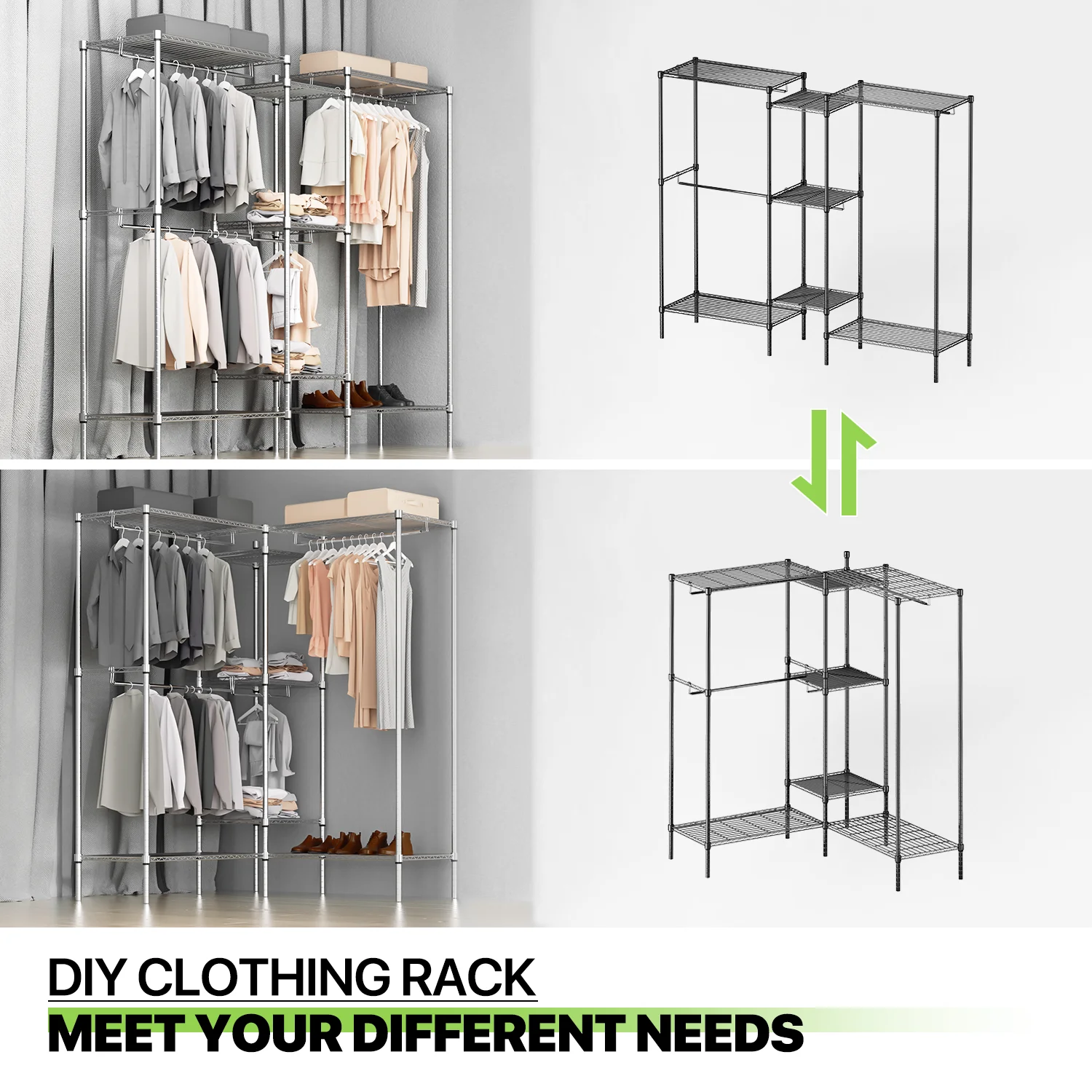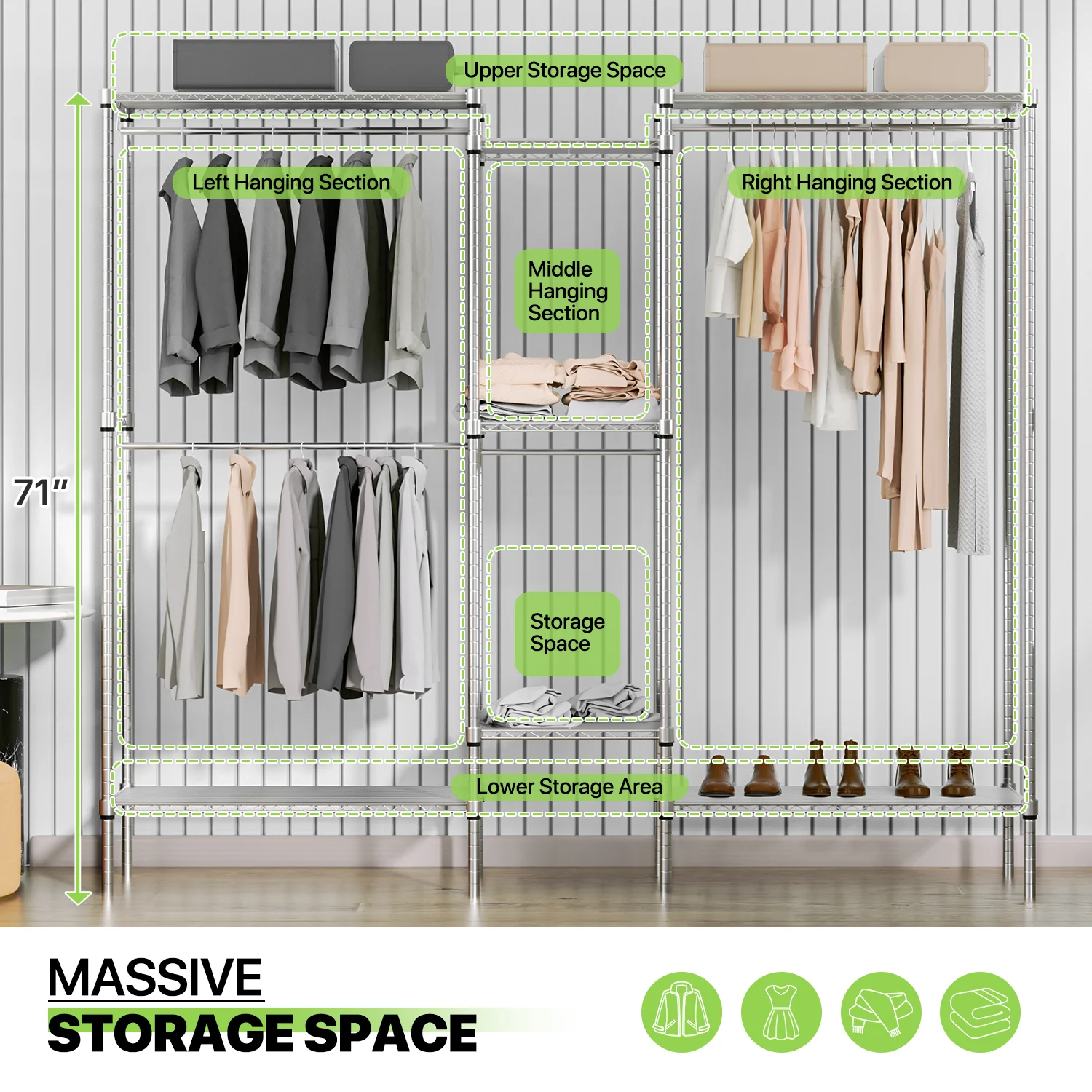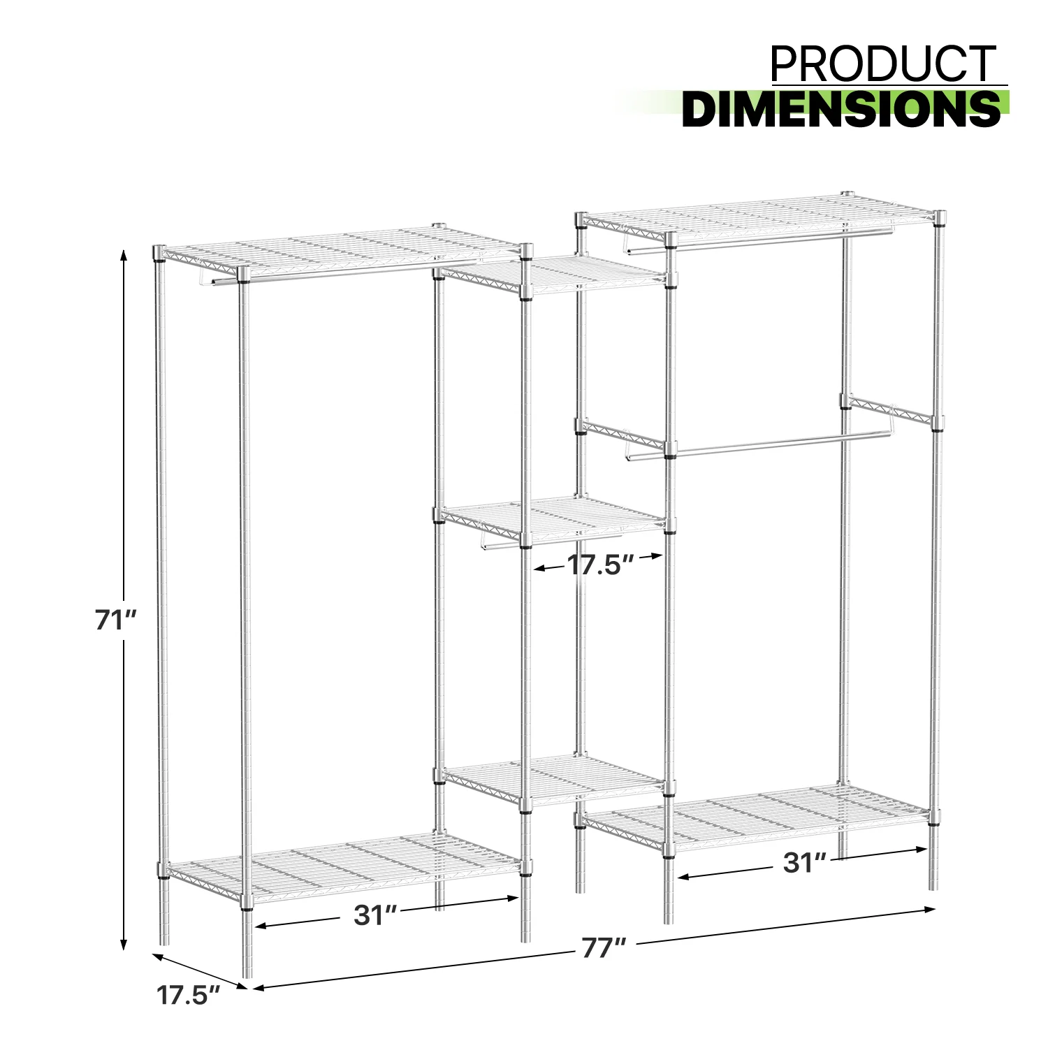 Magshion Carbon Steel Heavy Duty Garment Rack Clothes Rack Clothing Racks for Hanging Clothes Wardrobe Closet Organizer Adjustable DIY Closets for Bedroom, 77"Lx17.5"Wx71"H, Silver