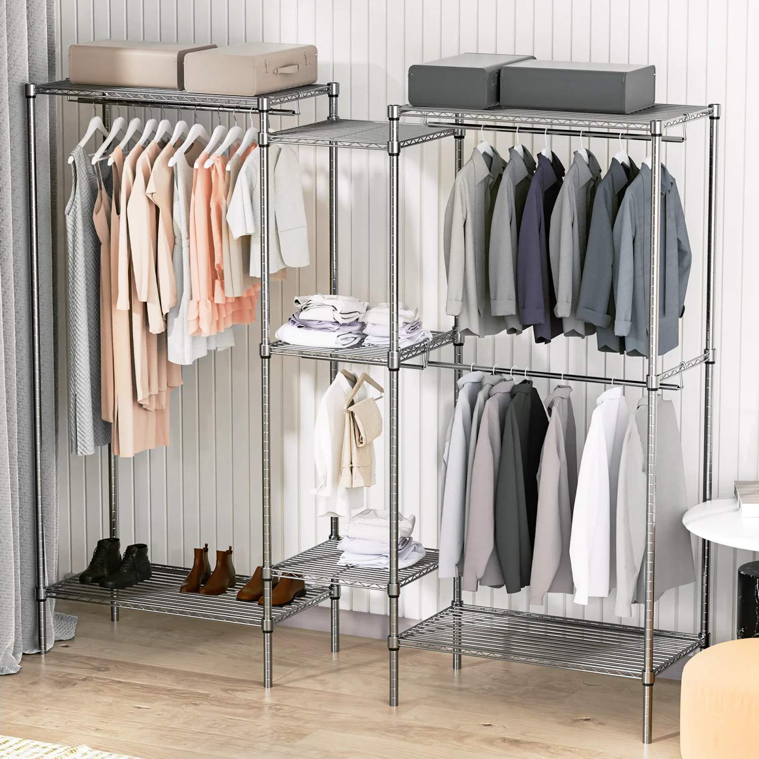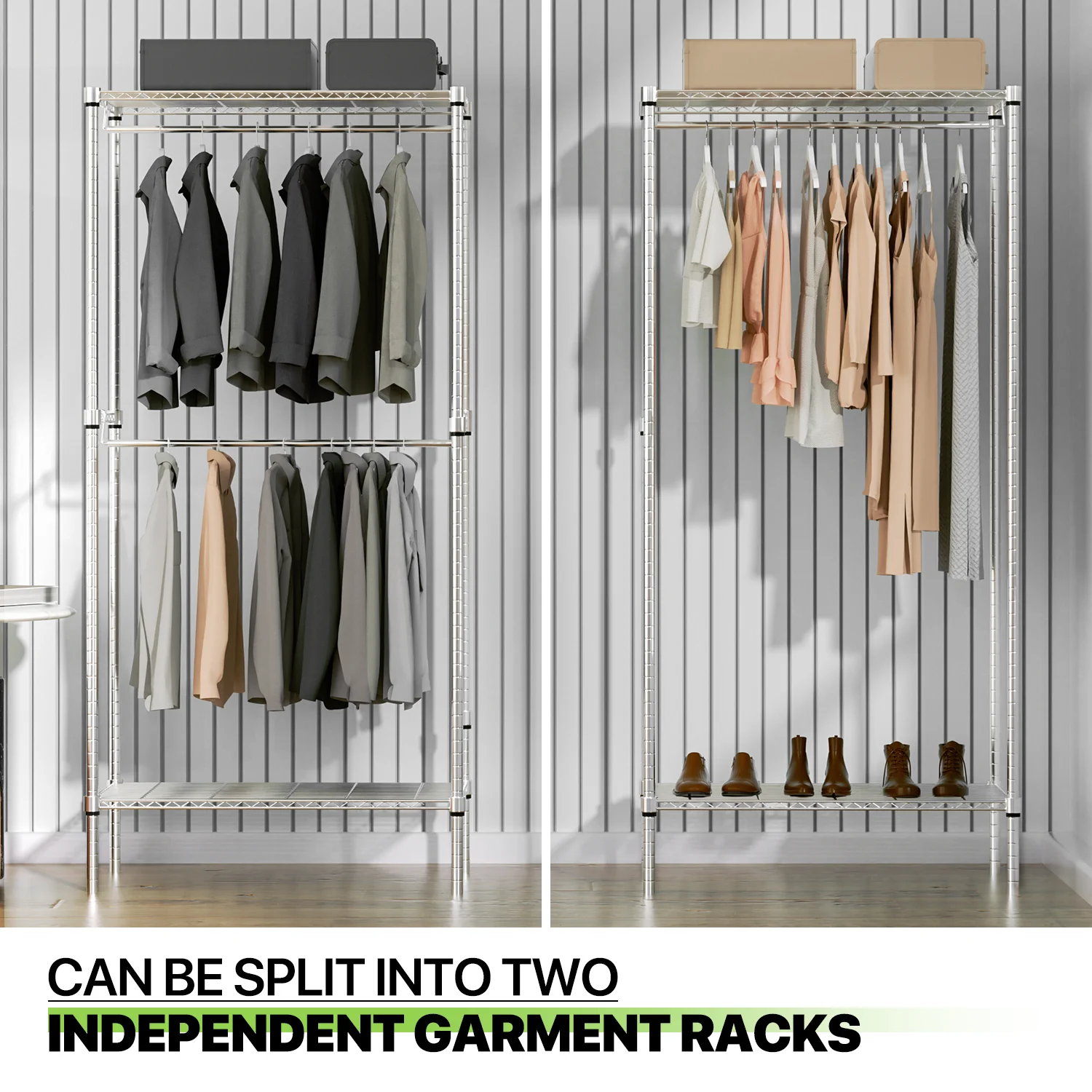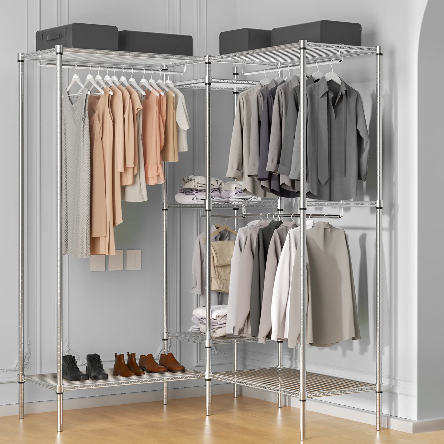 Magshion Carbon Steel Heavy Duty Garment Rack Clothes Rack Clothing Racks for Hanging Clothes Wardrobe Closet Organizer Adjustable DIY Closets for Bedroom, 77"Lx17.5"Wx71"H, Silver