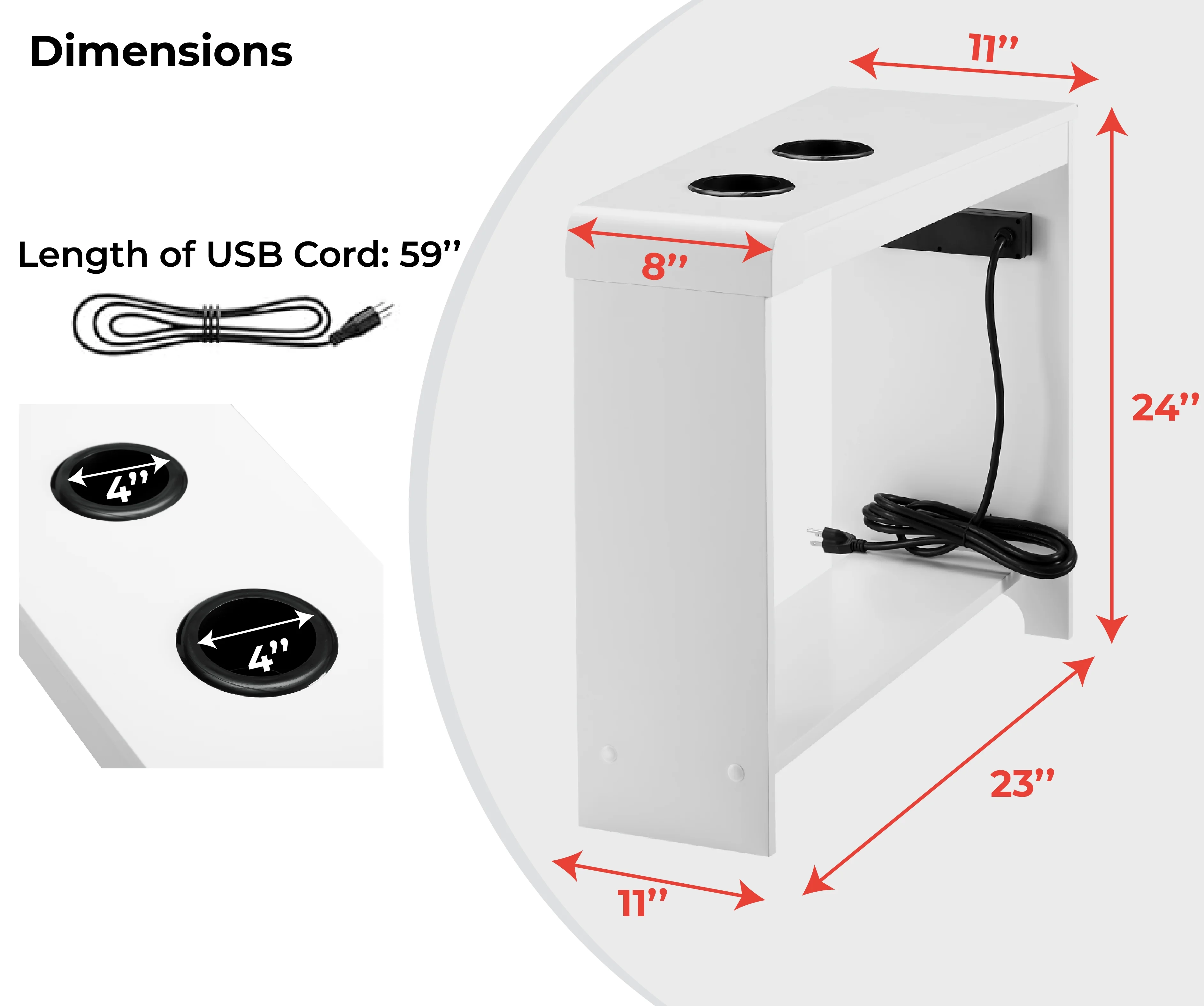 End Table with Charging Station for Living Room, USB Ports & Outlets, Narrow Side Table, Chair Side Table Nightstand, Bedside Table, Slim Sofa End Table for Small Spaces