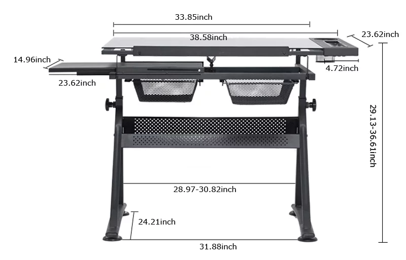 TECHTONGDA Adjustable Drafting Table Tattoo Stencil Glass Desk Tracing Drawing Work Station