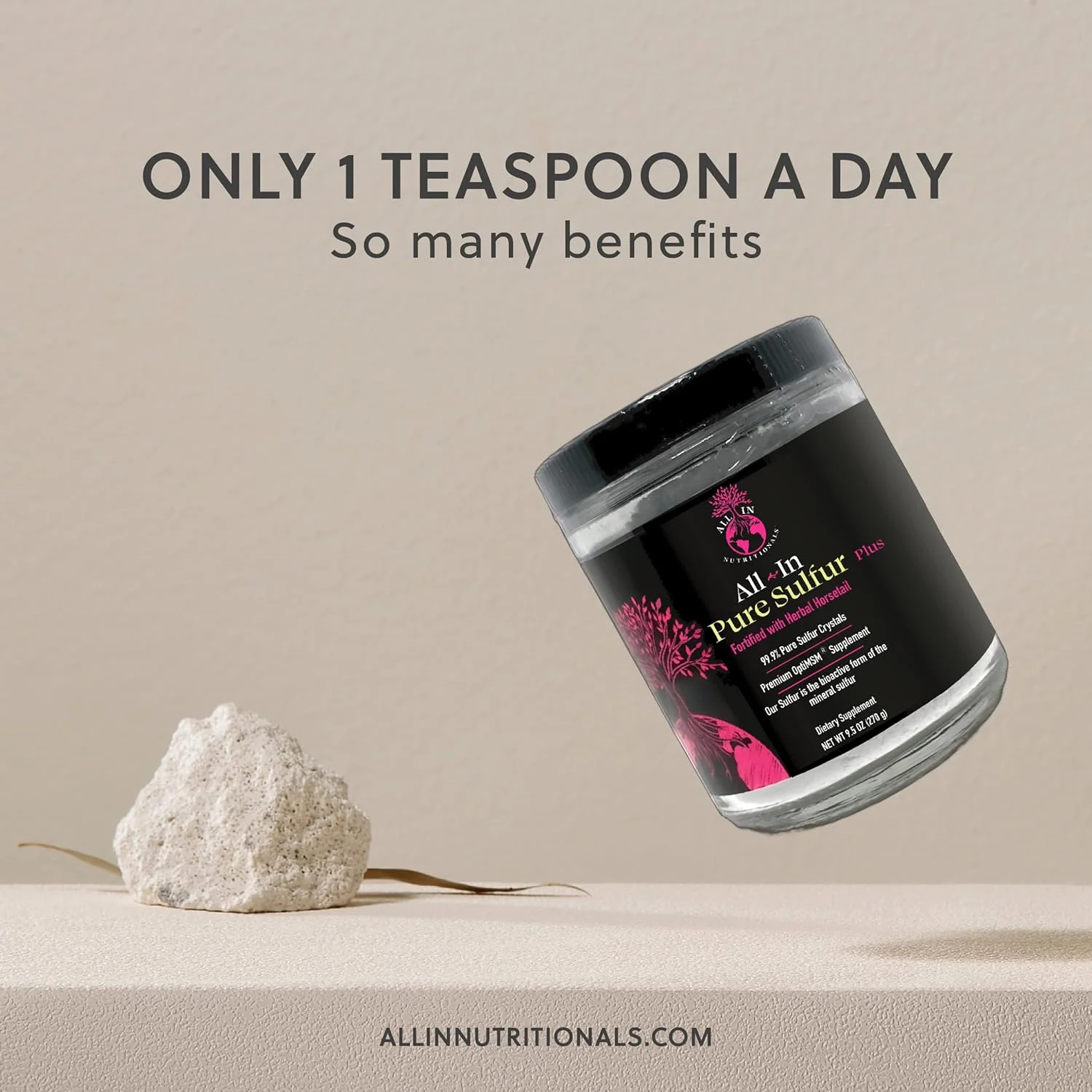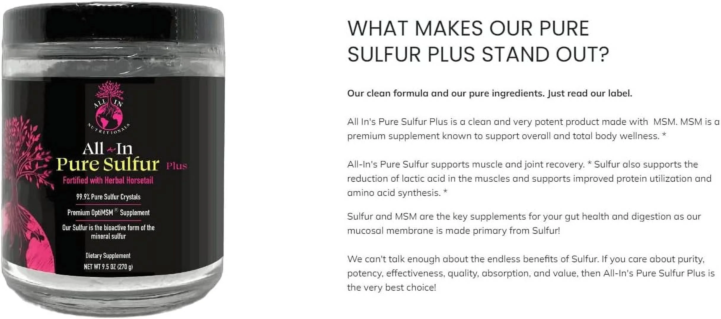 All In Nutritionals Pure Sulfur-60 Servings Per Jar! A one-of-a-Kind Formula Designed to Support Joint Health, Boost Cellular Health and Function, Support Digestion and The Brain Gut axis