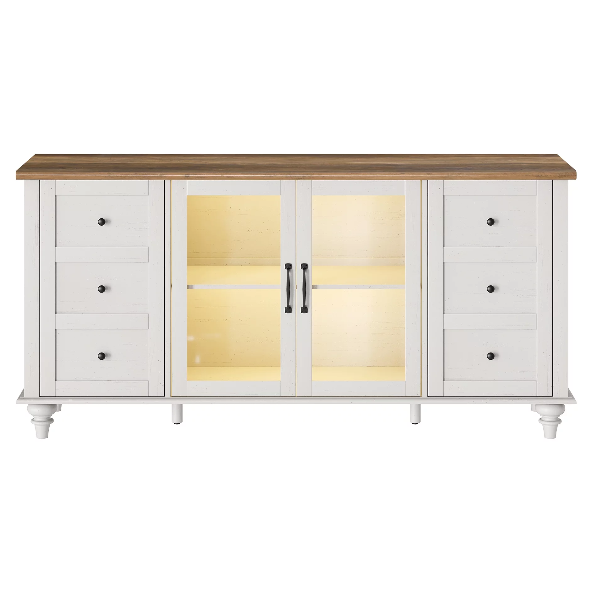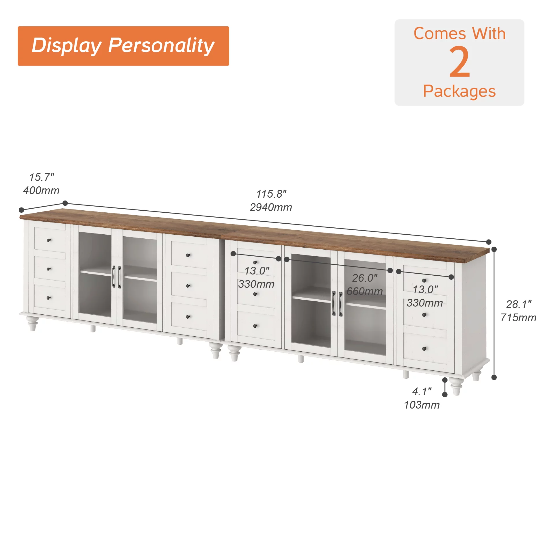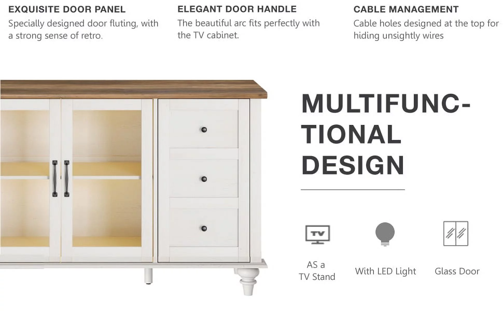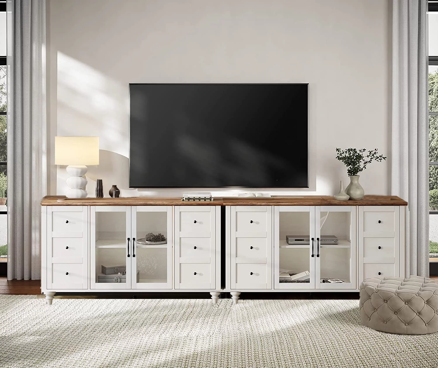 WAMPAT Glass Door Farmhouse TV Stand for TVs Up to 110 inch, Glass and Wood Universal TV Stand,White Entertainment Center for 85-110 inch TV Console Table,White&Oak