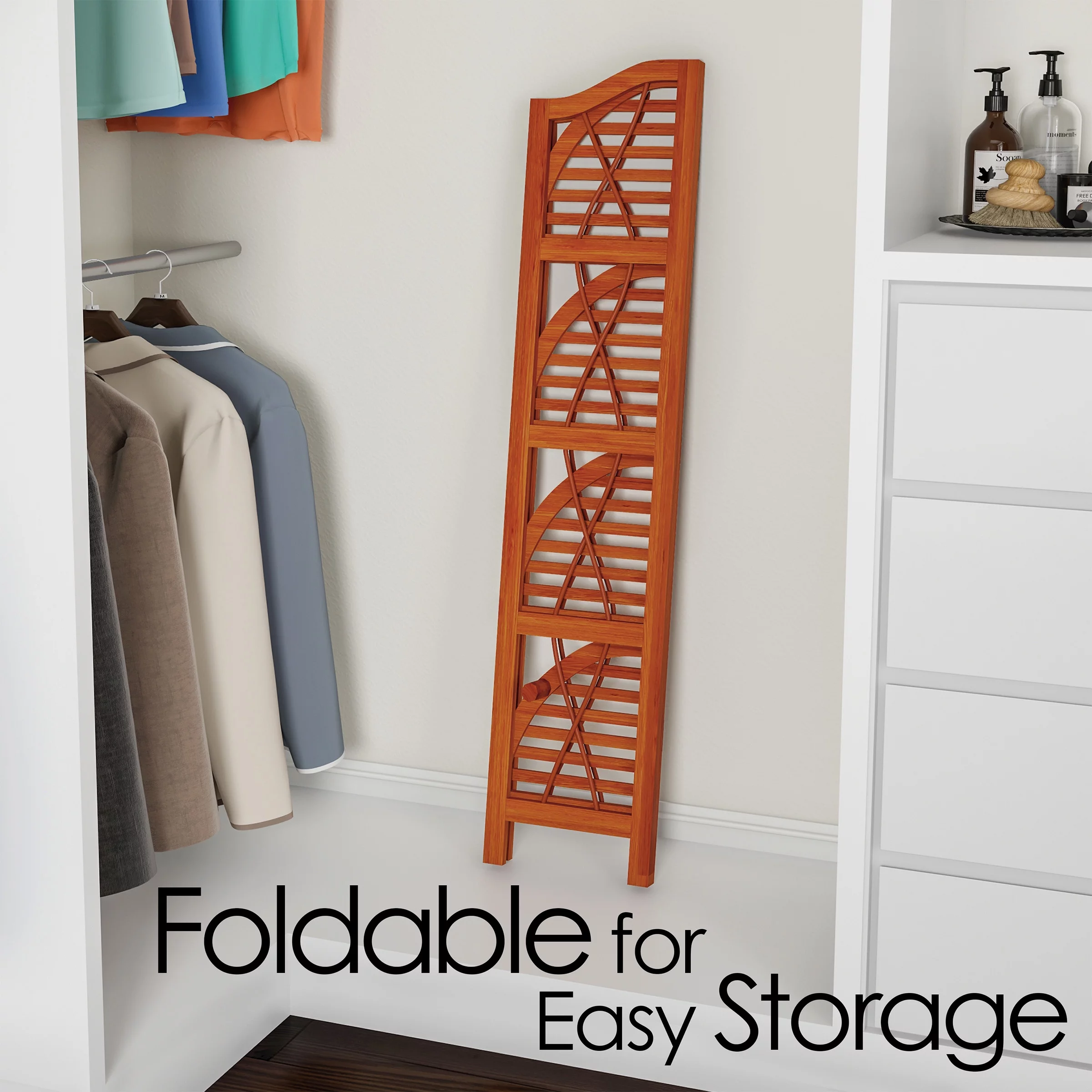 Lavish Home 4 Tier Wooden Folding Corner Bookshelf for Small Tight Spaces, Pecan