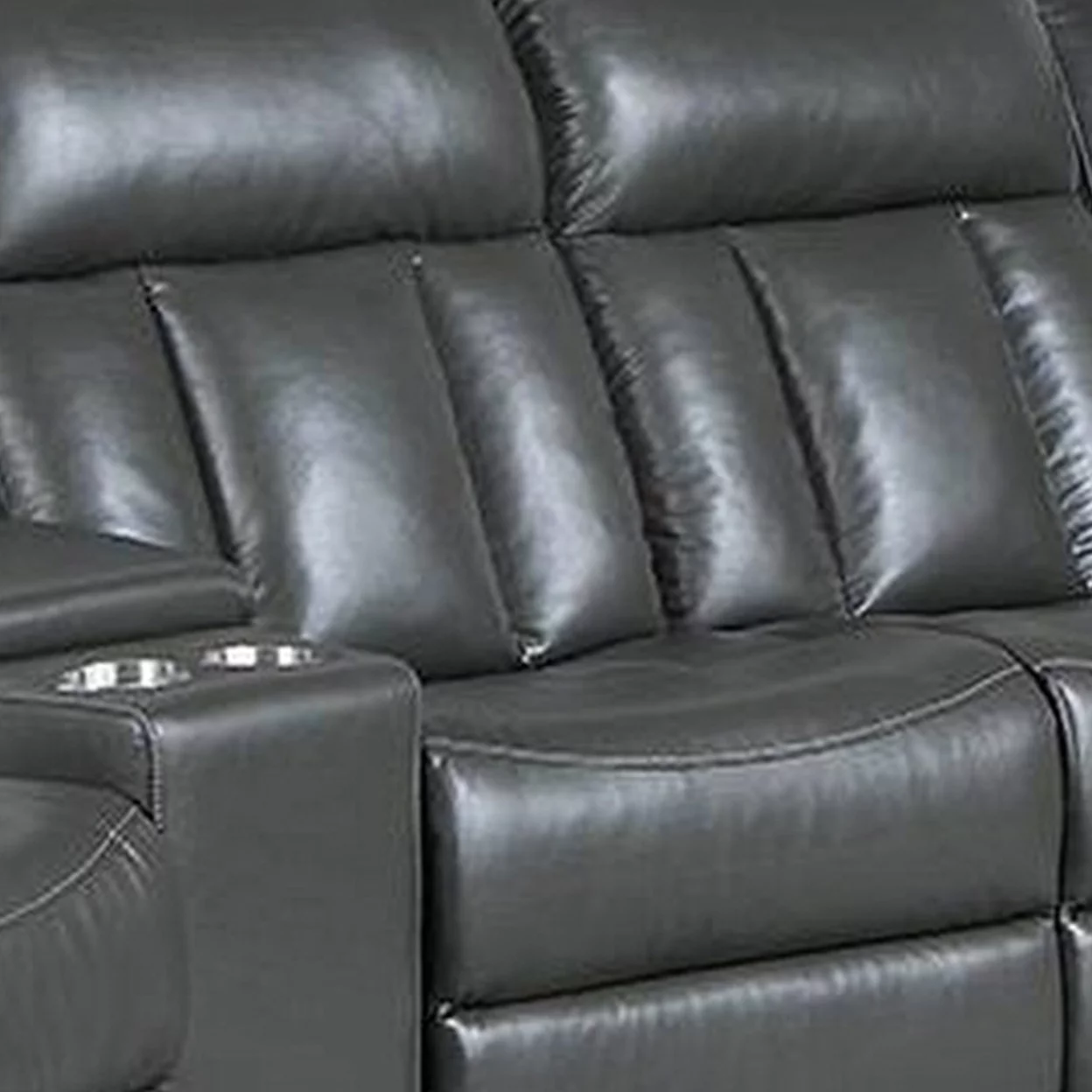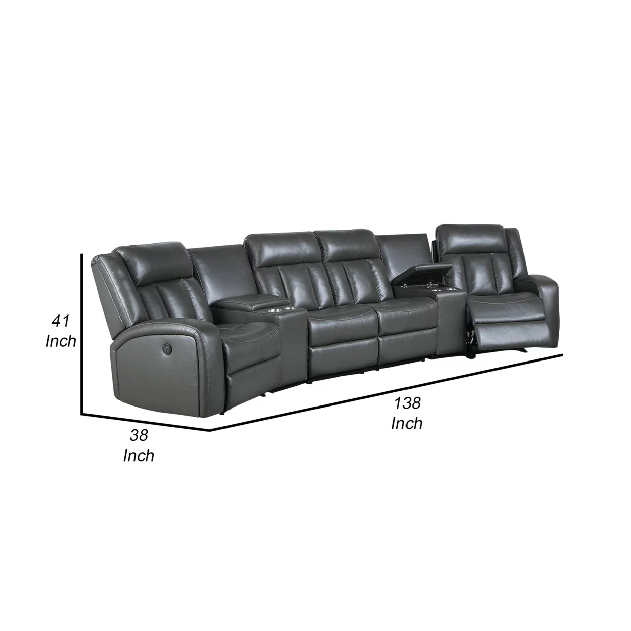 Max 5 Piece Power Recliner Sectional Sofa Set, Vegan Faux Leather, Gray- Saltoro Sherpi