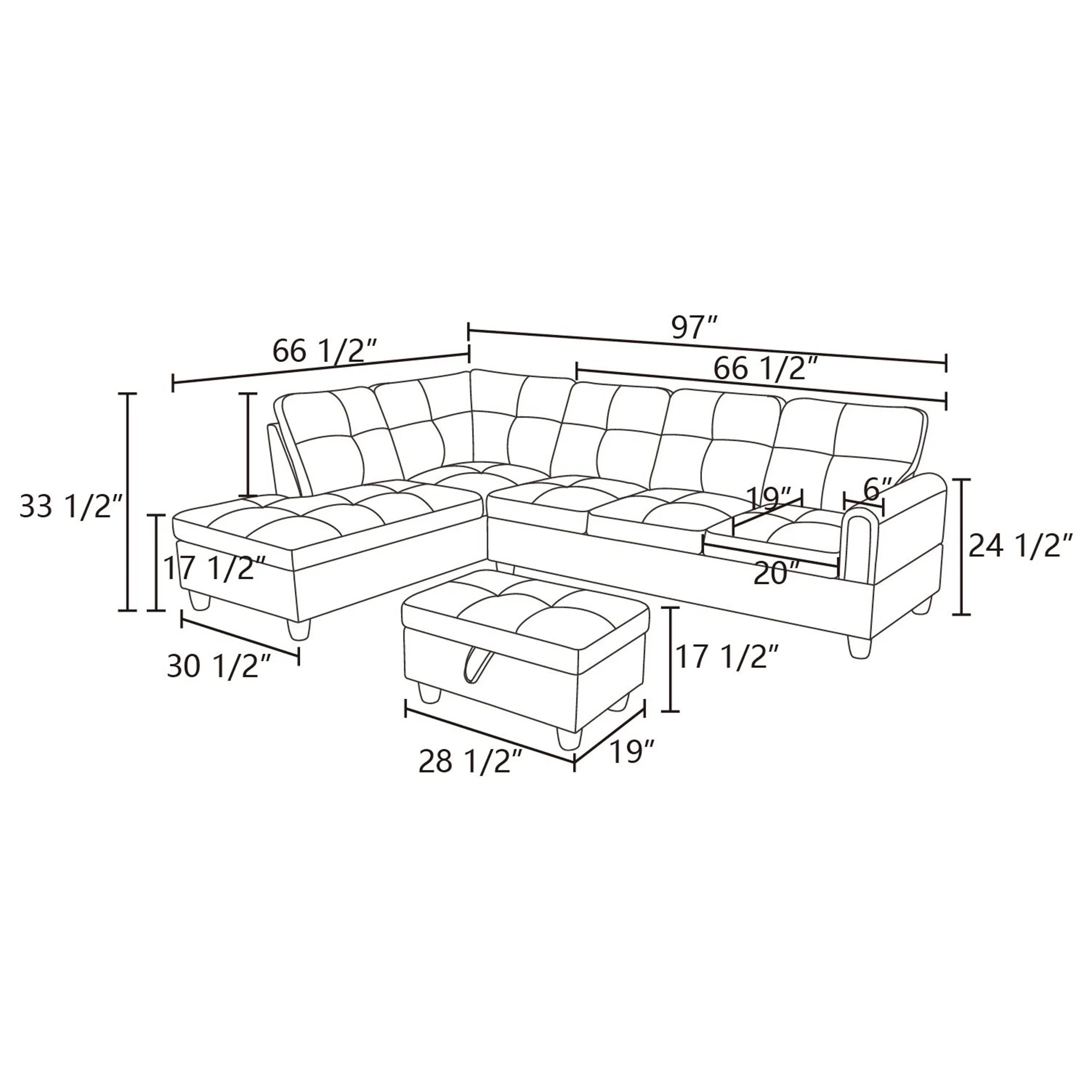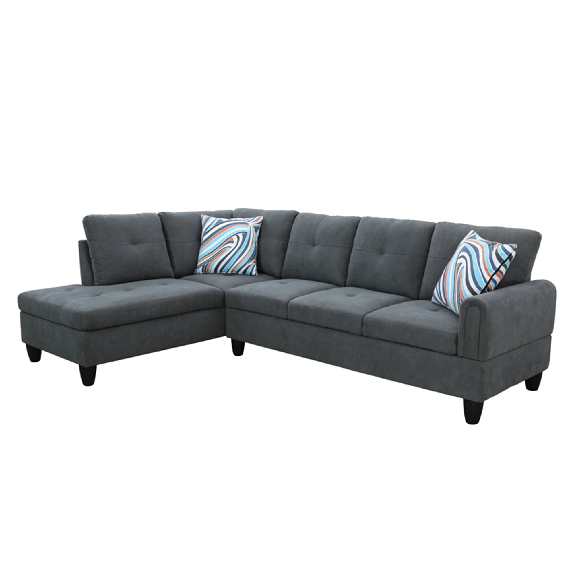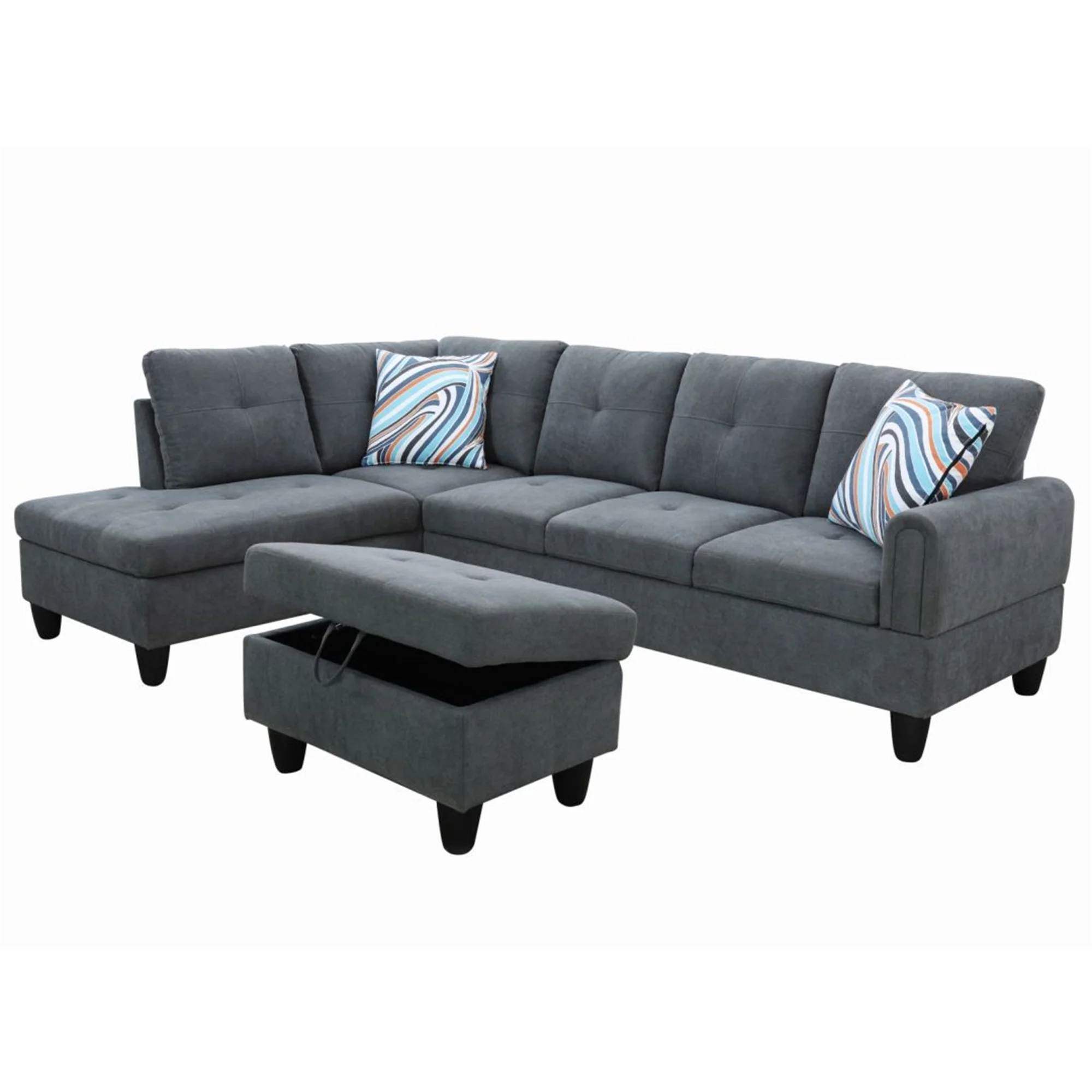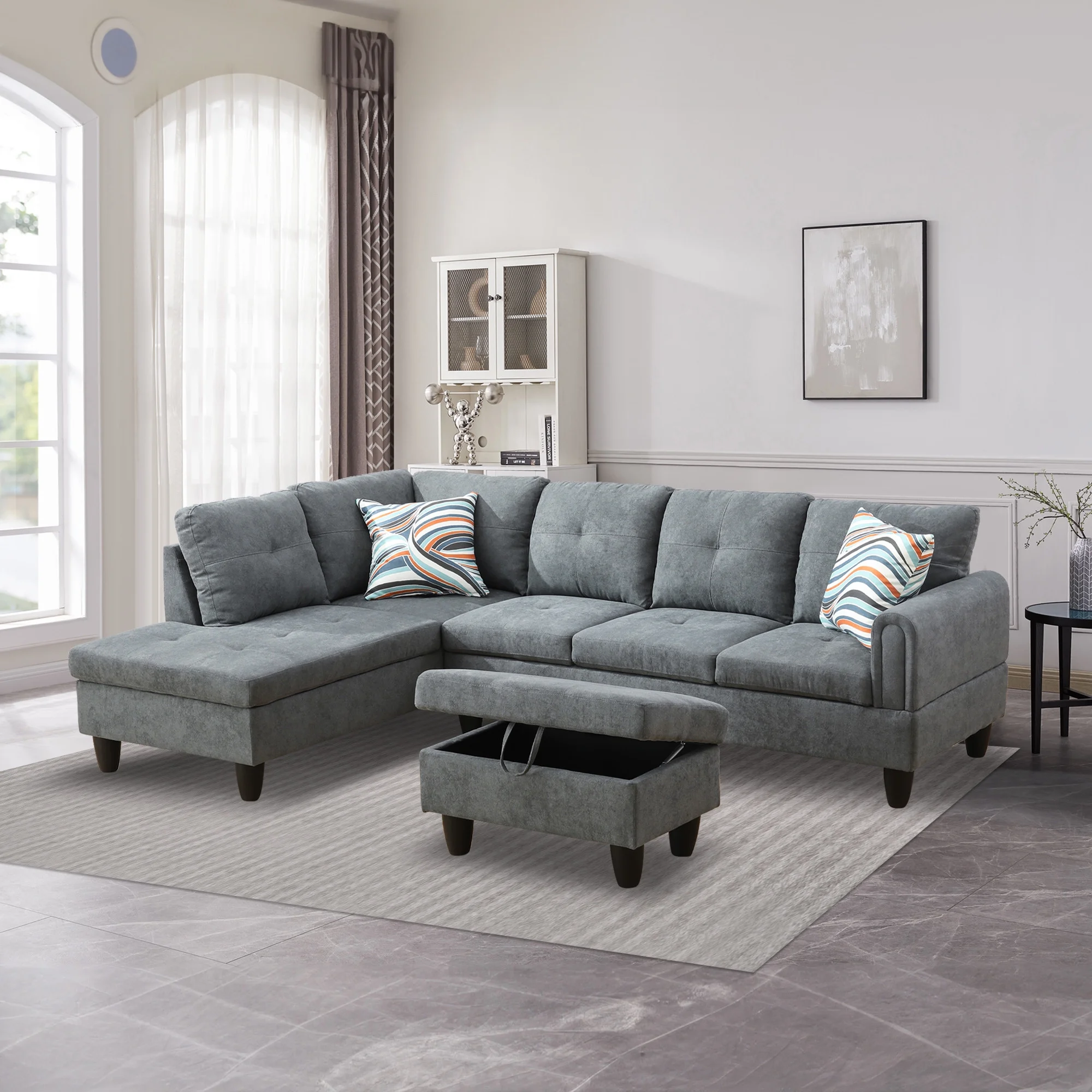 Aukfa Sectional Sofa, 97" Living Room Couch w/ Storage Ottoman, Left Facing Chaise, Flannel, Gray