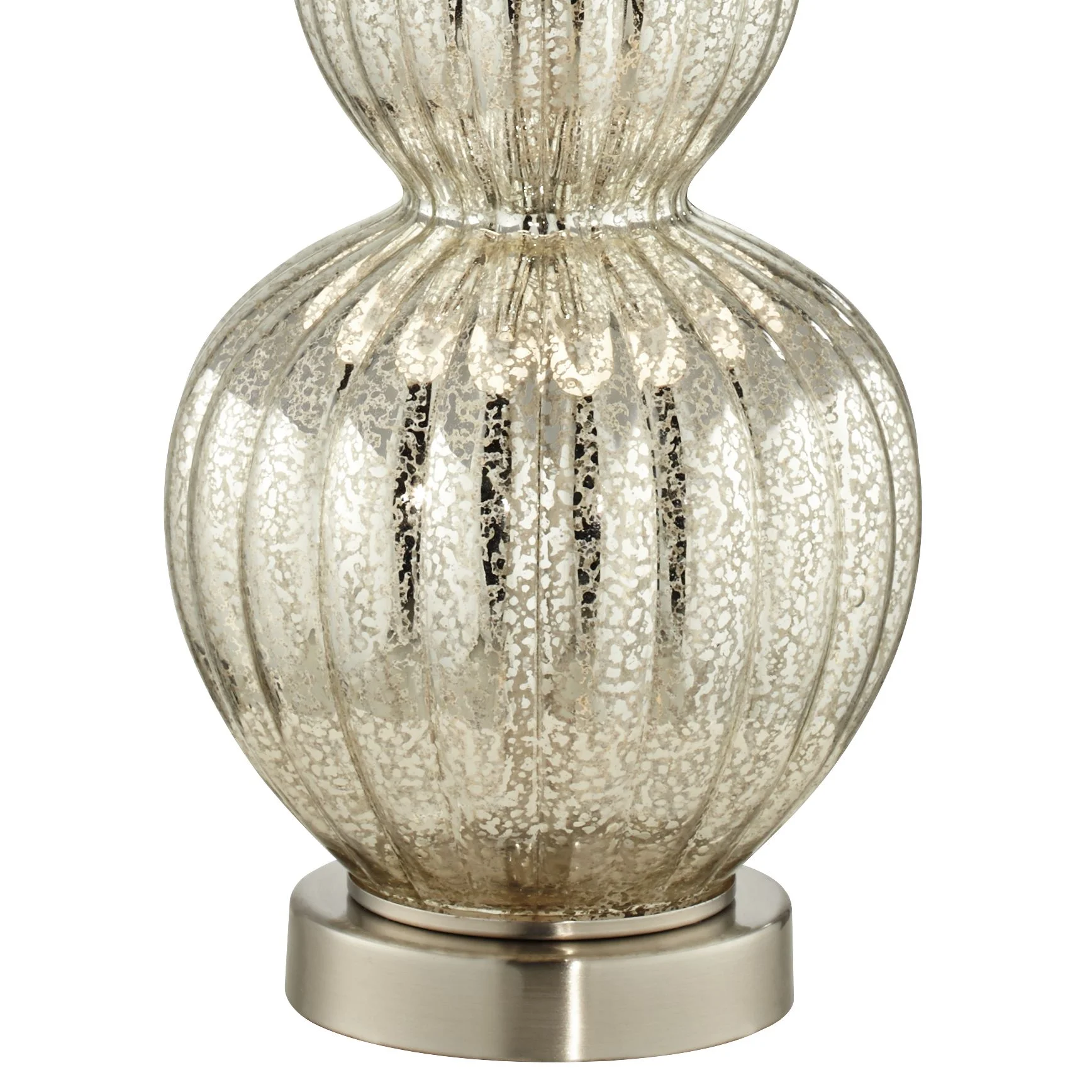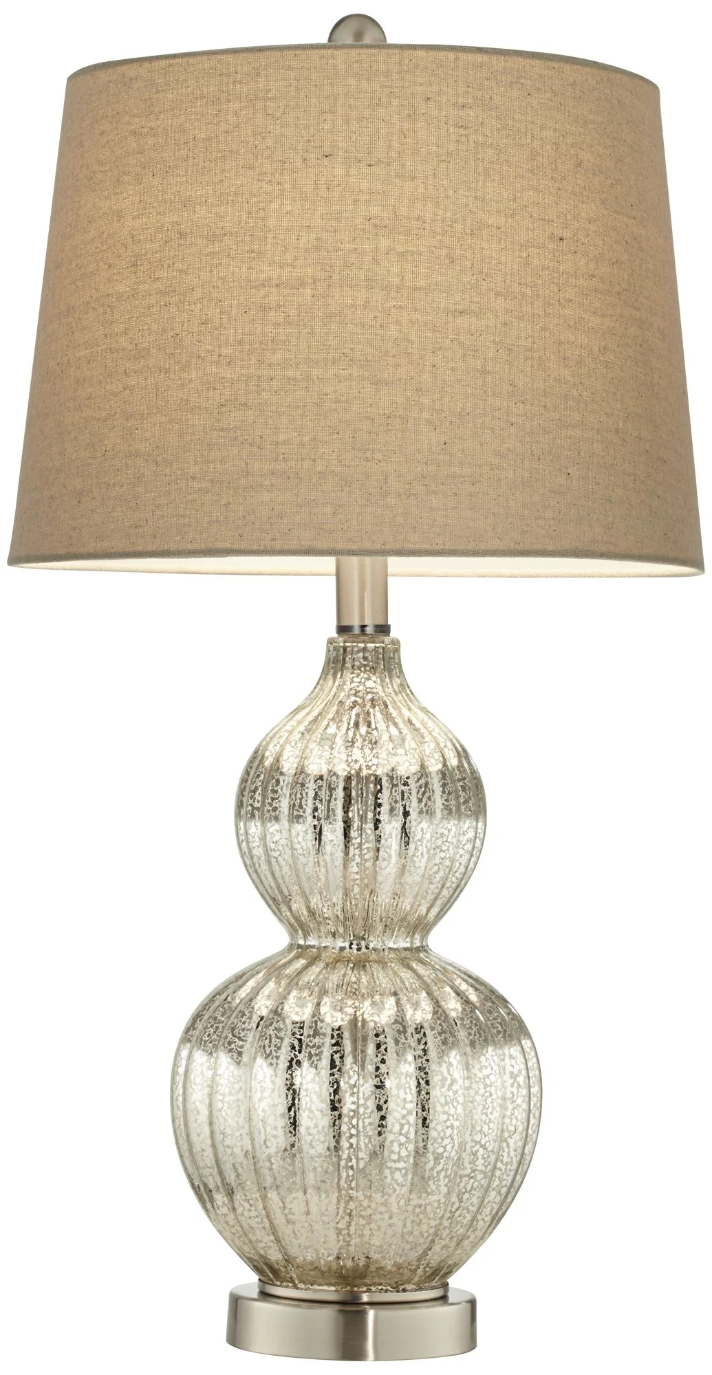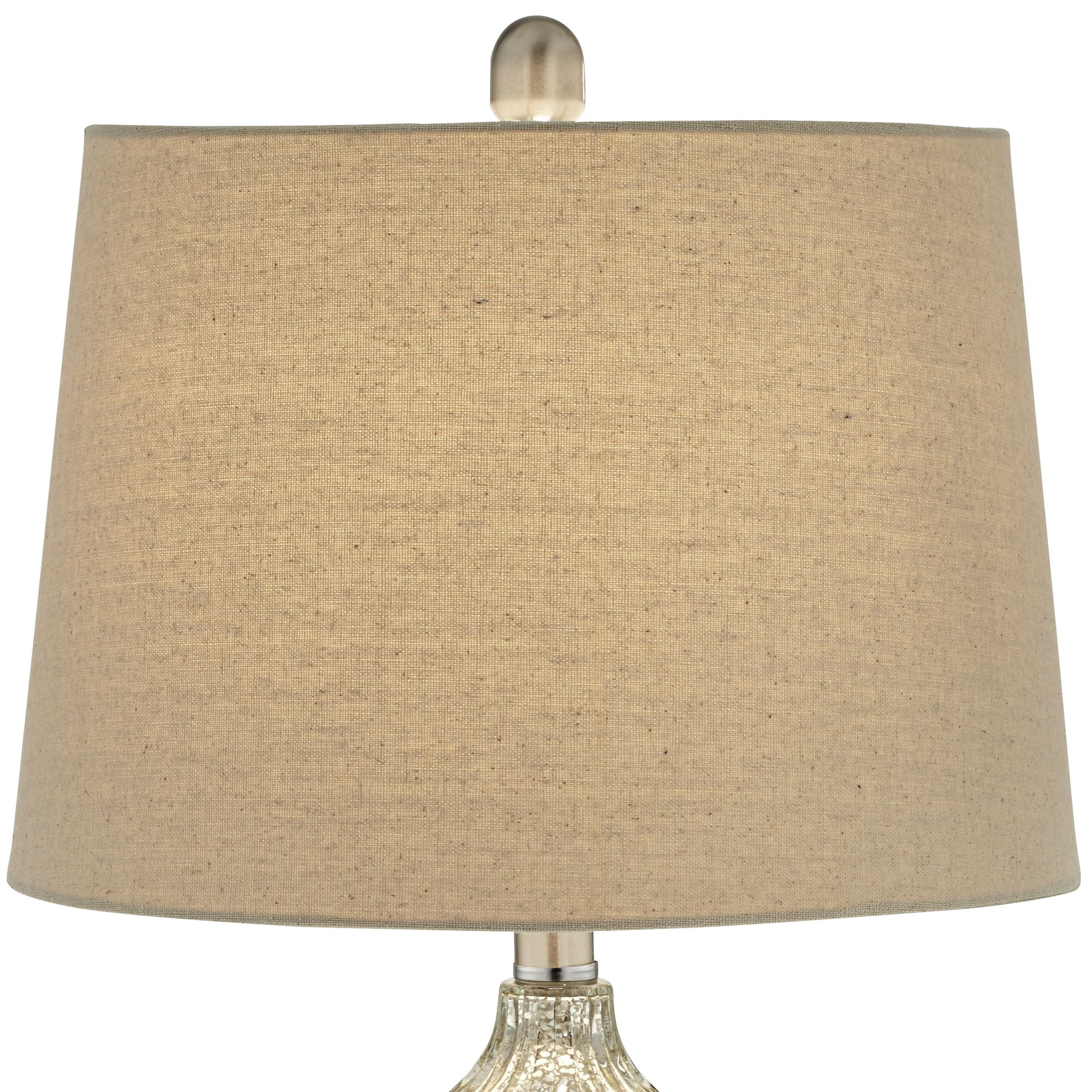 Regency Hill Lili Country Cottage Table Lamps 25" High Set of 2 Fluted Mercury Glass Double Gourd Beige Drum Shade for Bedroom Living Room Bedside