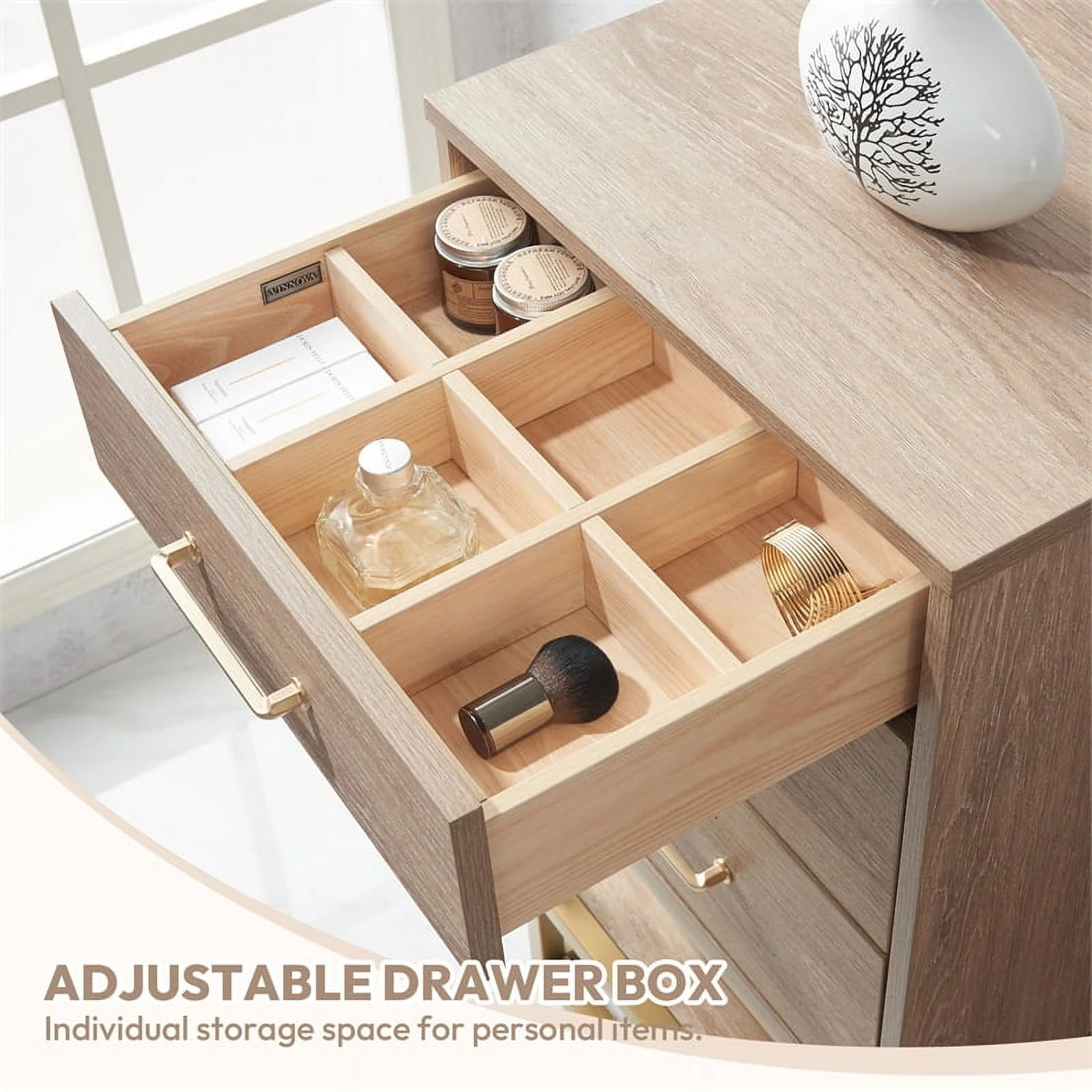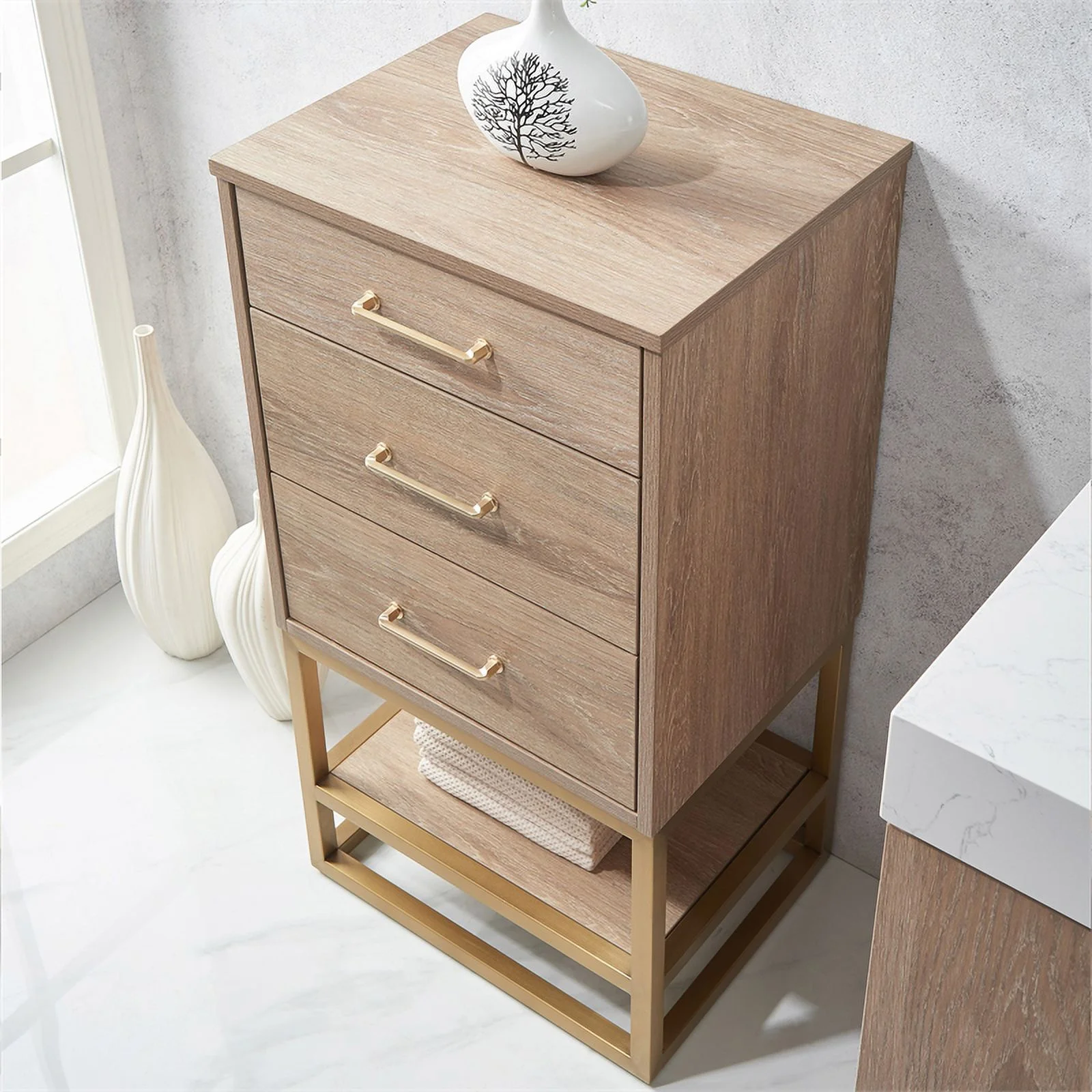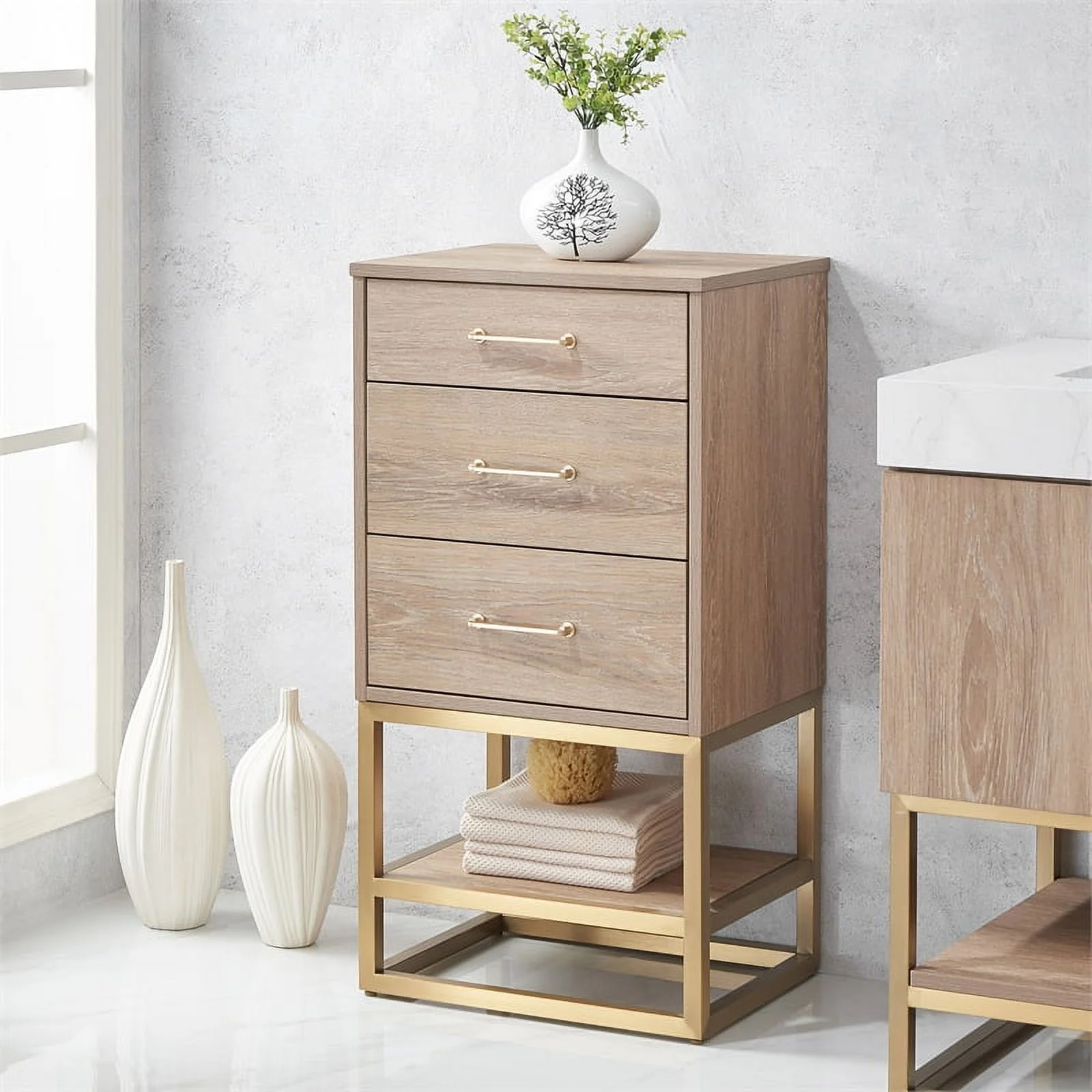 Vinnova Alistair 19.7" Engineered Wood Storage Cabinet in Oak/Brushed Gold