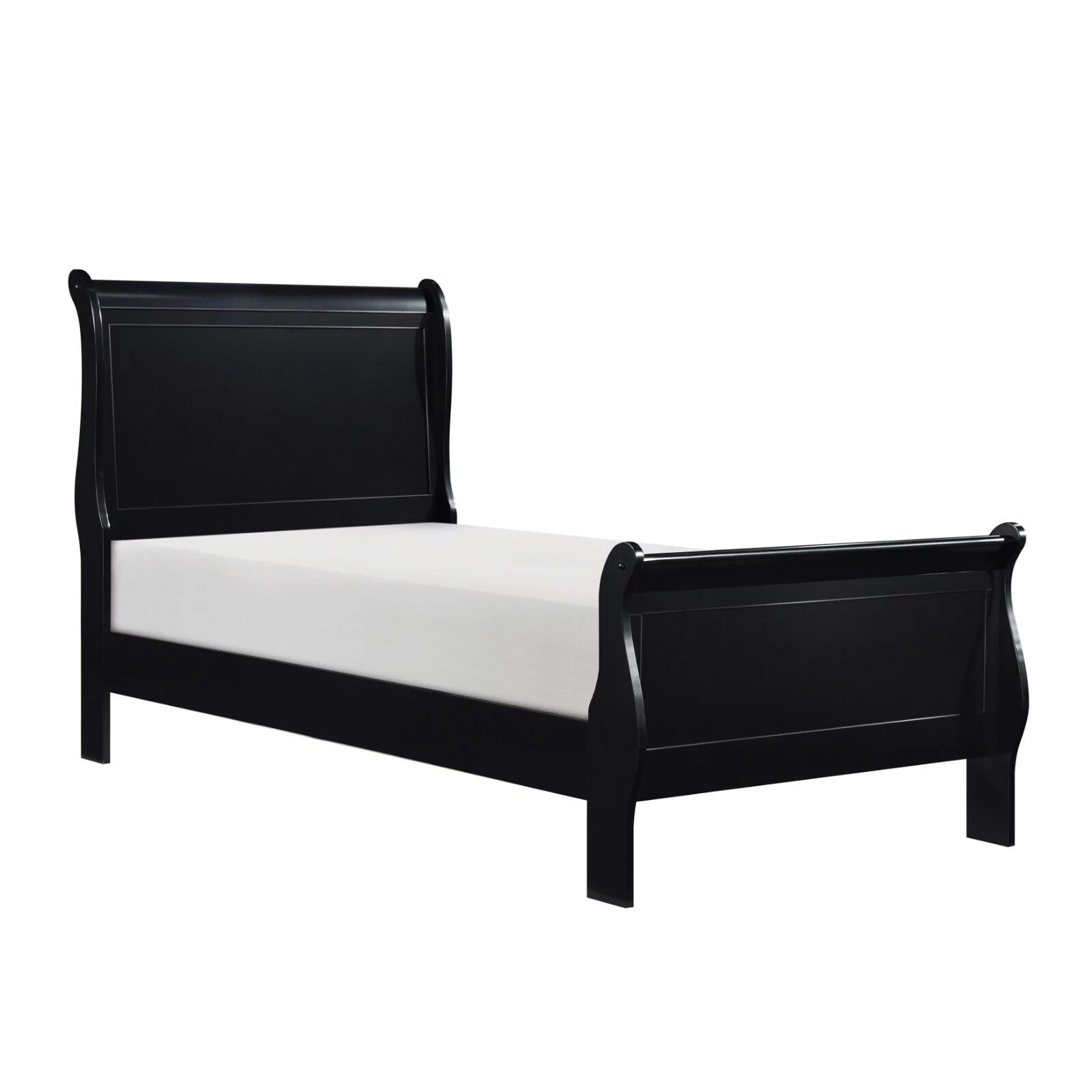 Classic Louis Philippe Style Bedroom 4pc Set Twin Bed Nightstand Dresser Mirror Traditional Black Finish Furniture
