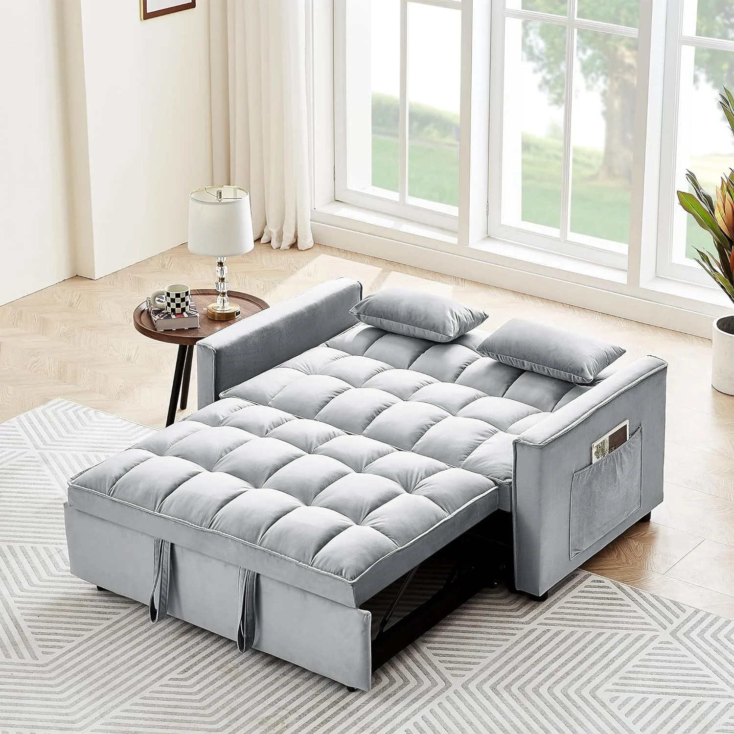 Moder Velve Coverible Sleeper Sofa Bed, 3-I-1 Muli-Fucioal Sleeper Couch Pull-Ou Bed, Lovesea Chaise Louge W/Adjusable Backres For Livig Room, Small Space