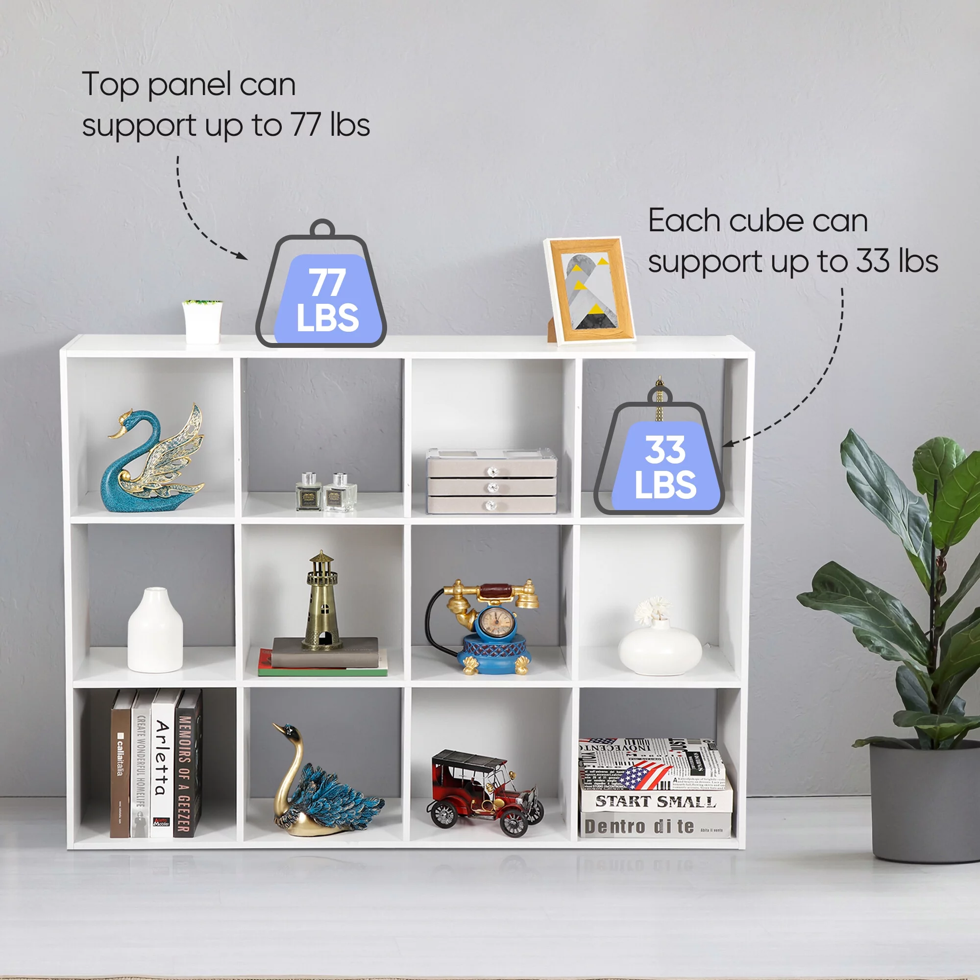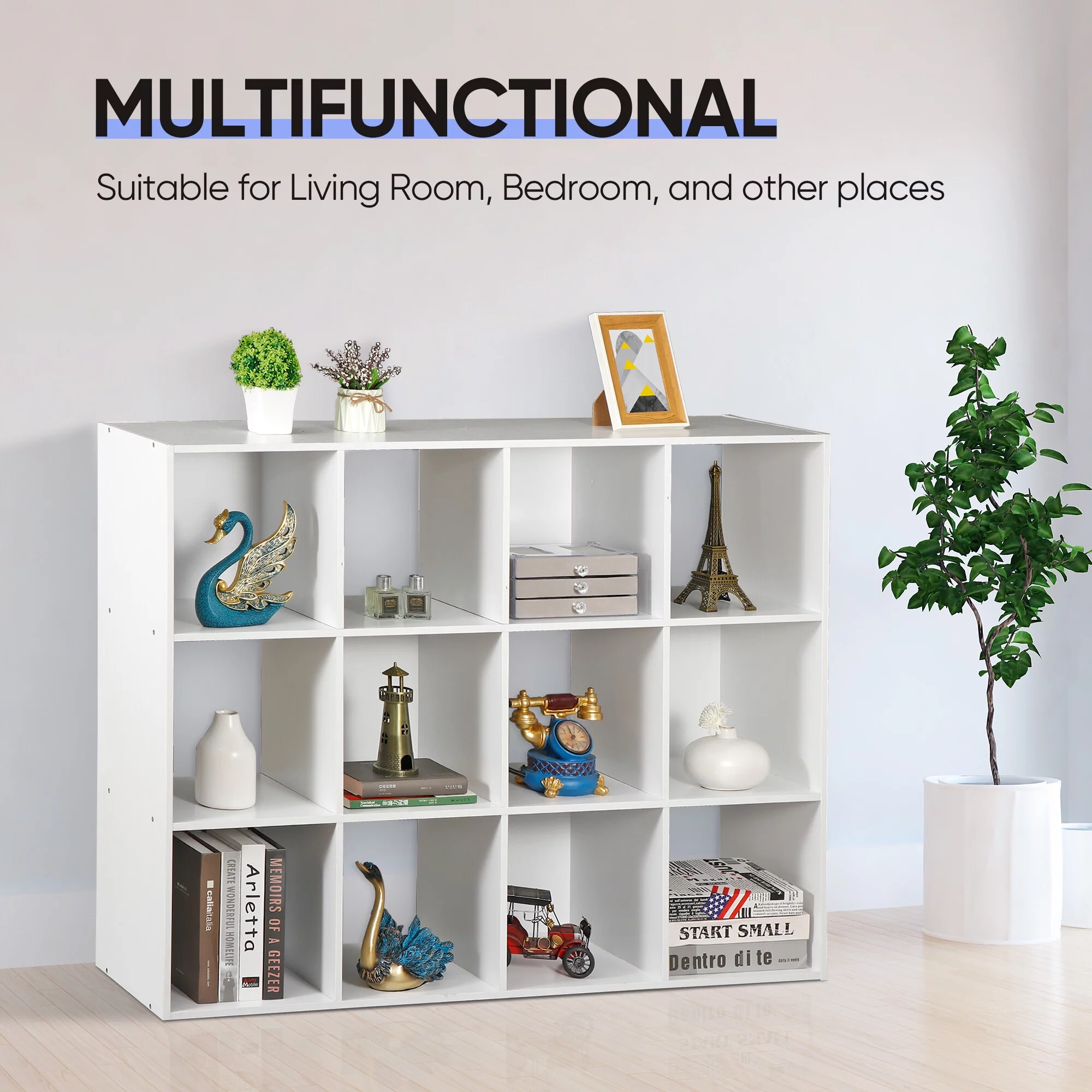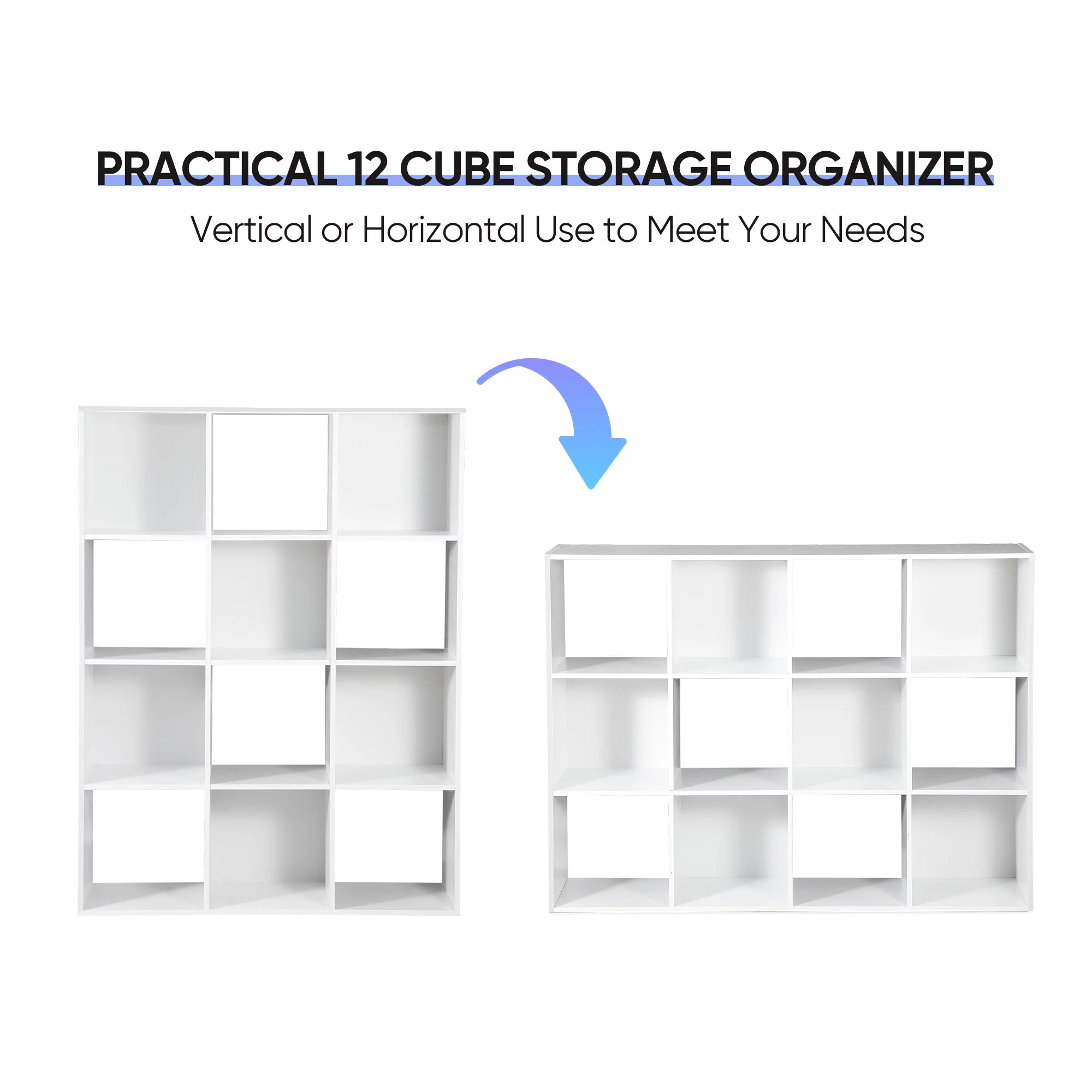 HomGarden 12 Cube Storage Organizer Wood White Bookshelf Cube 3 or 4 Shelves Bookcase for Home Office