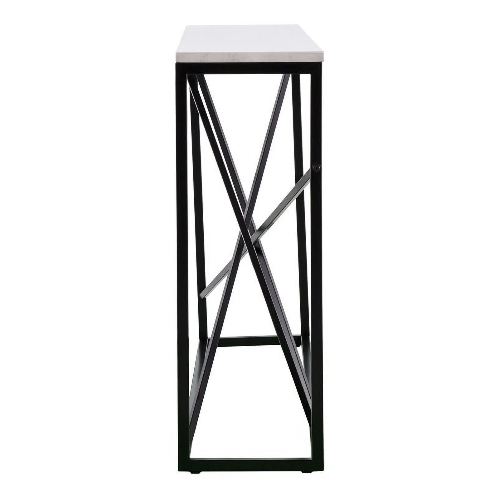 Maklaine Transitional Faux Marble Skinny Console Table in Matte Black