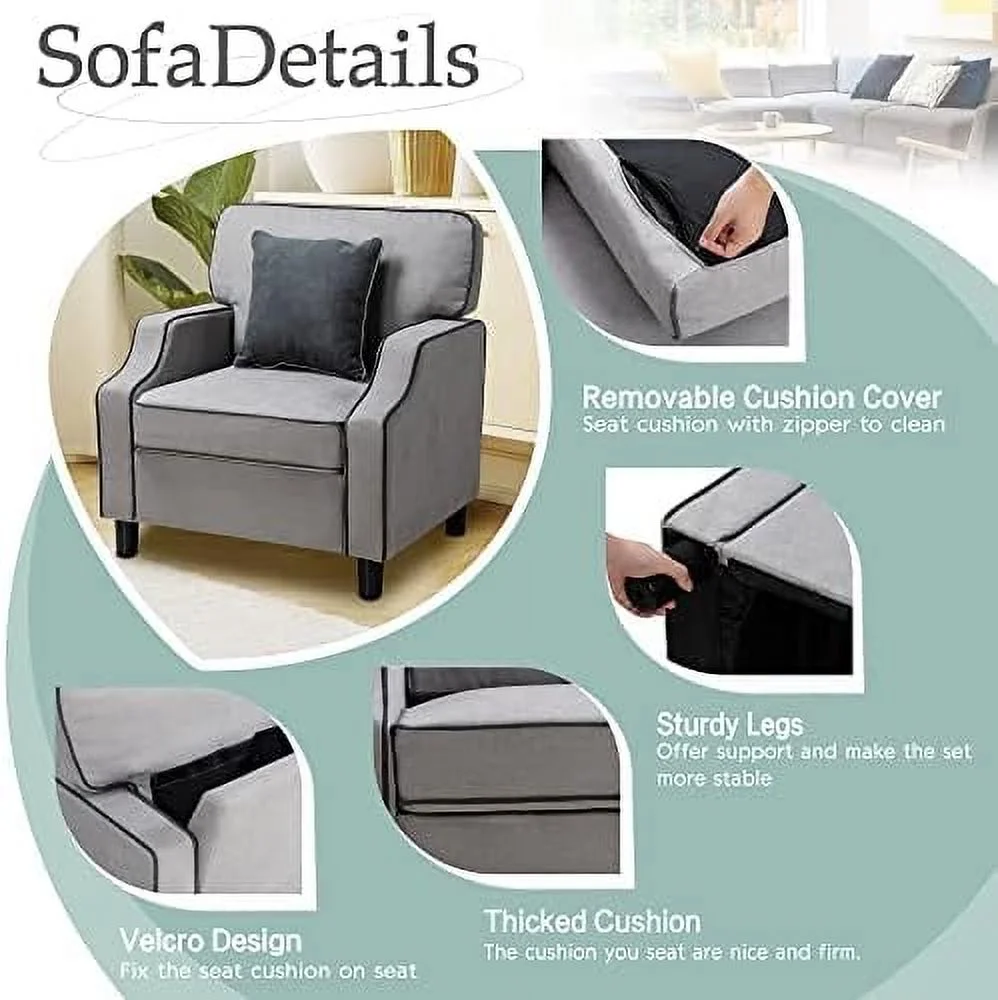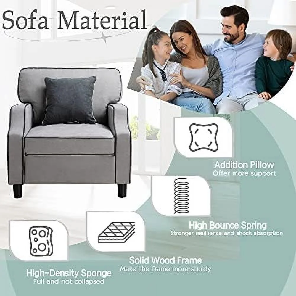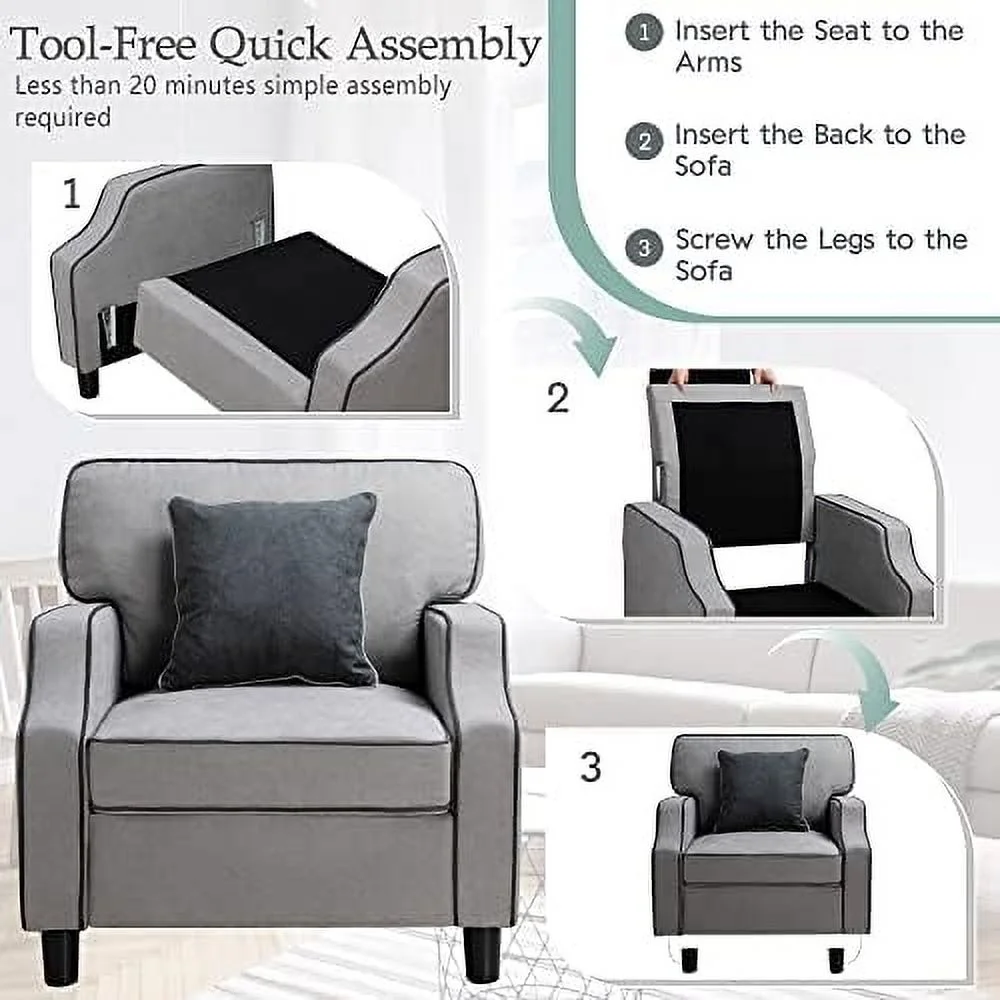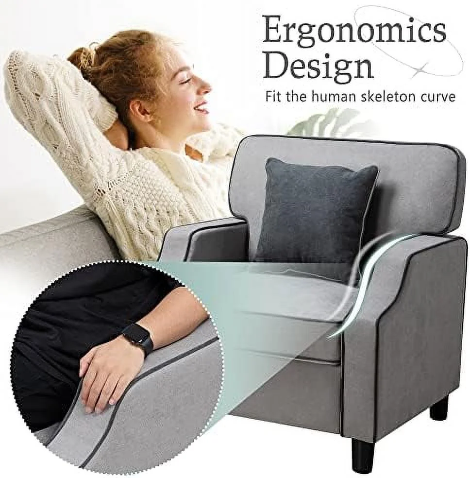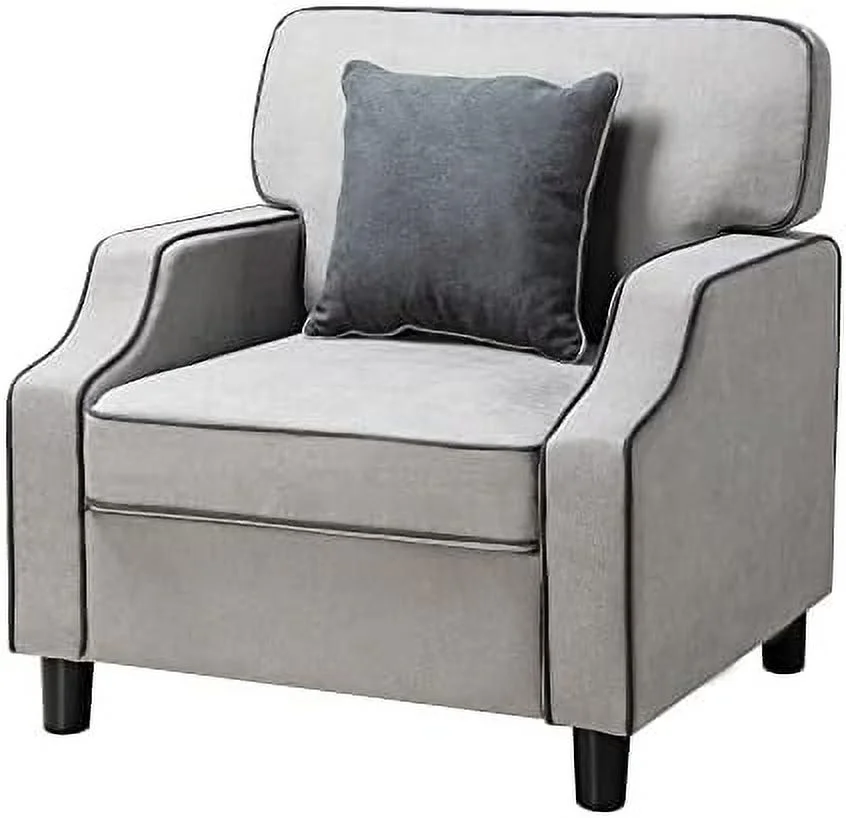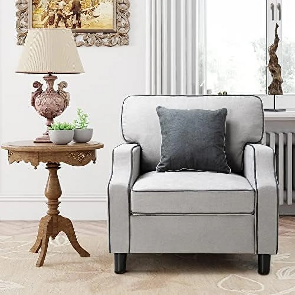 TJUNBOLIFE Accent Chair Modern Comfy Reading Single Sofa Comfy Upholstered Fabric Room Corner Armchair for Living Room Bedroom Office Small Space Light Gray