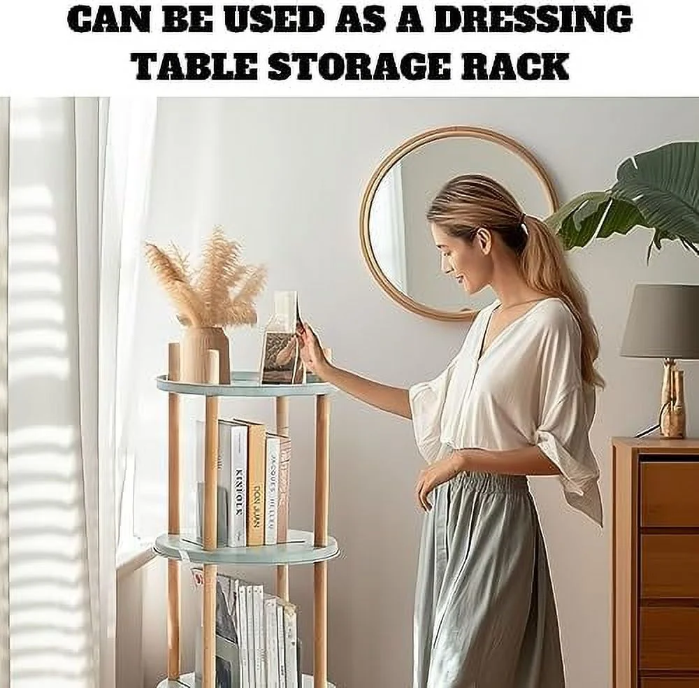 ° Rotating Bookshelf - Modern Classic Style Sturdy - Green Chassis Solid Wood Frame - Multi-Tier Bookshelf (Four Levels)
