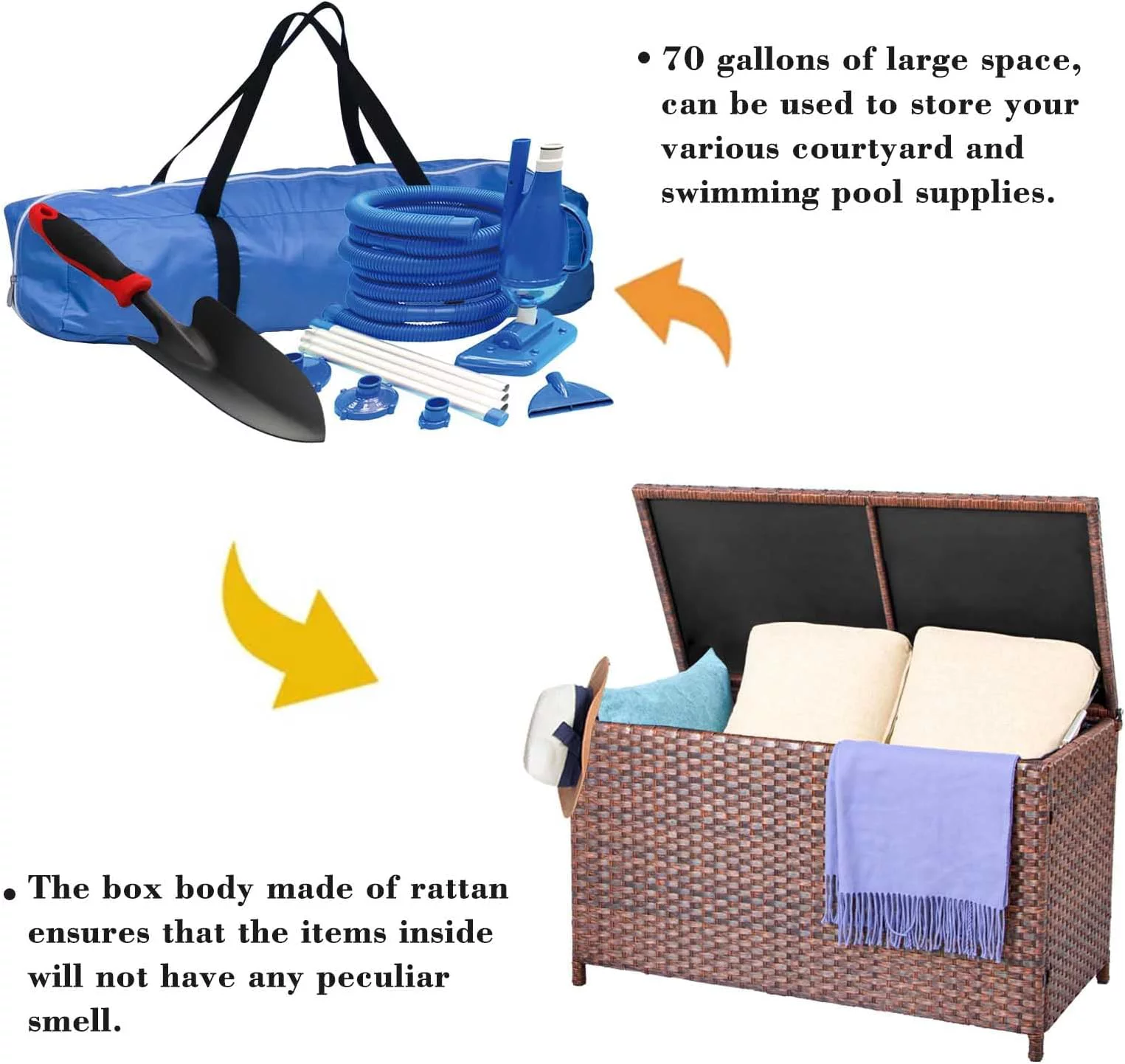 DIMAR GARDEN Outdoor Patio Wicker Rattan Storage Box Table 70 Gallon Mixed Coffee