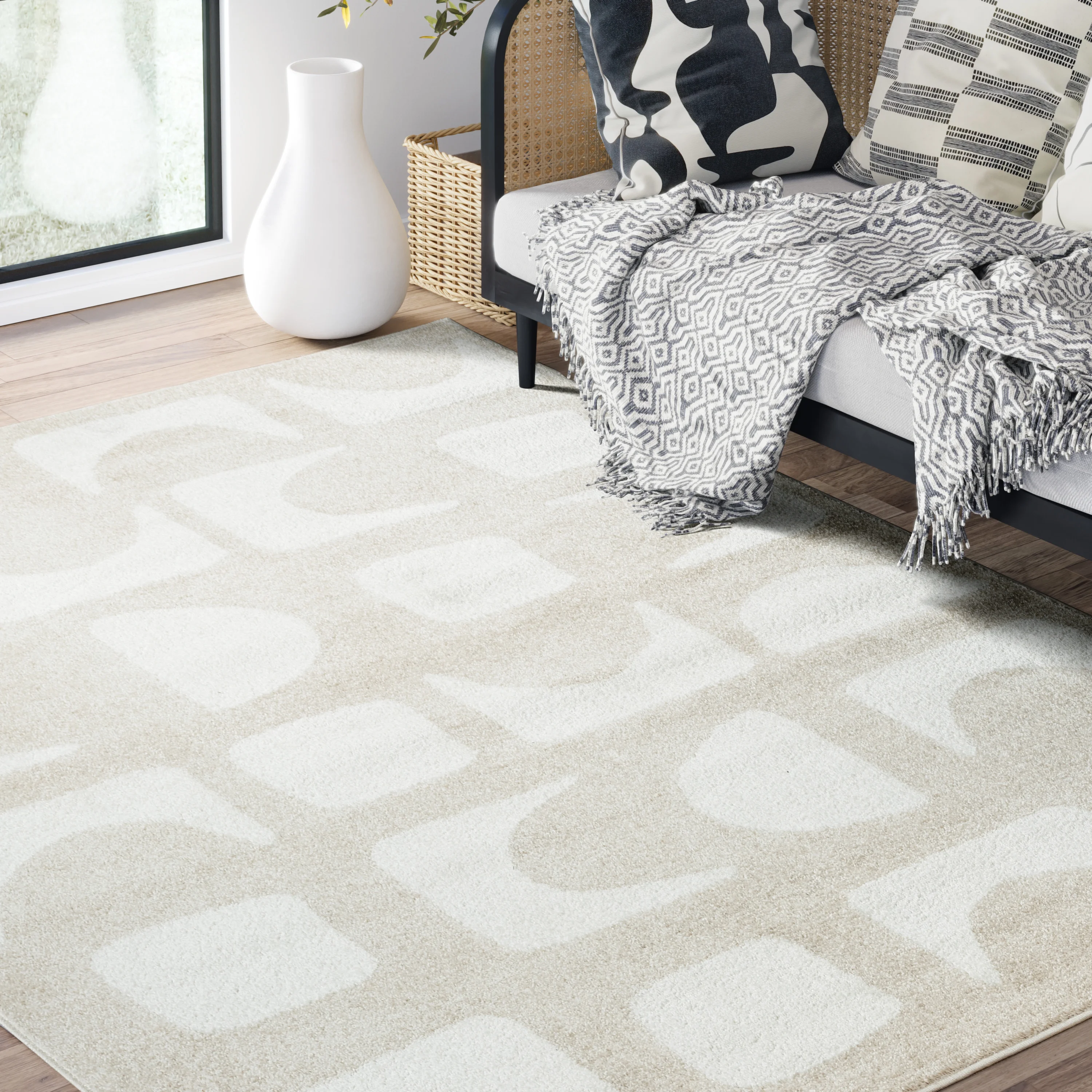 Abani Nuevo Collection Area Rug Mid Century Modern Bedroom Living Room Decor Floor Rug 6 x 9 Beige Cream