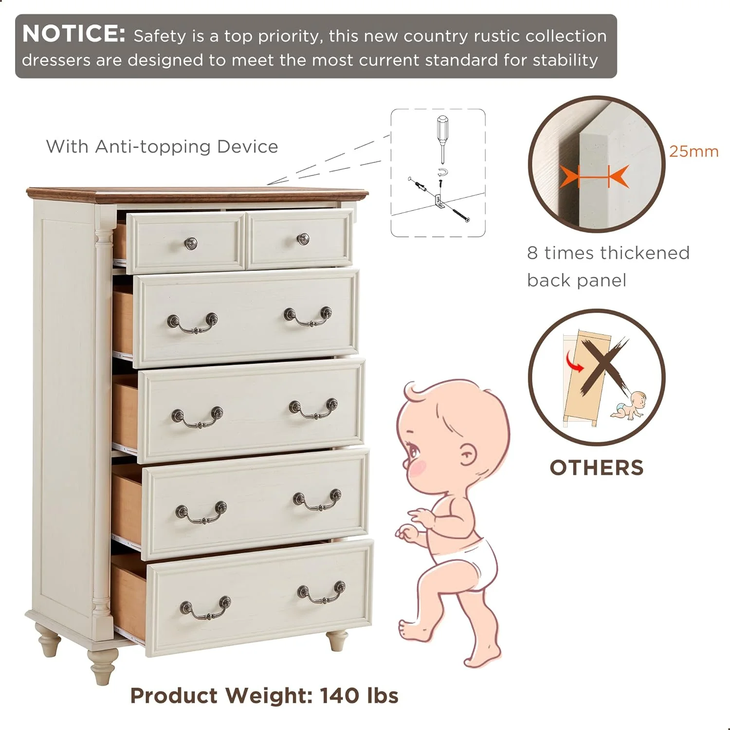 OKD Farmhouse Dresser Chests of 6 Drawers for Bedroom,Dresser Storage Organizer for Living Room, Antique White