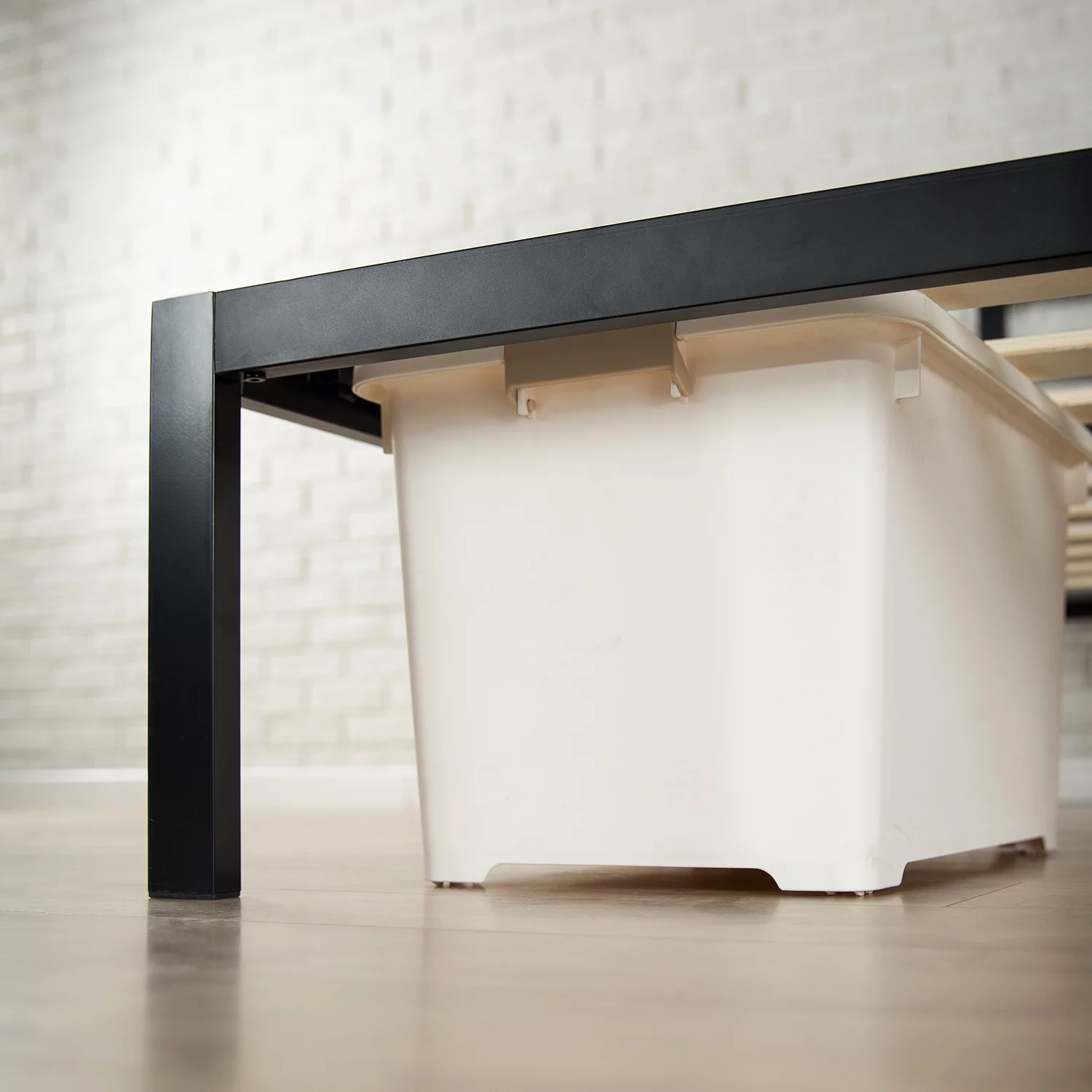 Modern Studio Platform 1500 Metal Bed Frame/Mattress Foundation, no Boxspring needed, Wooden Slat Support, Queen