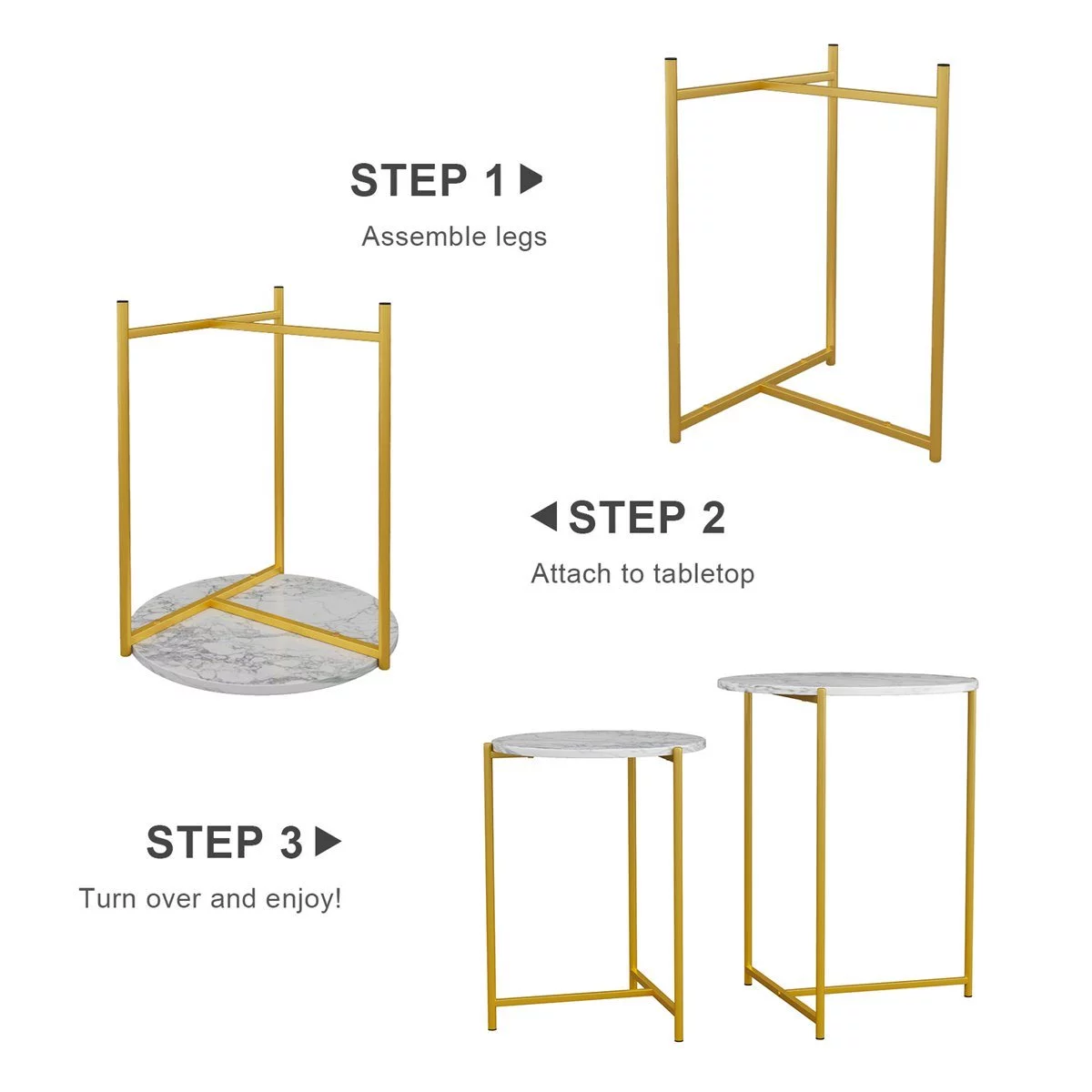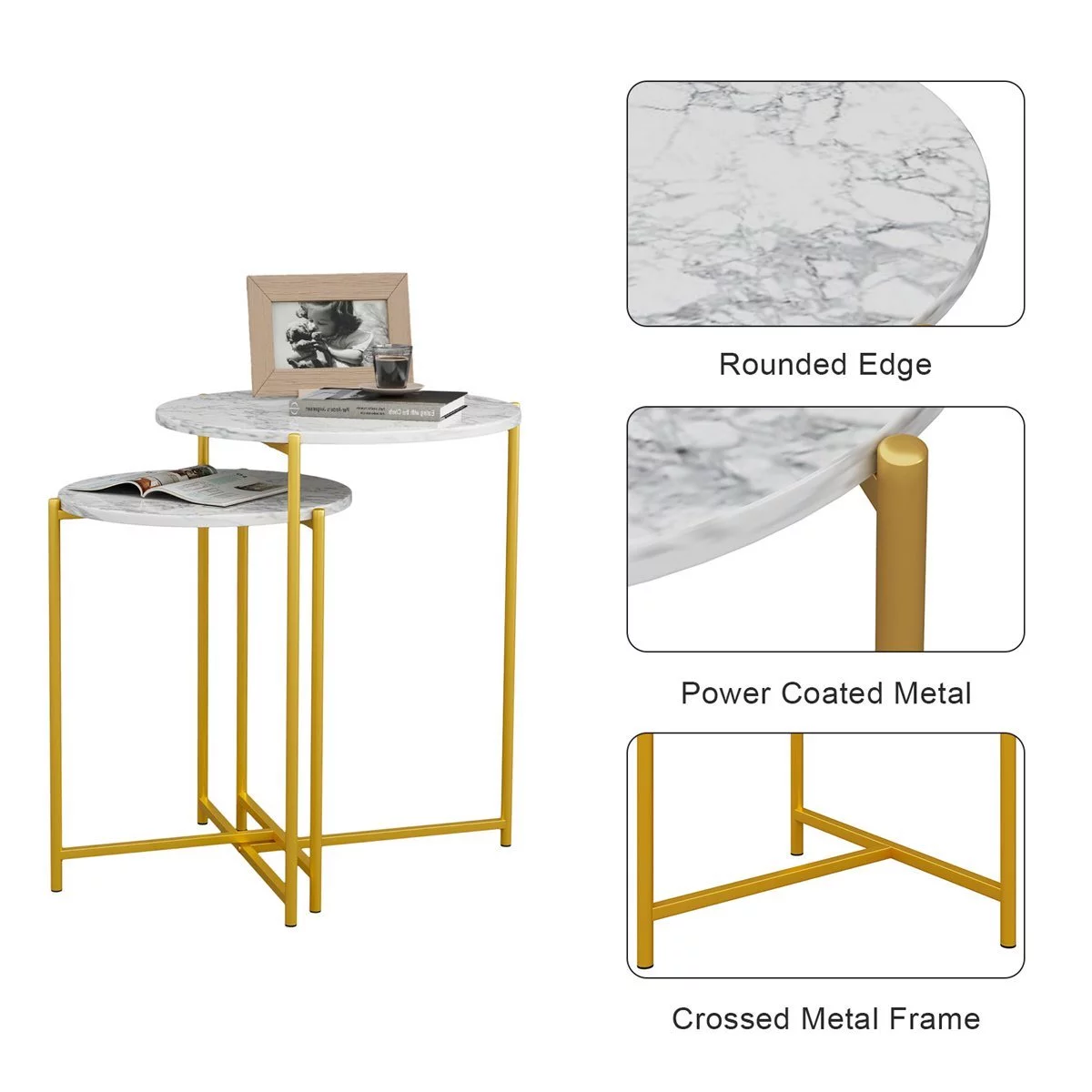 LANTRO JS Modern Faux Marble Top Round Nesting Coffee Table, 2 Piece