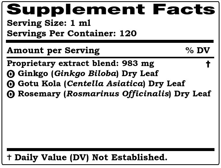 Memory Booster Absolutely Natural, Expertly Extracted by Trusted HerbalTerra Brand Certified Organic Alcohol-Based Liquid Extract. Proudly made in USA. Tincture 4 Fl.Oz