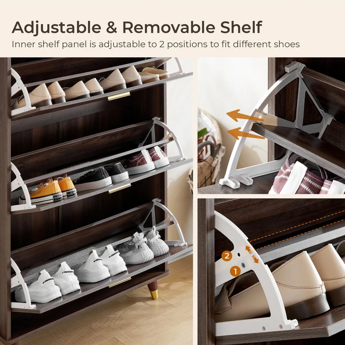 SYTHERS Hall Tree, Entryway Armoire Closet Coat Rack Freestanding with 12 Hooks & 3 Shoe Cabinets, Brown
