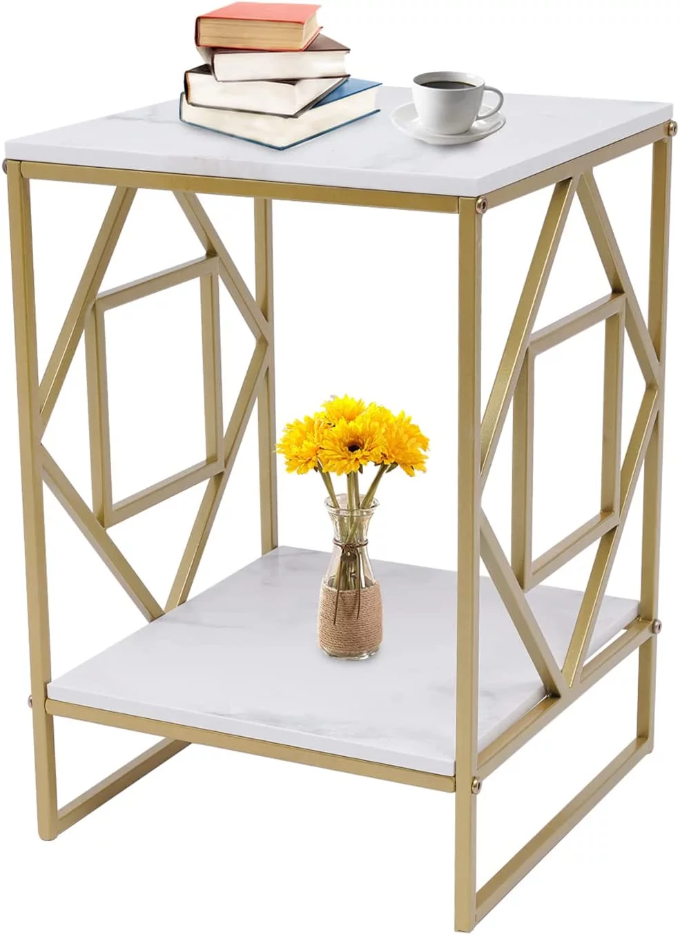 MONIPA 2-Tier Modern Nightstands Versatile Metal Frame Side End Table Storage Shelf for Living Room Bedroom Corner Balcony