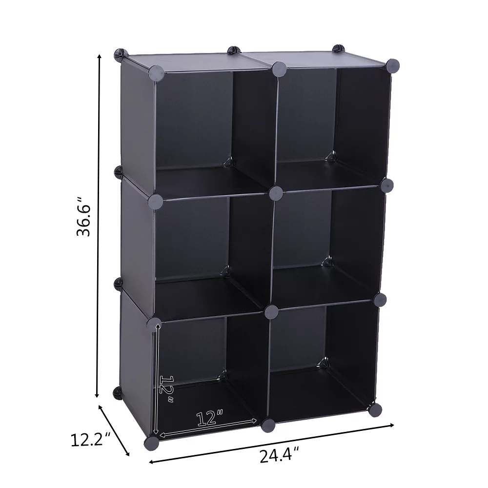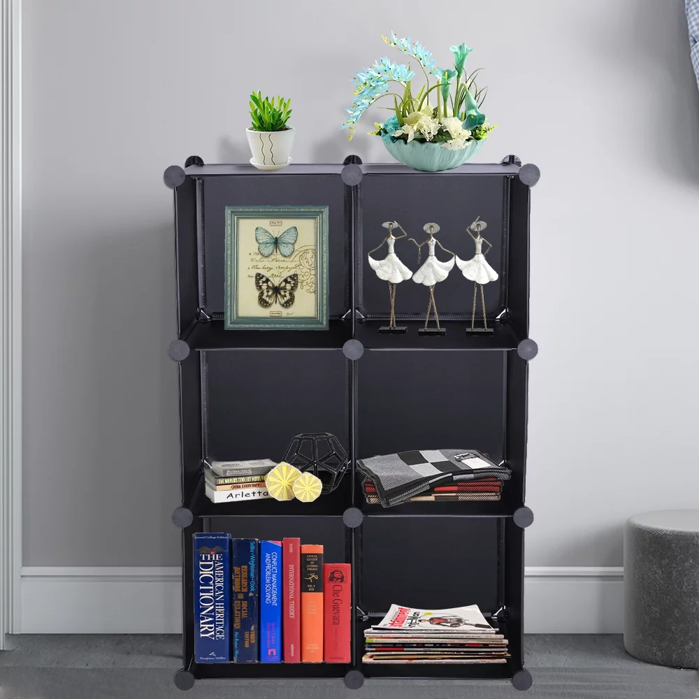 Topcobe Cube Storage Organizer, Book Shelf 6 Cube Storage Unit for Clothes, Plastic Cube Storage Shelves for Bedroom Living Room Office, Black