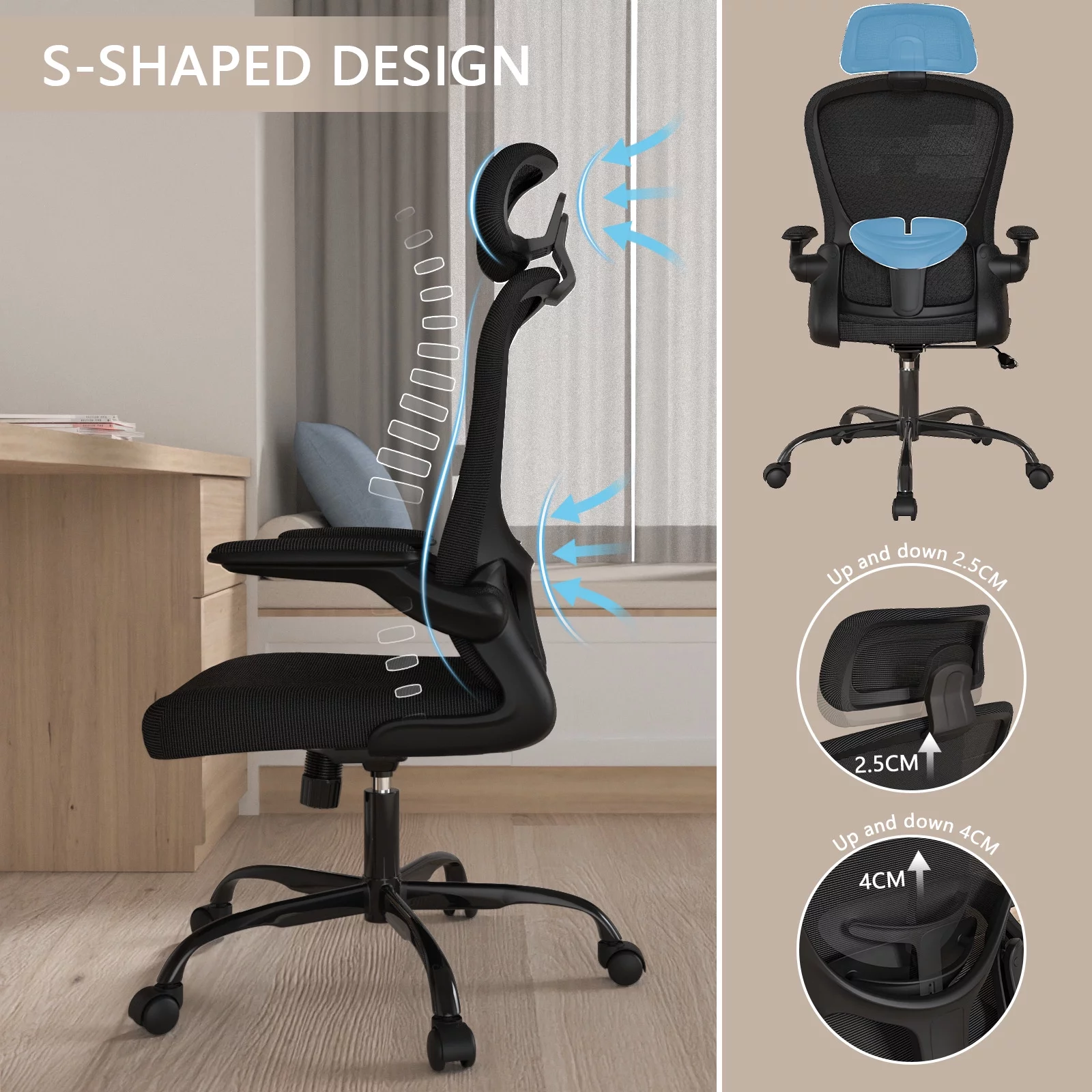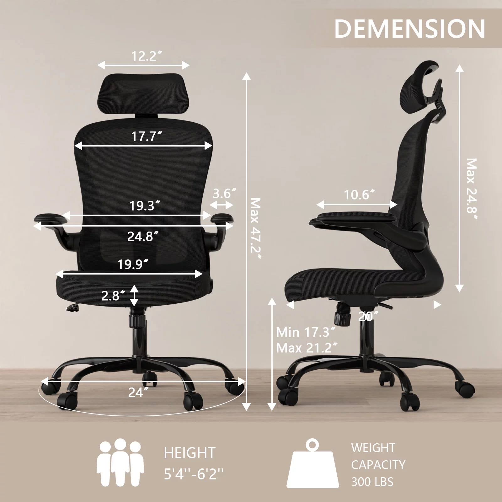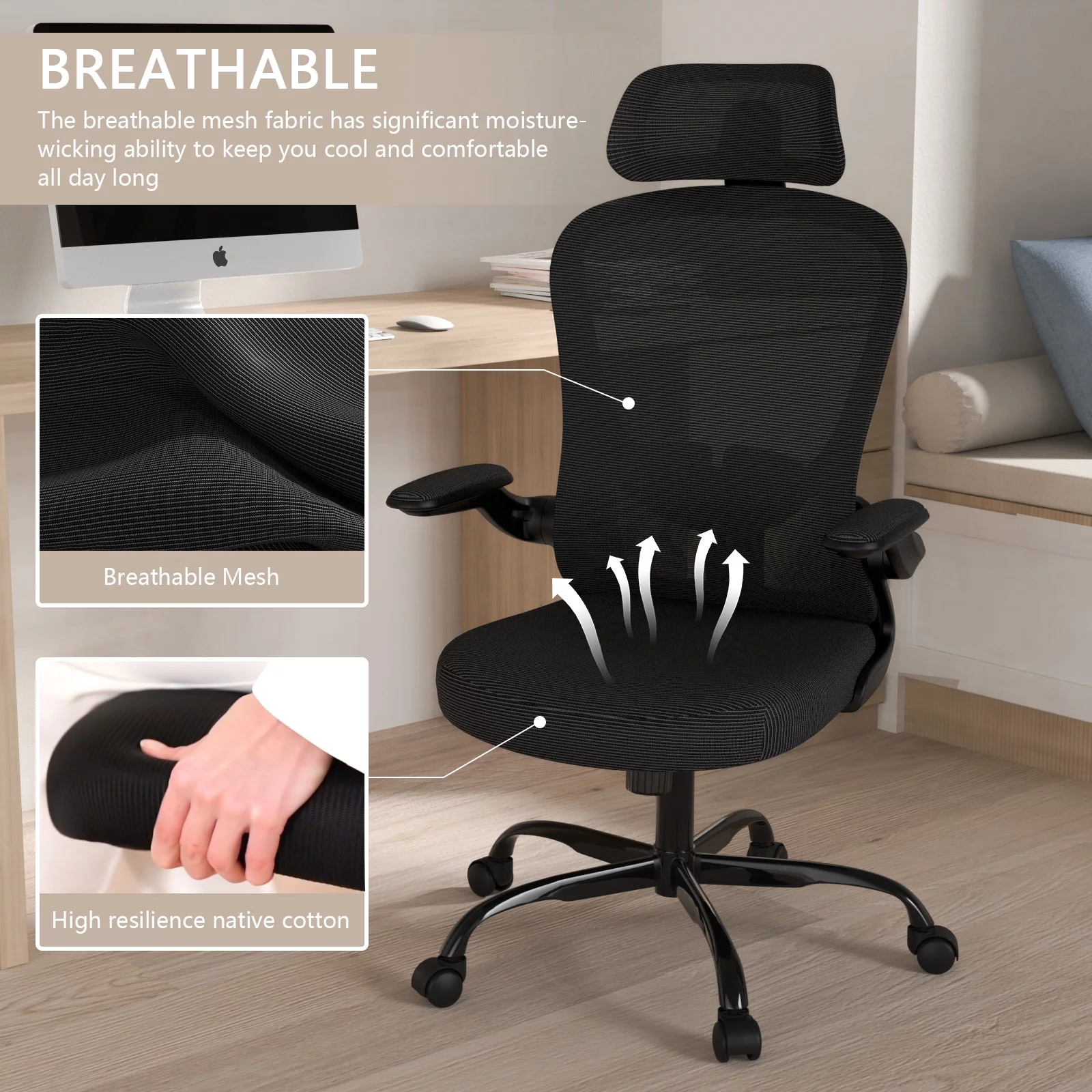 Lioncin Office Chair, High Back Ergonomic Desk Chair, Swivel Task Chair with Flip-up Armrests, Executive Chair for Home Office,Black