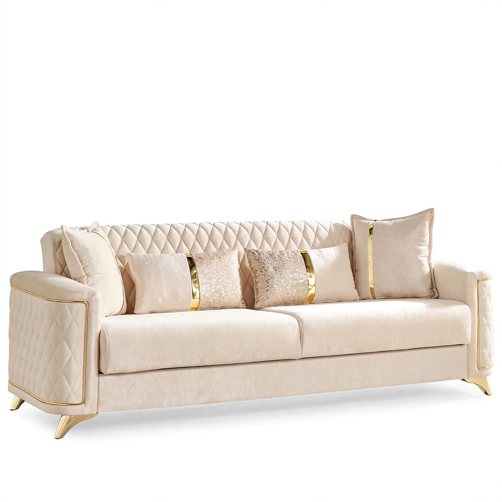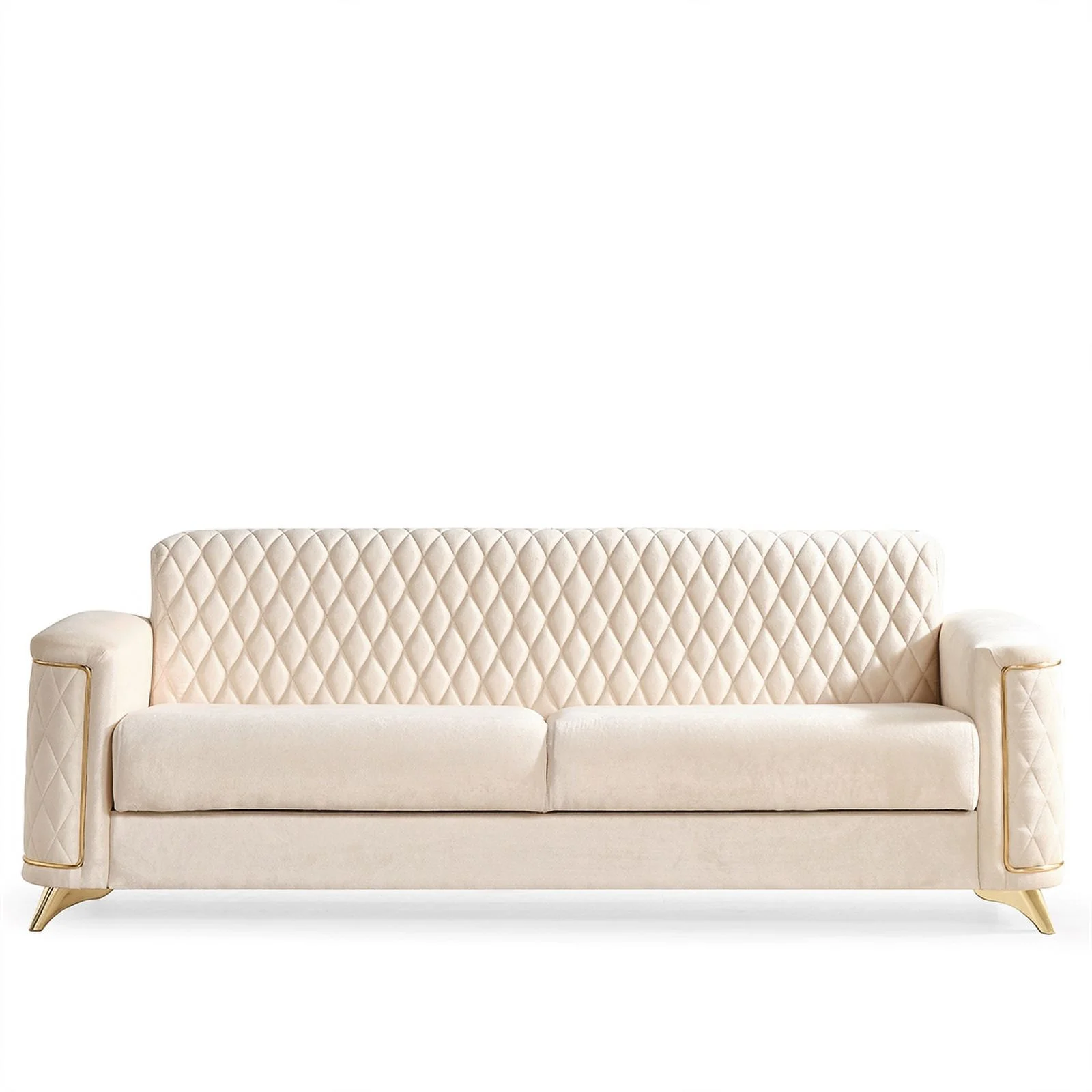 Luna Sofa Finished in Velvet Fabric made with wood in Ivory Color