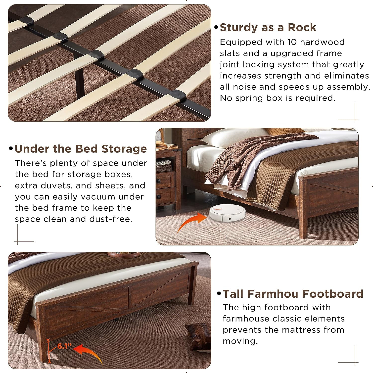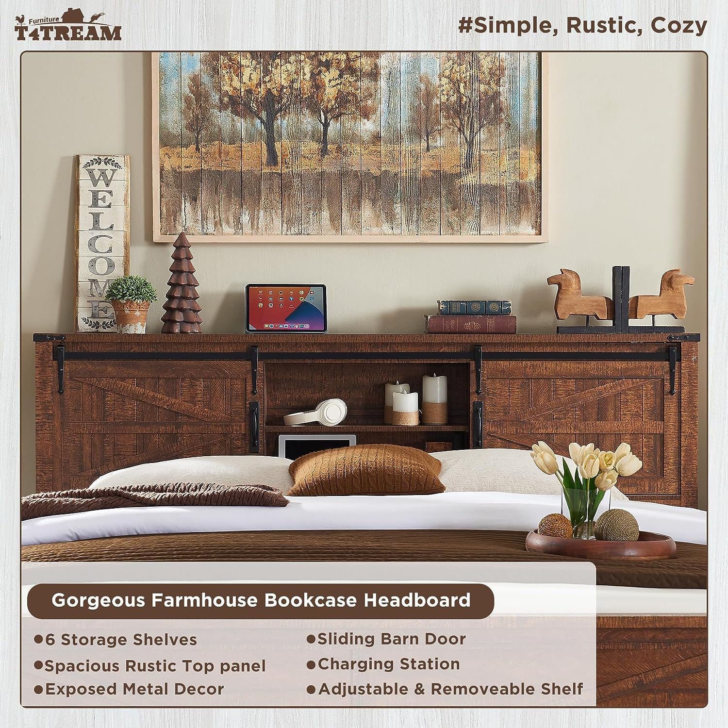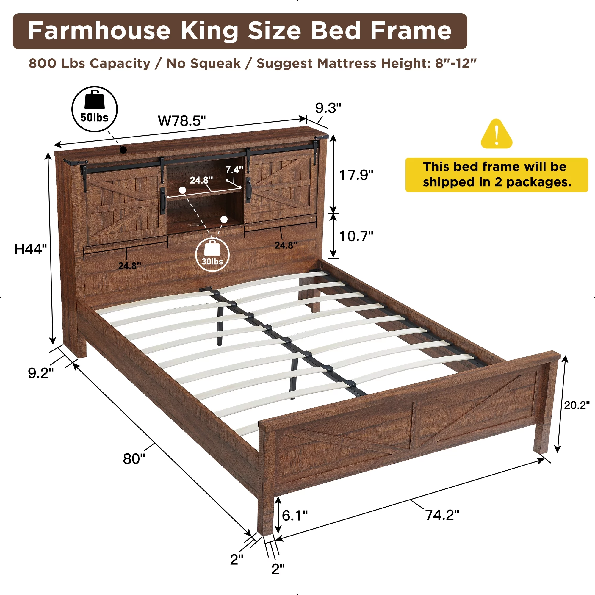 OKD Modern Farmhouse King Platform Bed Frame with Storage Headboard and Charging Station, Reclaimed Barnwood Finish