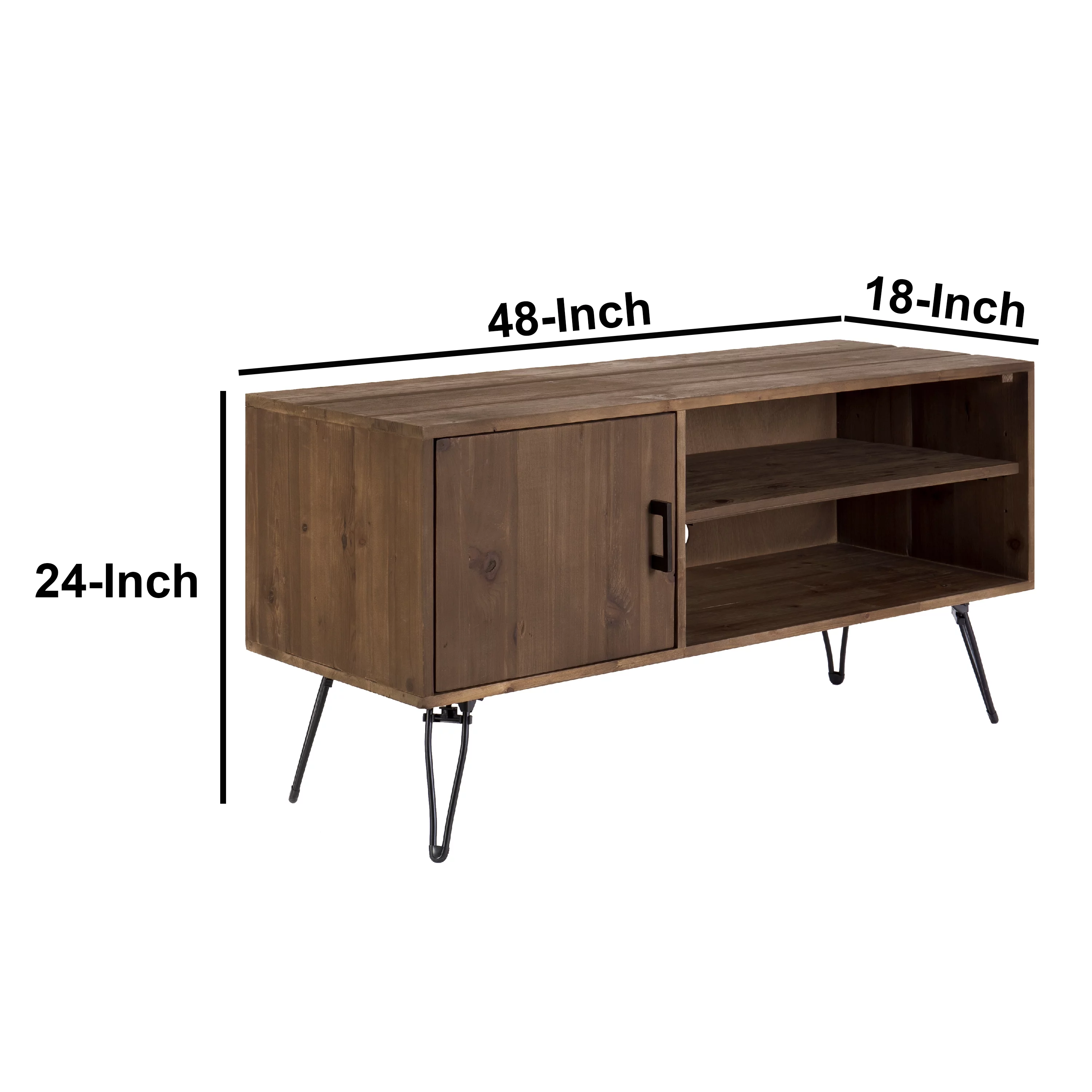 CoSoTower 48 Inch Reclaim Wood Rectangle Farmhouse Media Console TV Stand, 1 Door, Iron Legs, Rustic Brown