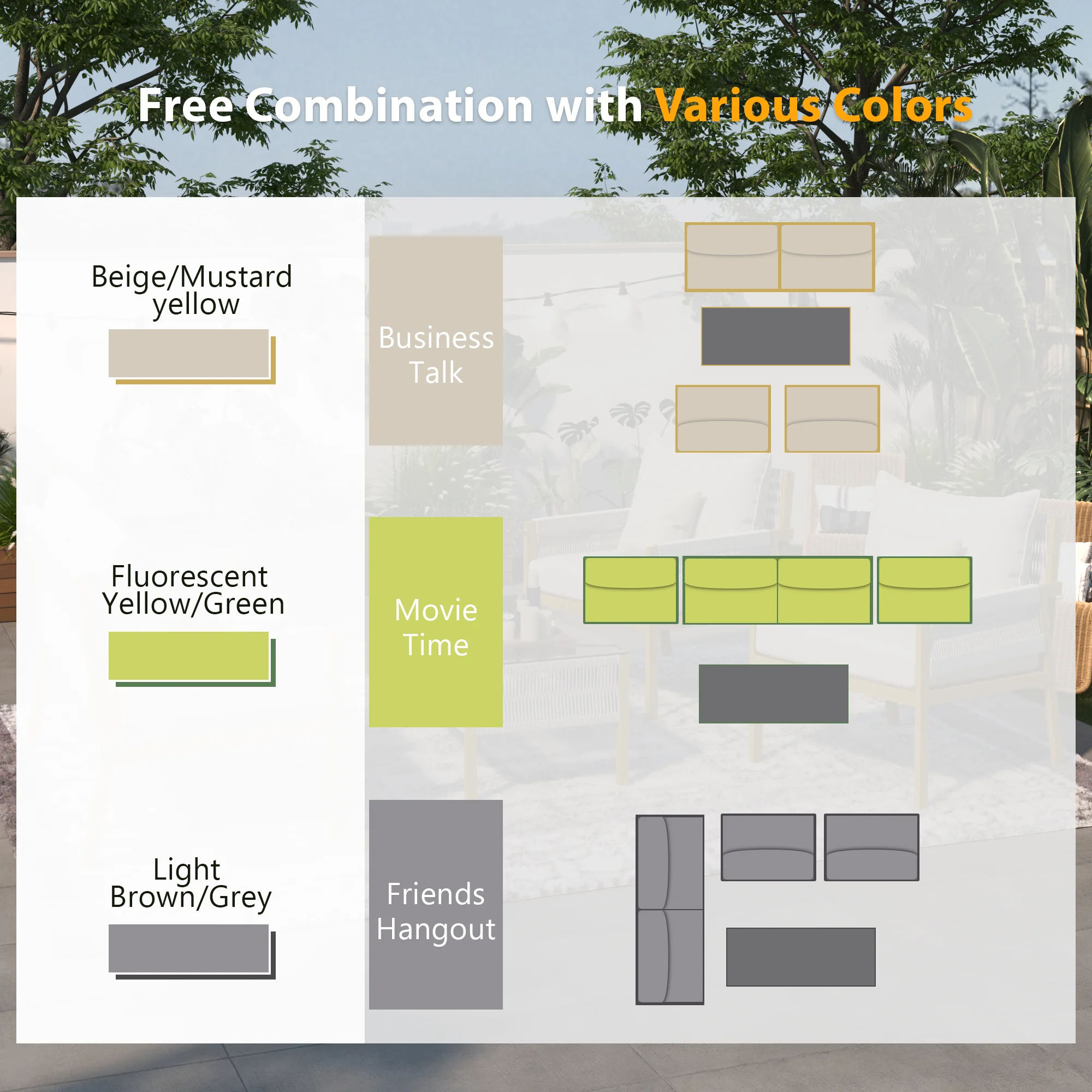 Glavbiku 4-Piece Patio Furniture Set,Outdoor Furniture with Tempered Glass Table for Backyard,Yellow