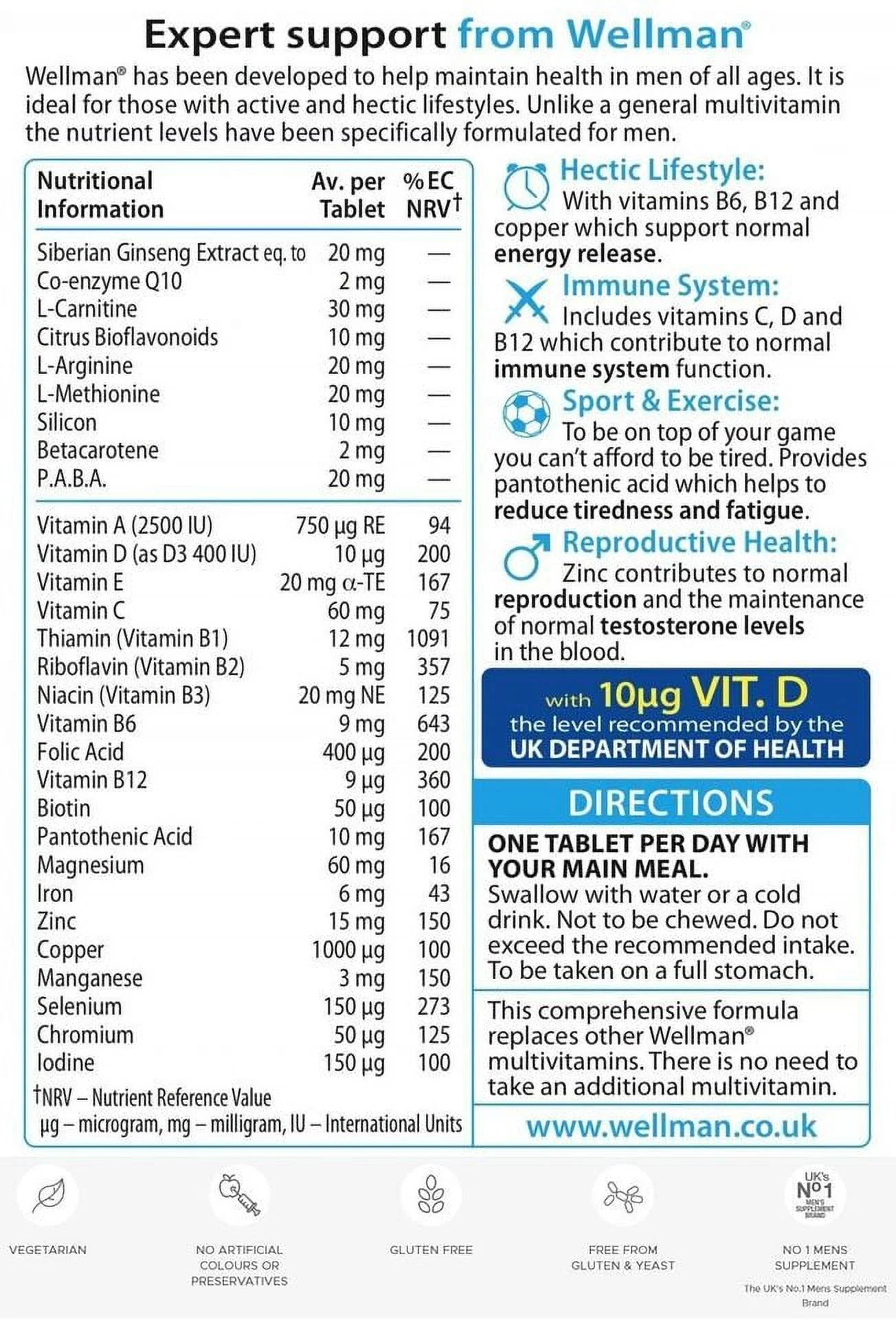 Wellman Men's Original - 30 Tablets - Free Shipping - British Version NOT American Variety - Imported by Sentogo