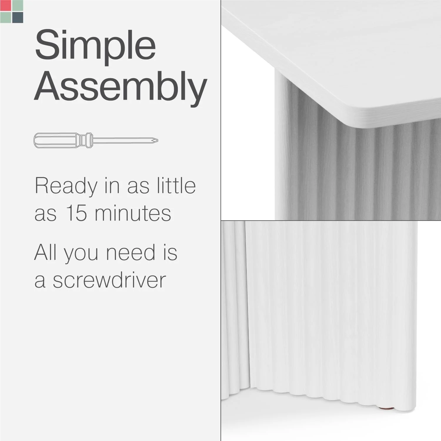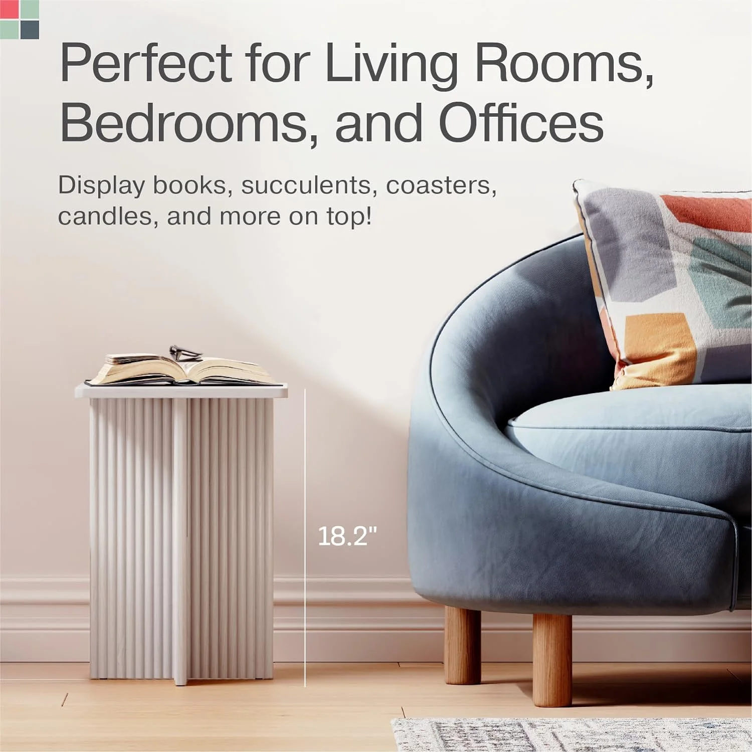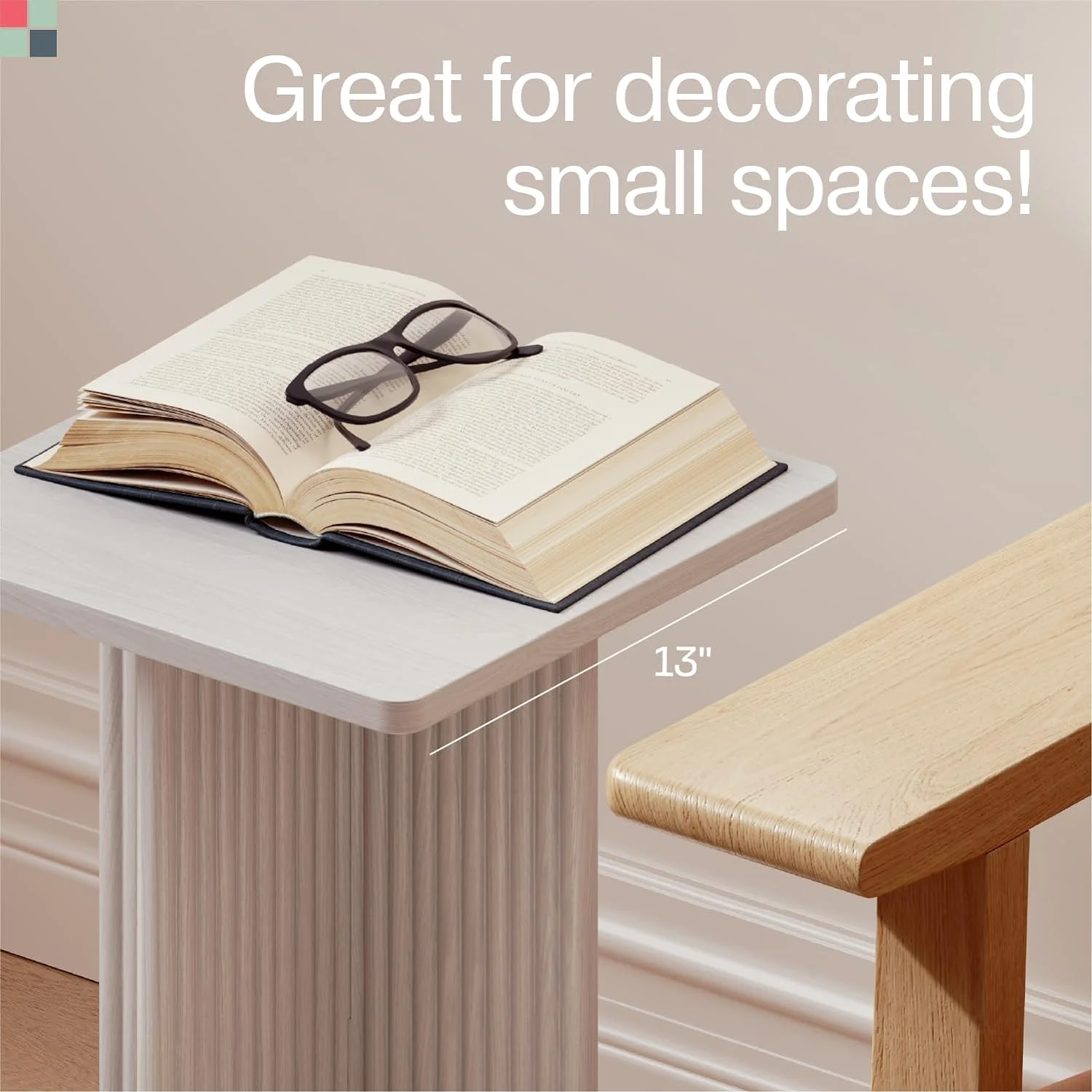 Square Fluted Accent Side Table - Small Drink Table - Living Room Furniture - Modern Home and Bedroom Decor - Pedestal Side Table with a Solid Oak Base (Medium Oak)