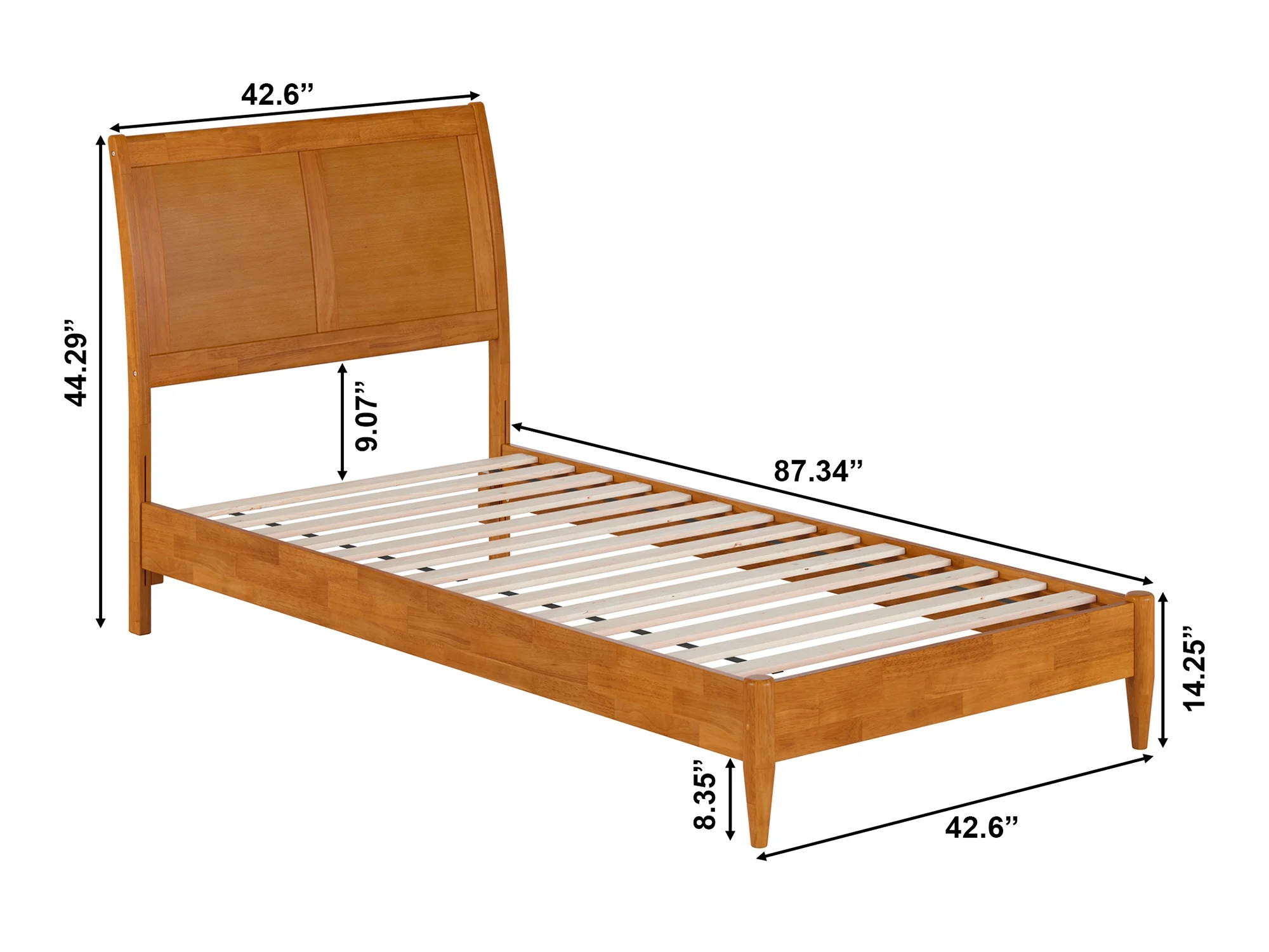 AFI Valencia Twin XL Solid Wood Low Profile Sleigh Platform Bed, Light Toffee