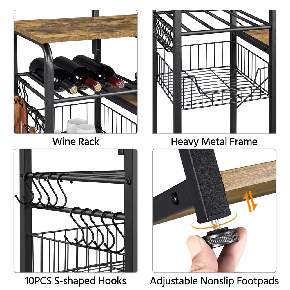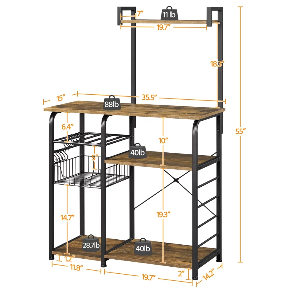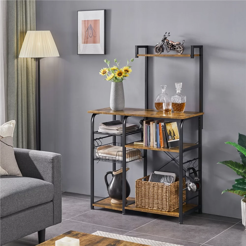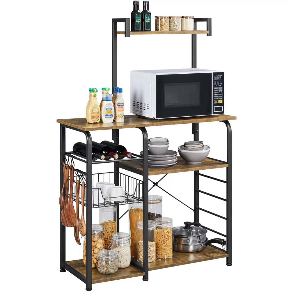 Topeakmart 35.5'' Kitchen Bakers Rack Storage Shelf Unit with 7 Storage Shelves Rustic Brown