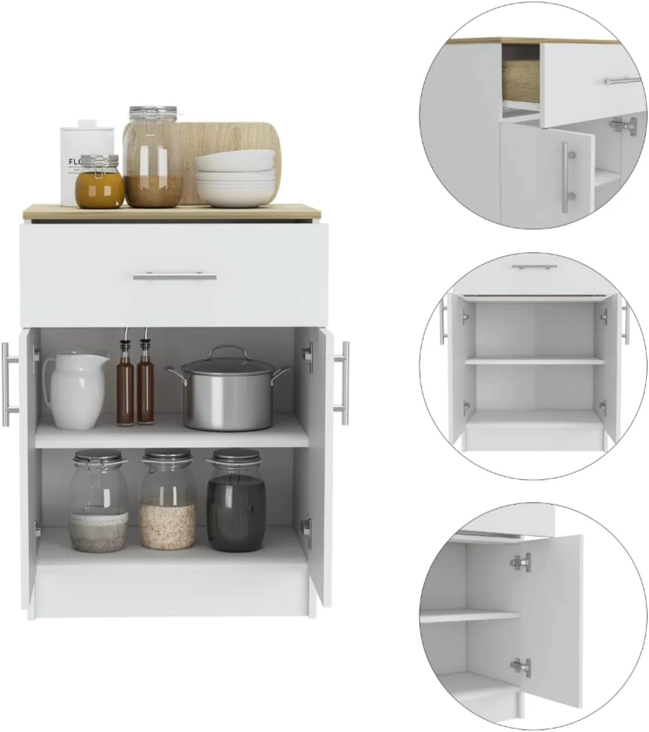 Barbados Multi Storage Large Bottom Kitchen Pantry Cabinet - Light Oak/White