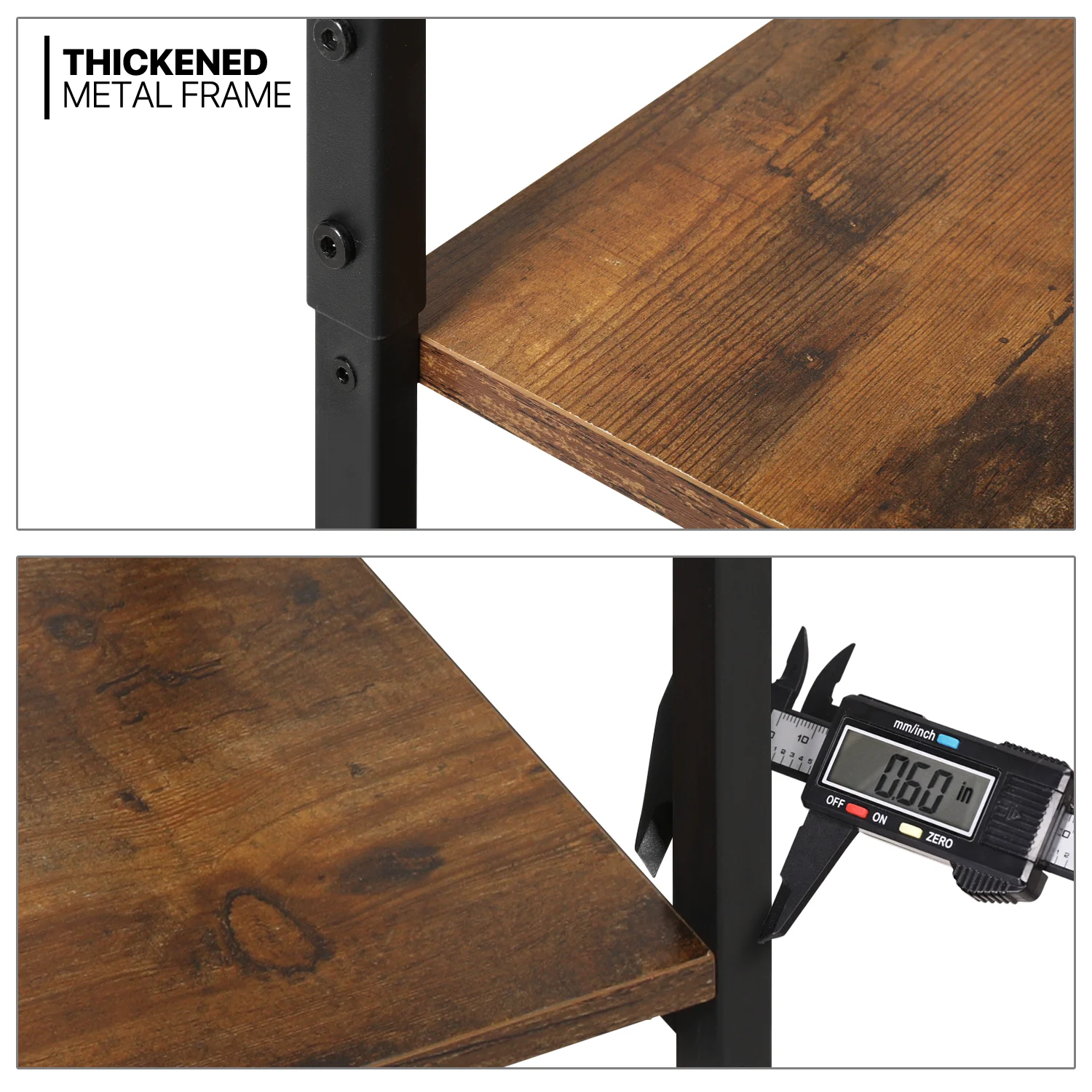 MoNiBloom 5 Shelves Rustic Bookcase, Industrial Shelf Unit, with Metal Frame Modern Office Home Display Shelves, Brown
