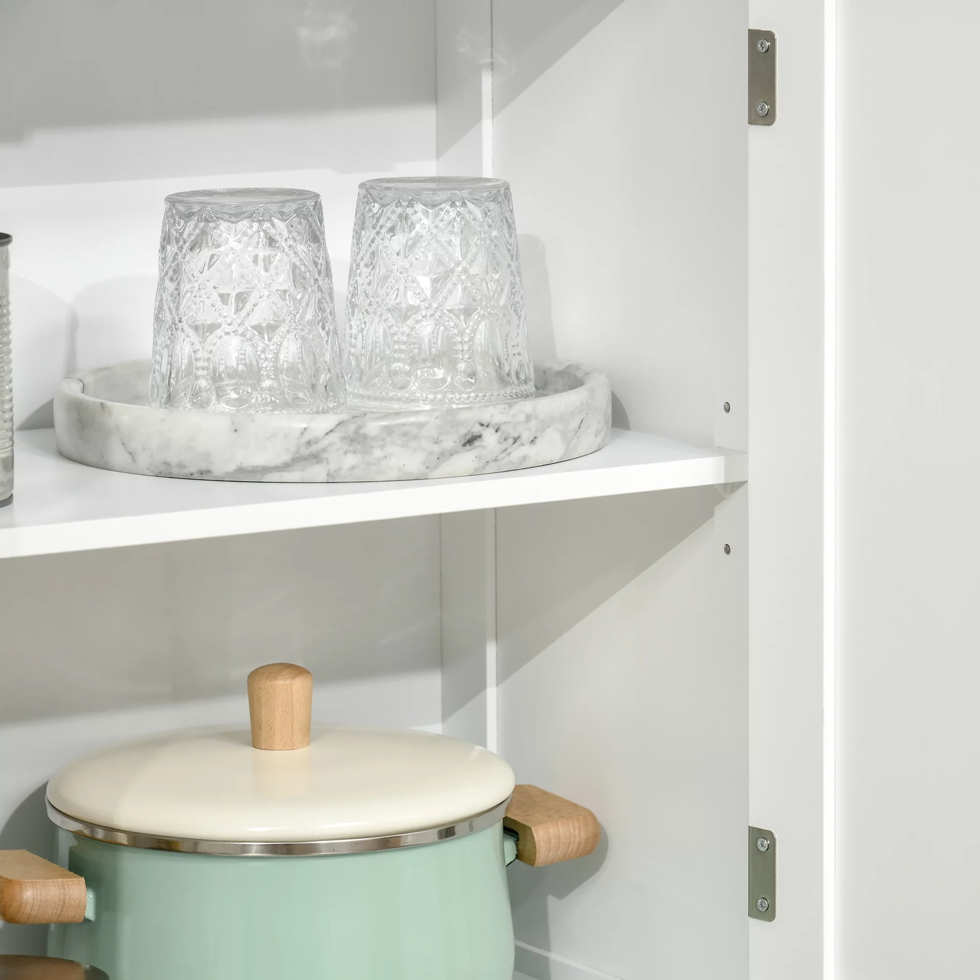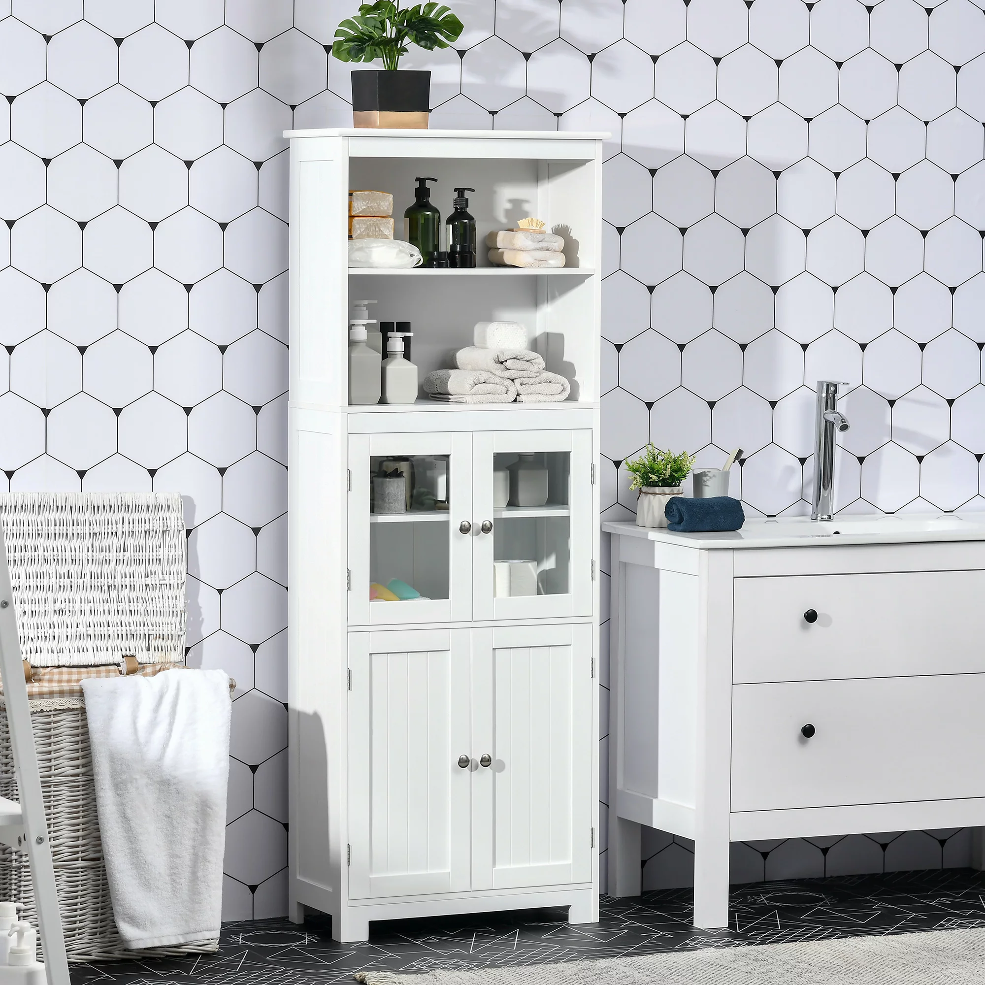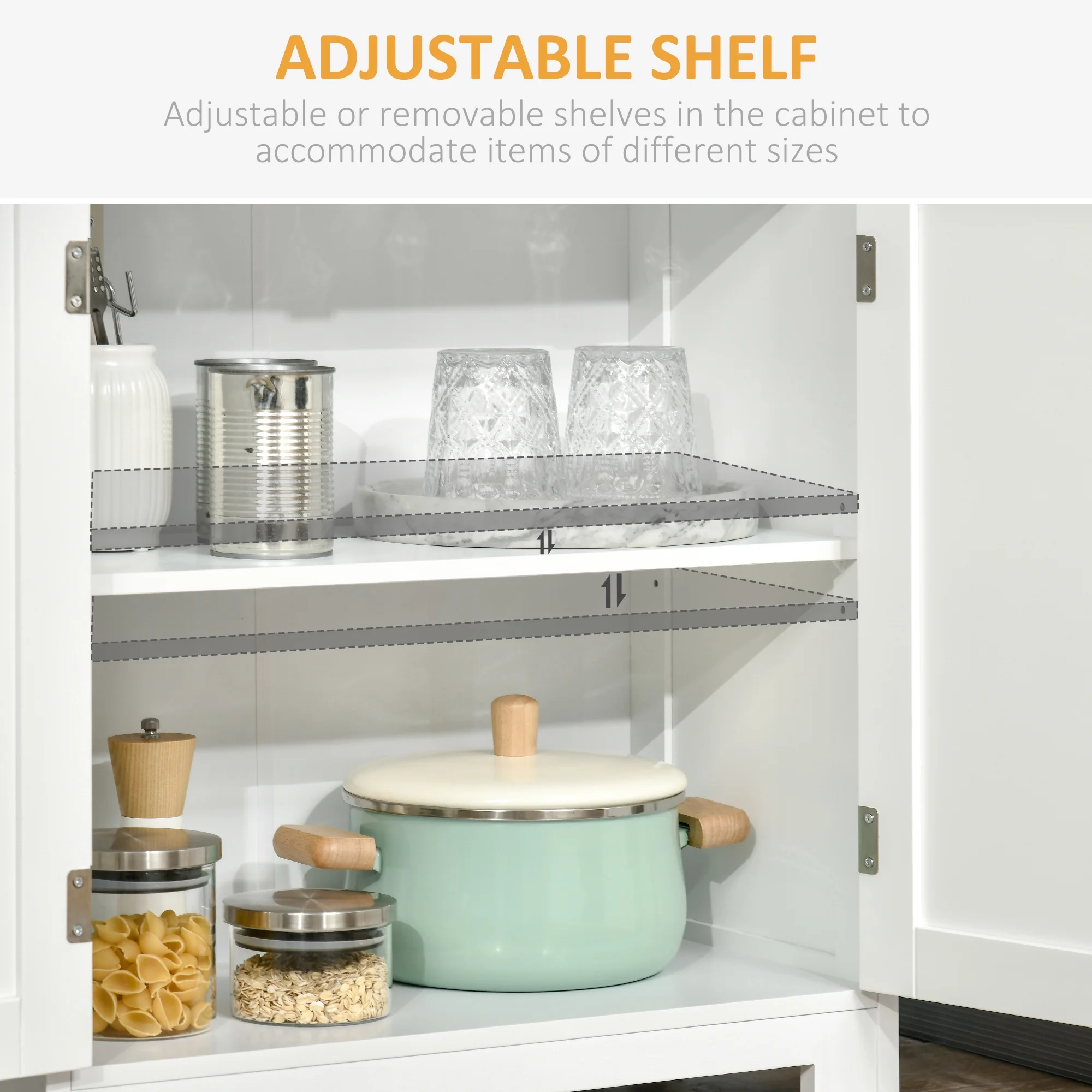 HOMCOM 63" Small Buffet with Hutch, 4-Door Kitchen Pantry, Freestanding Storage Cabinet with Adjustable Shelf for Dining Room, Living Room, White