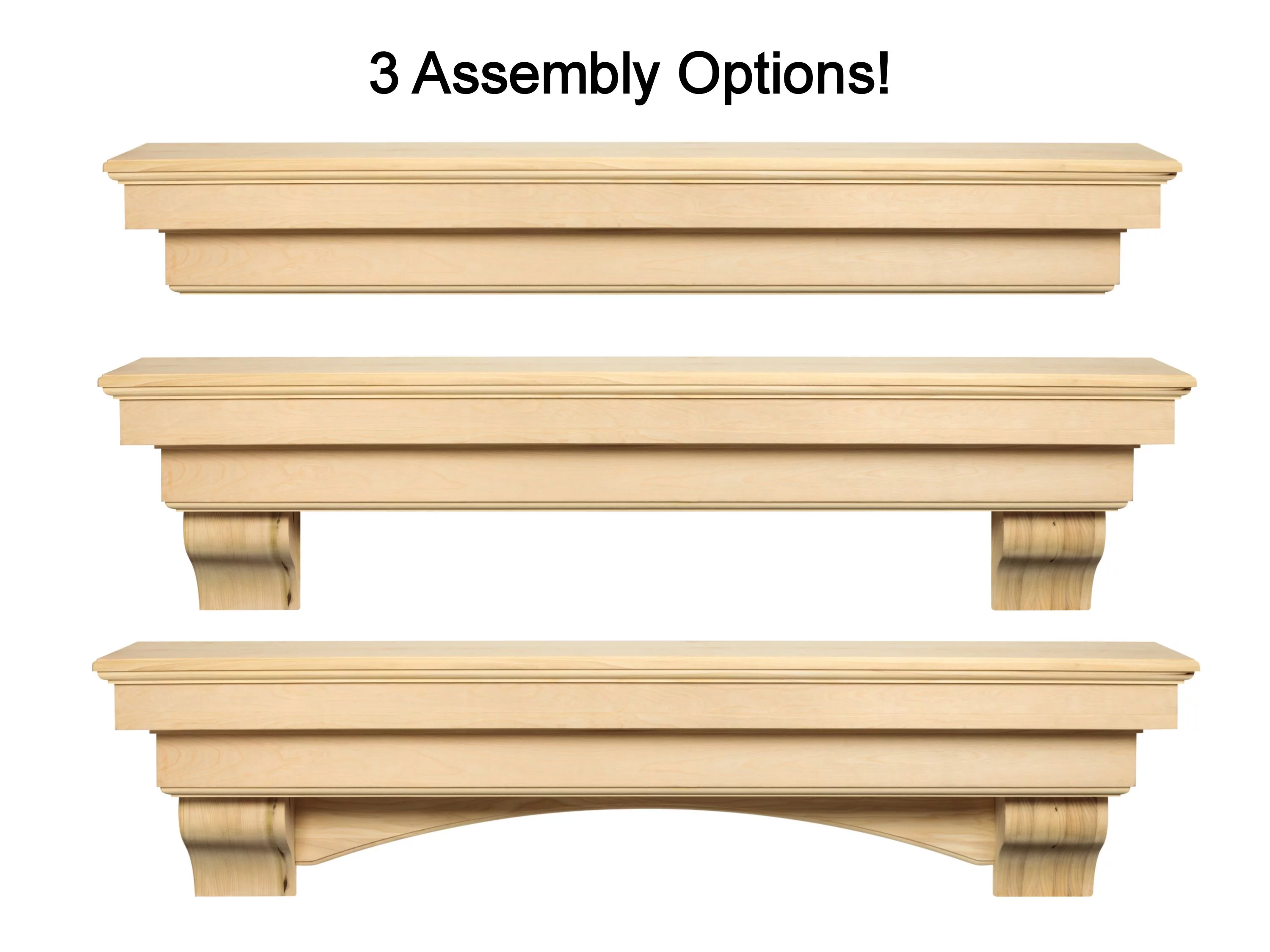 Pearl Mantels Auburn Versatile Premium Wood Mantel Shelf, Unfinished, Paint And Stain Grade, 48"L & 9.5"D, Hang Alone, With Corbels Or With Corbels And Arch (Included)